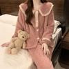 Pijamas especiales de lana coral para mujer, cárdigan de otoño e invierno, ropa de casa cálida y gruesa, pijamas de oso de fresa para otoño para mujer