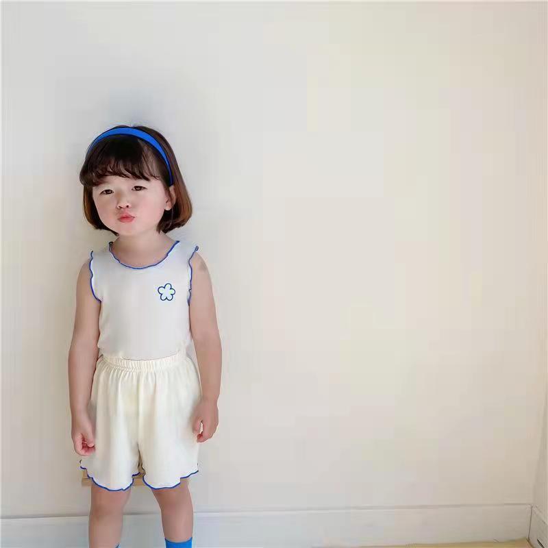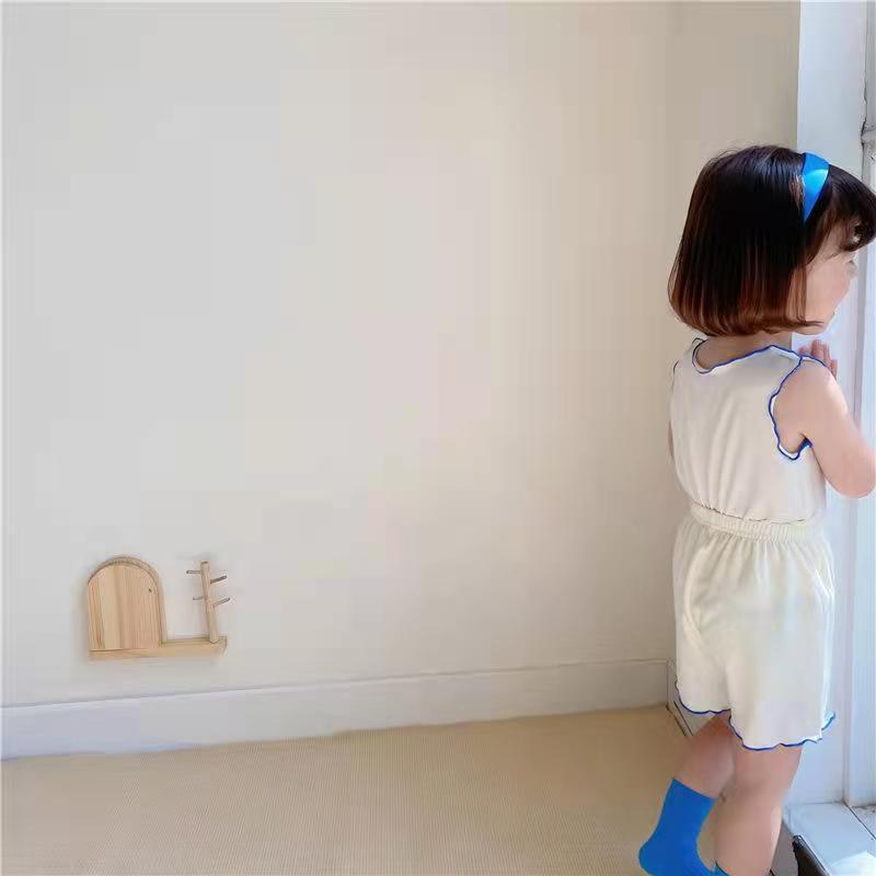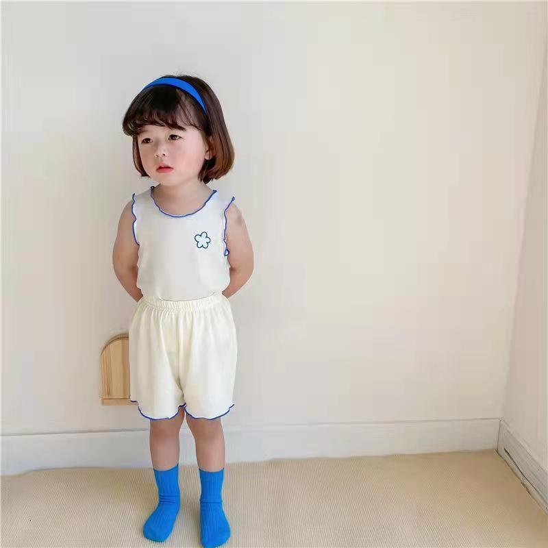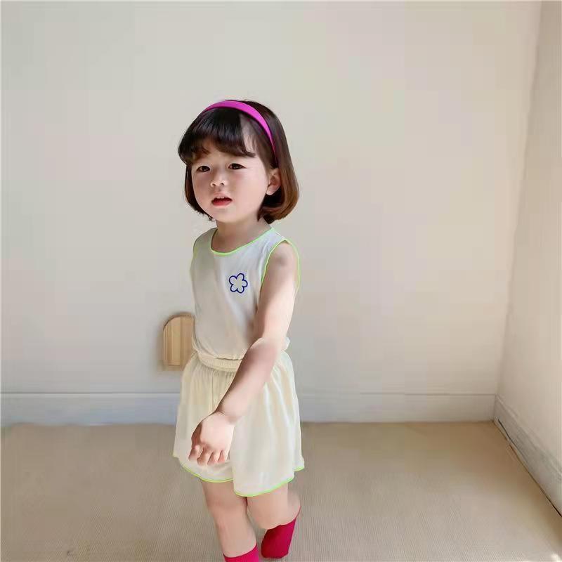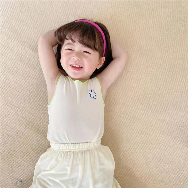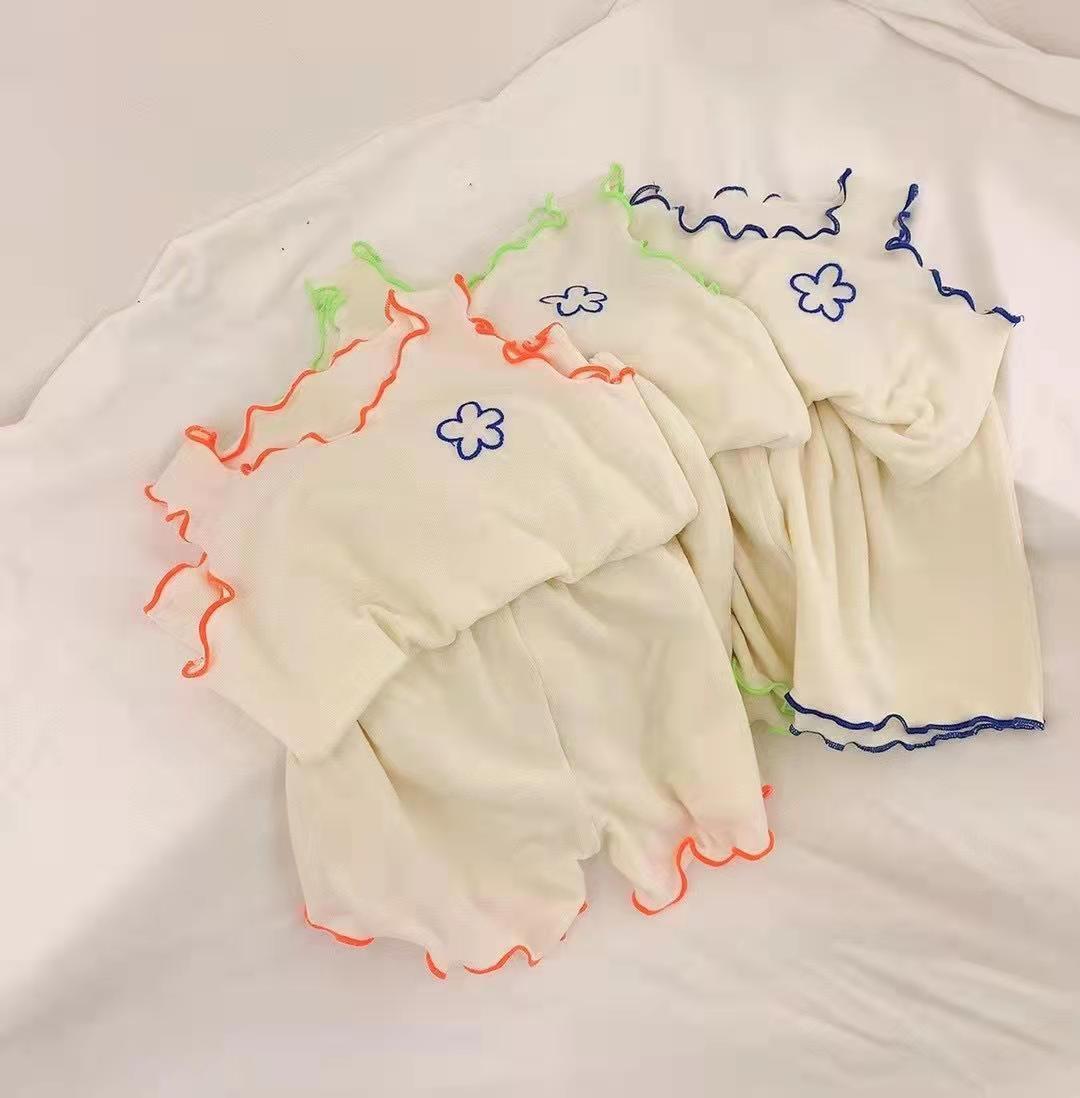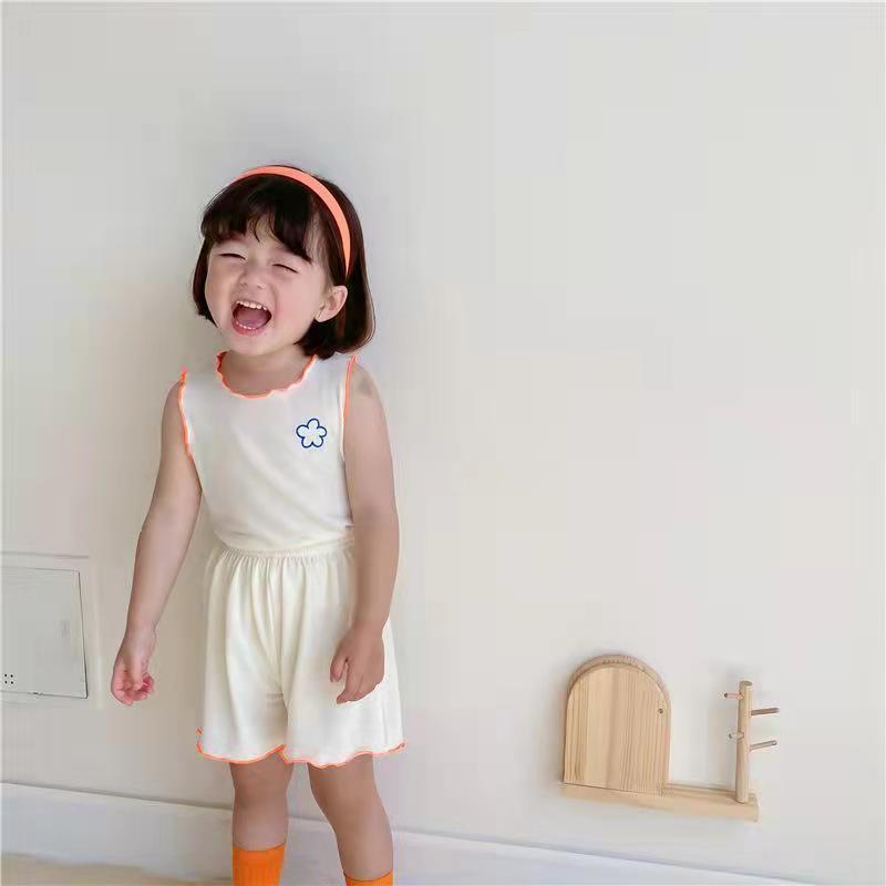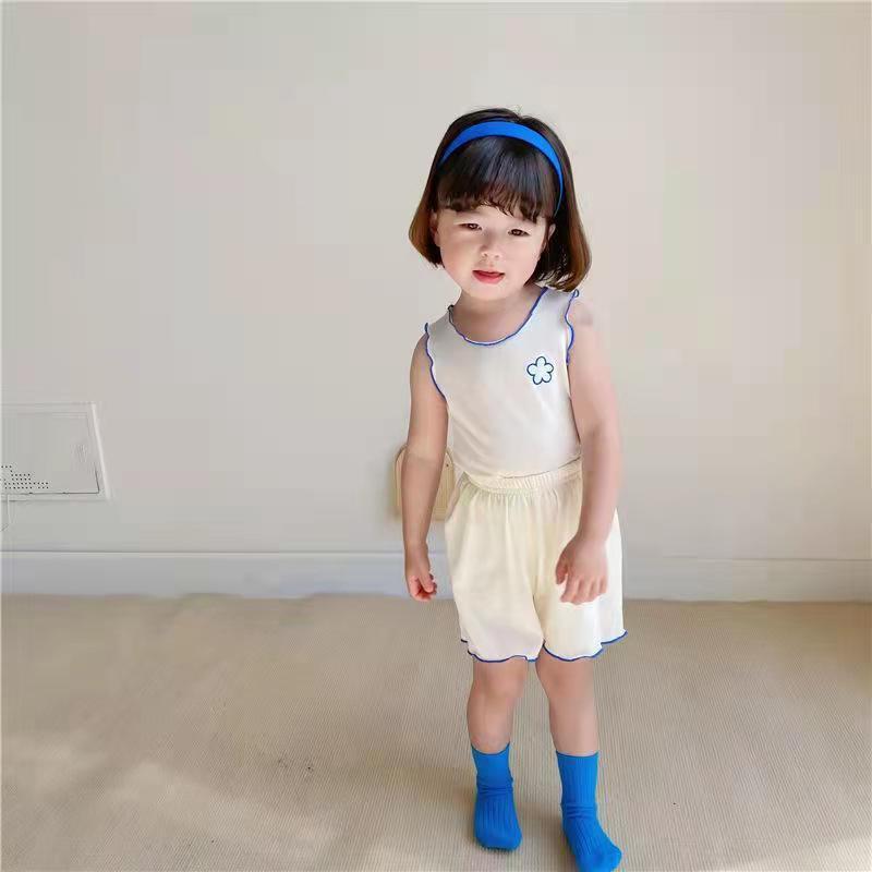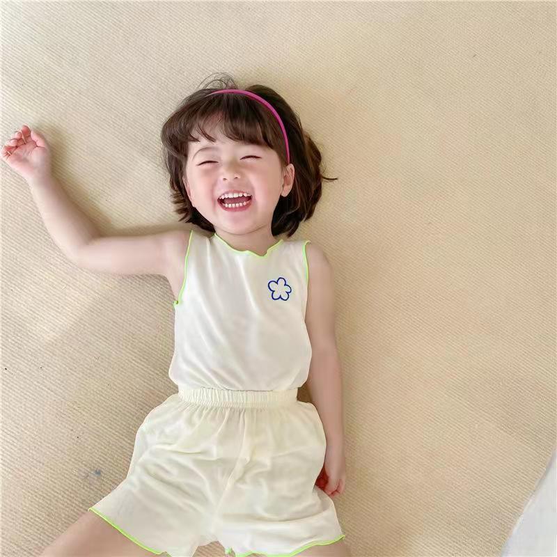 Conjunto de verano para bebé sin mangas, camiseta, shorts de dos piezas para niña, delgado, casual, para estar en casa, pijama para niños