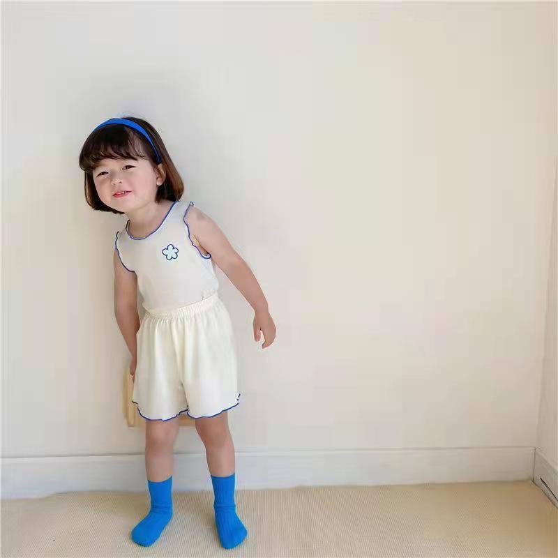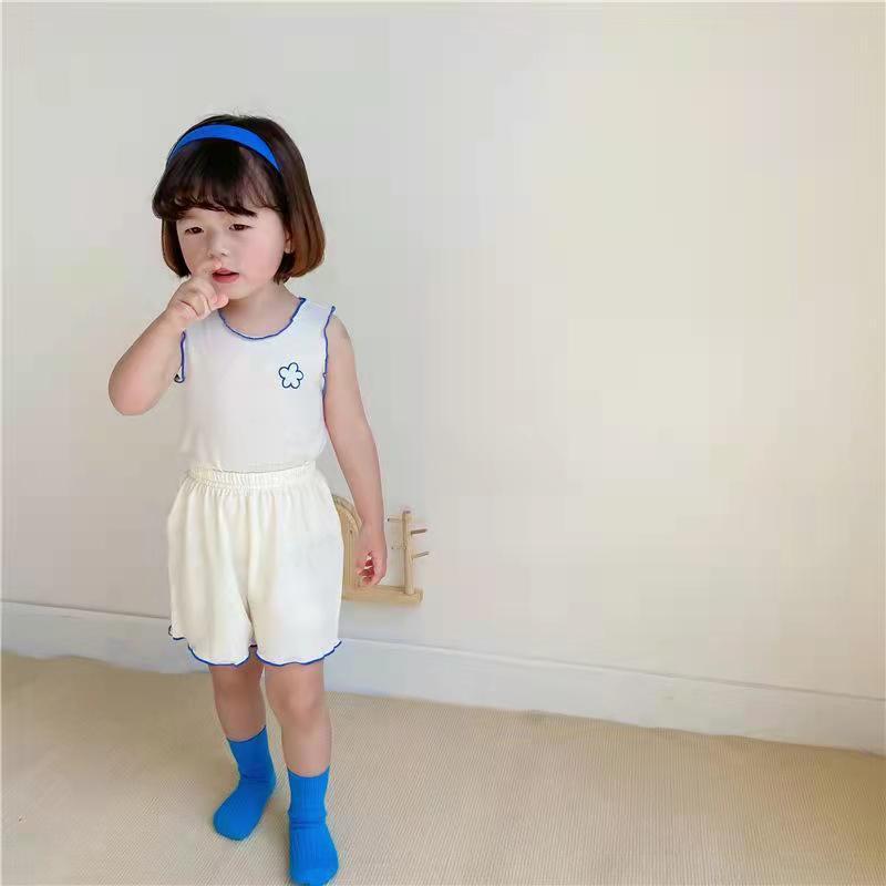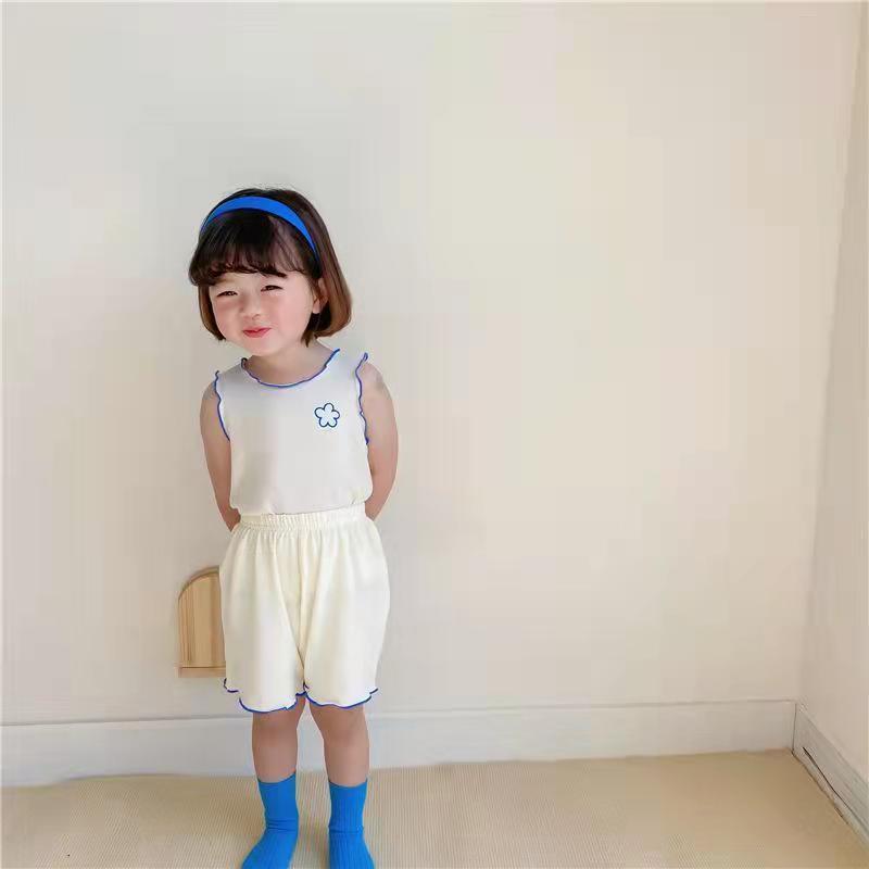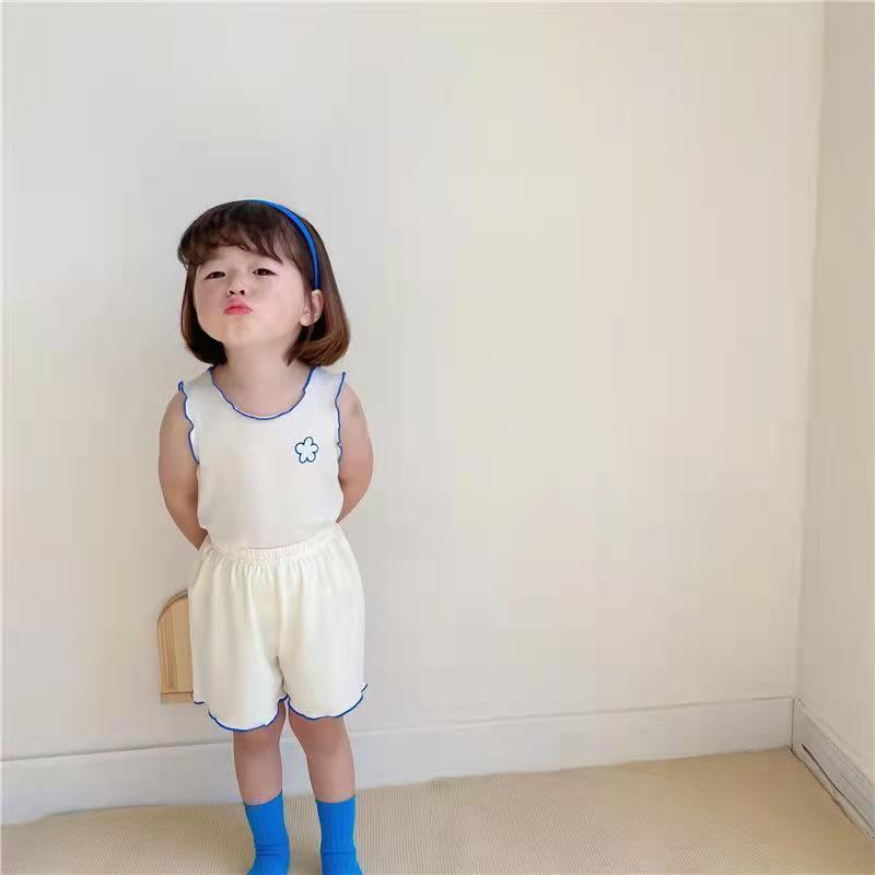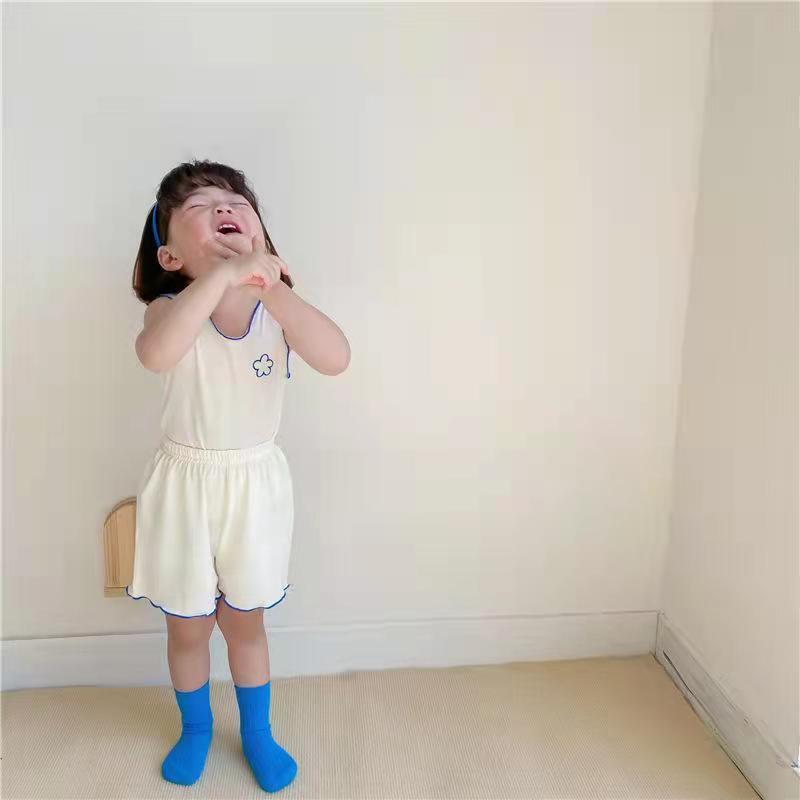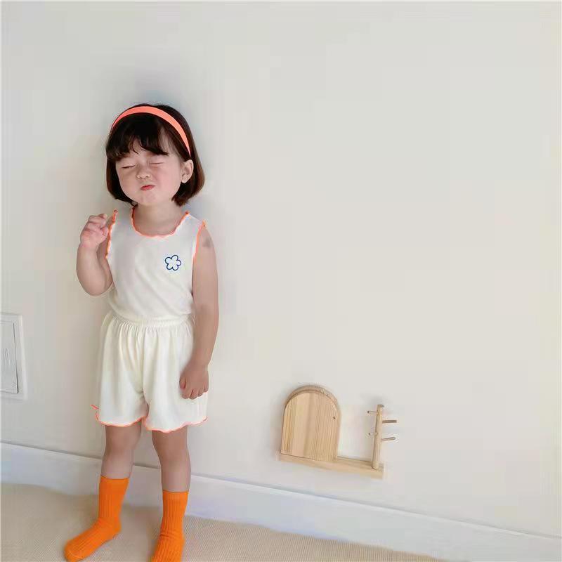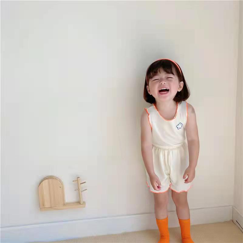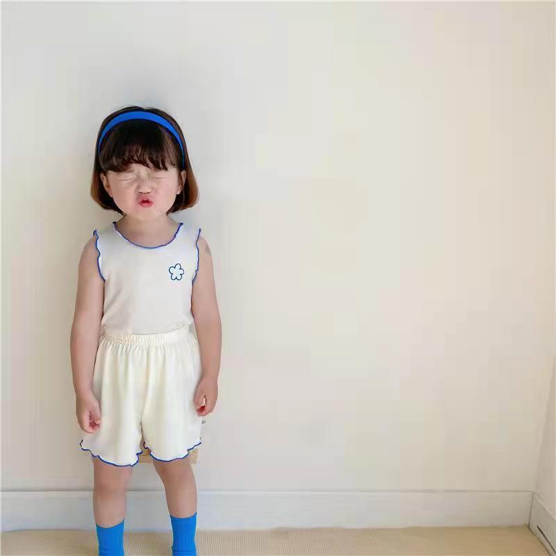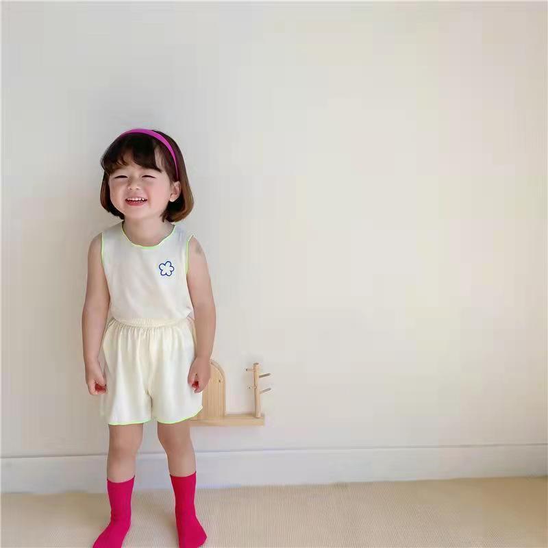Conjunto de verano para bebé sin mangas, camiseta, shorts de dos piezas para niña, delgado, casual, para estar en casa, pijama para niños