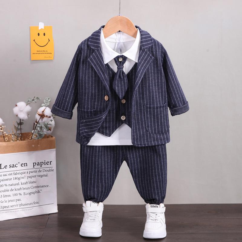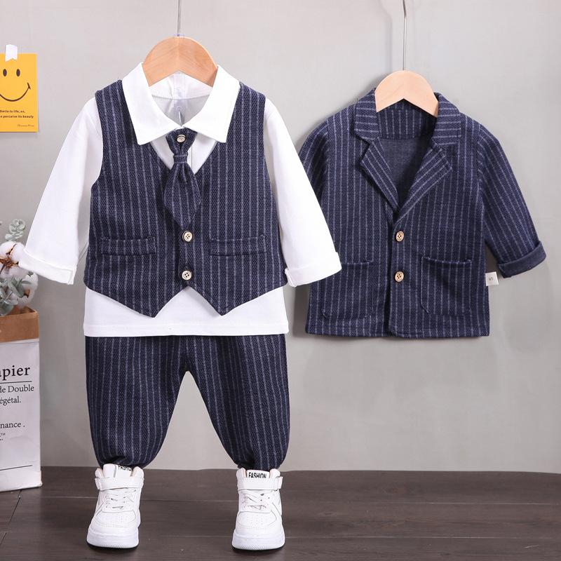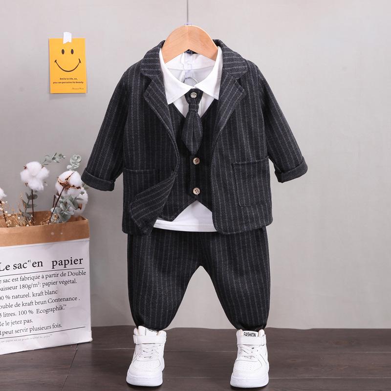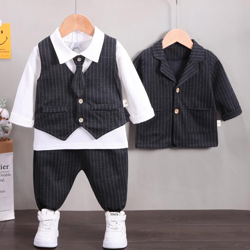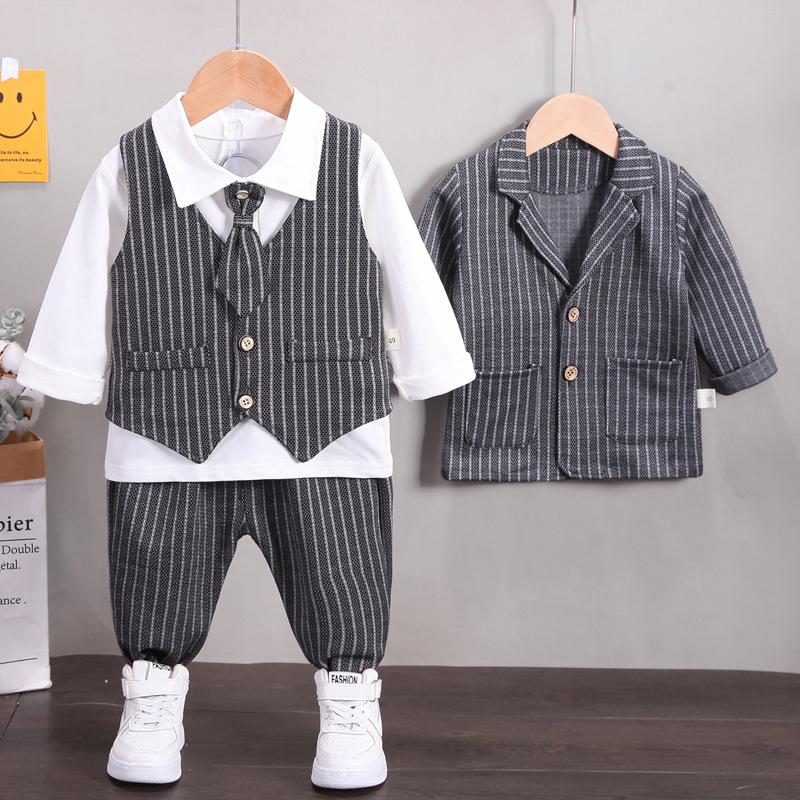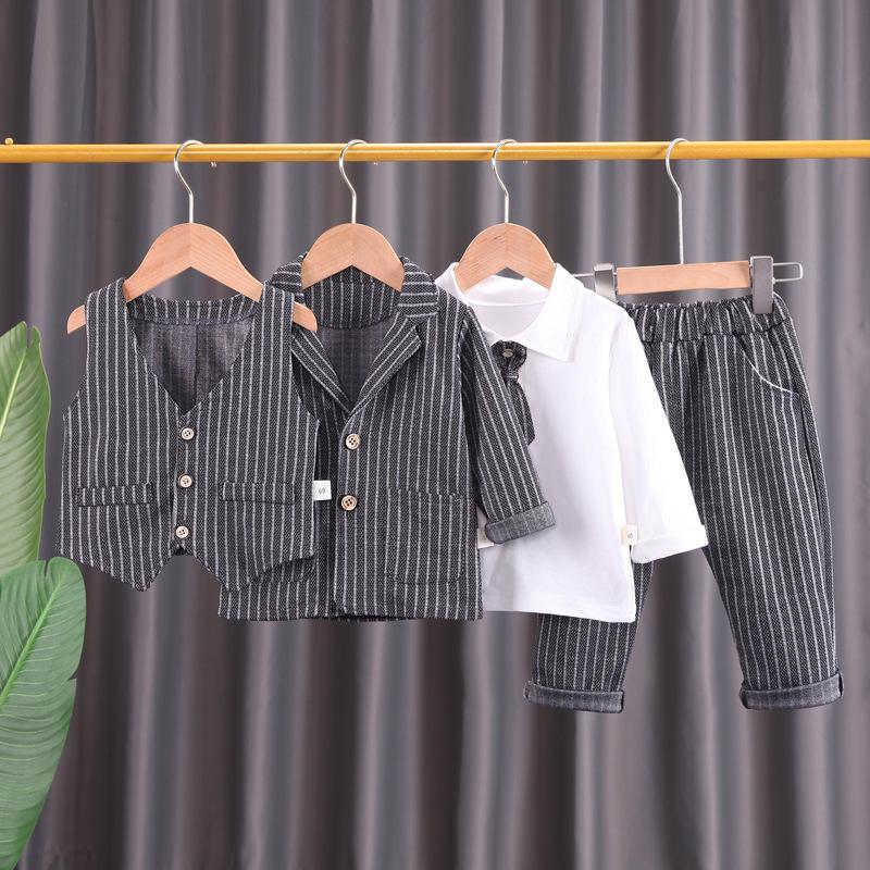 Traje atractivo para niños, chaleco, traje de cuatro piezas, venta al por mayor de fábrica, primavera y otoño, nuevo traje atractivo para bebés, traje para niños