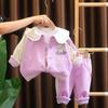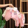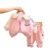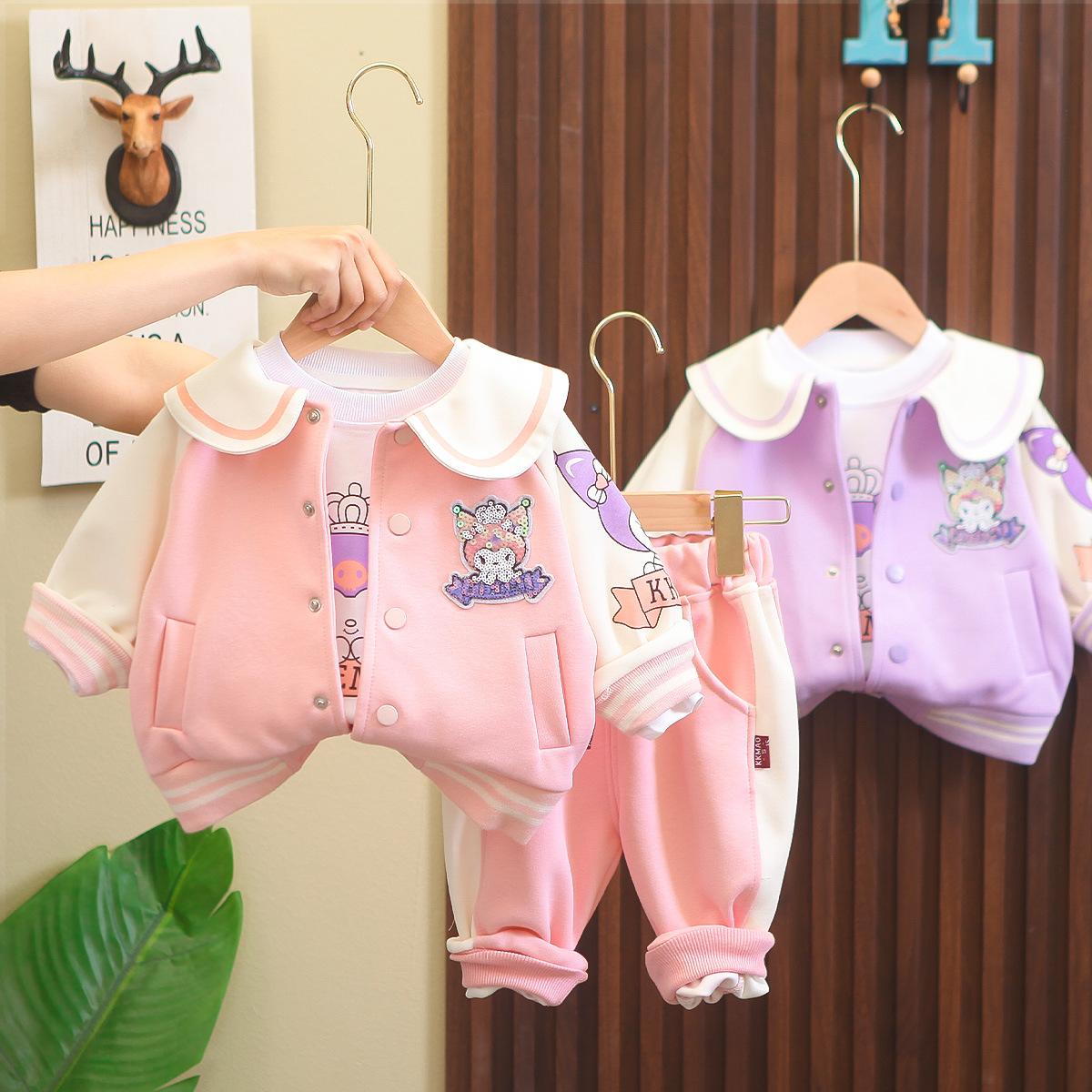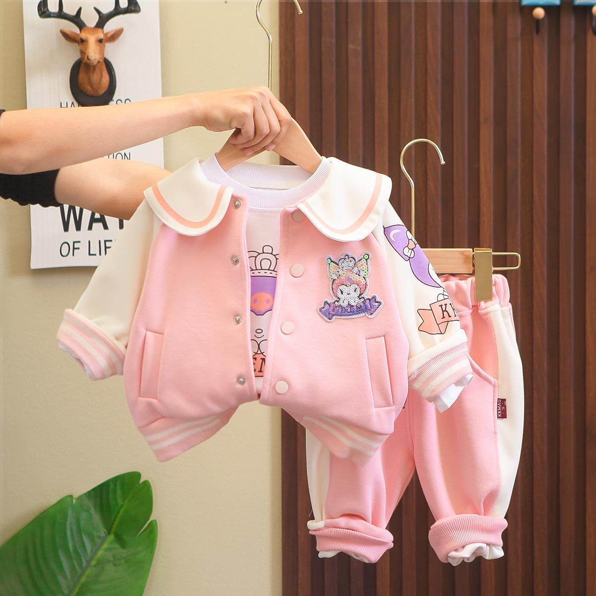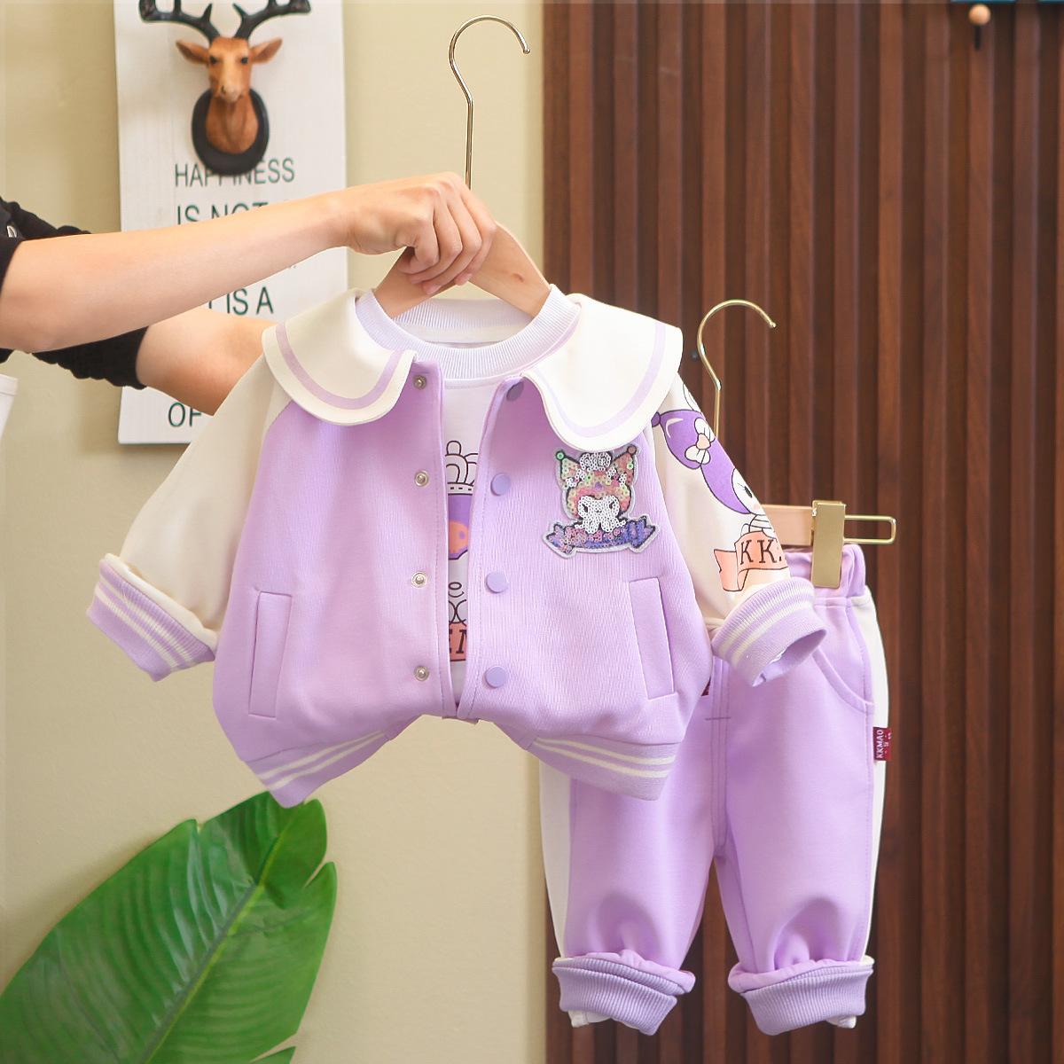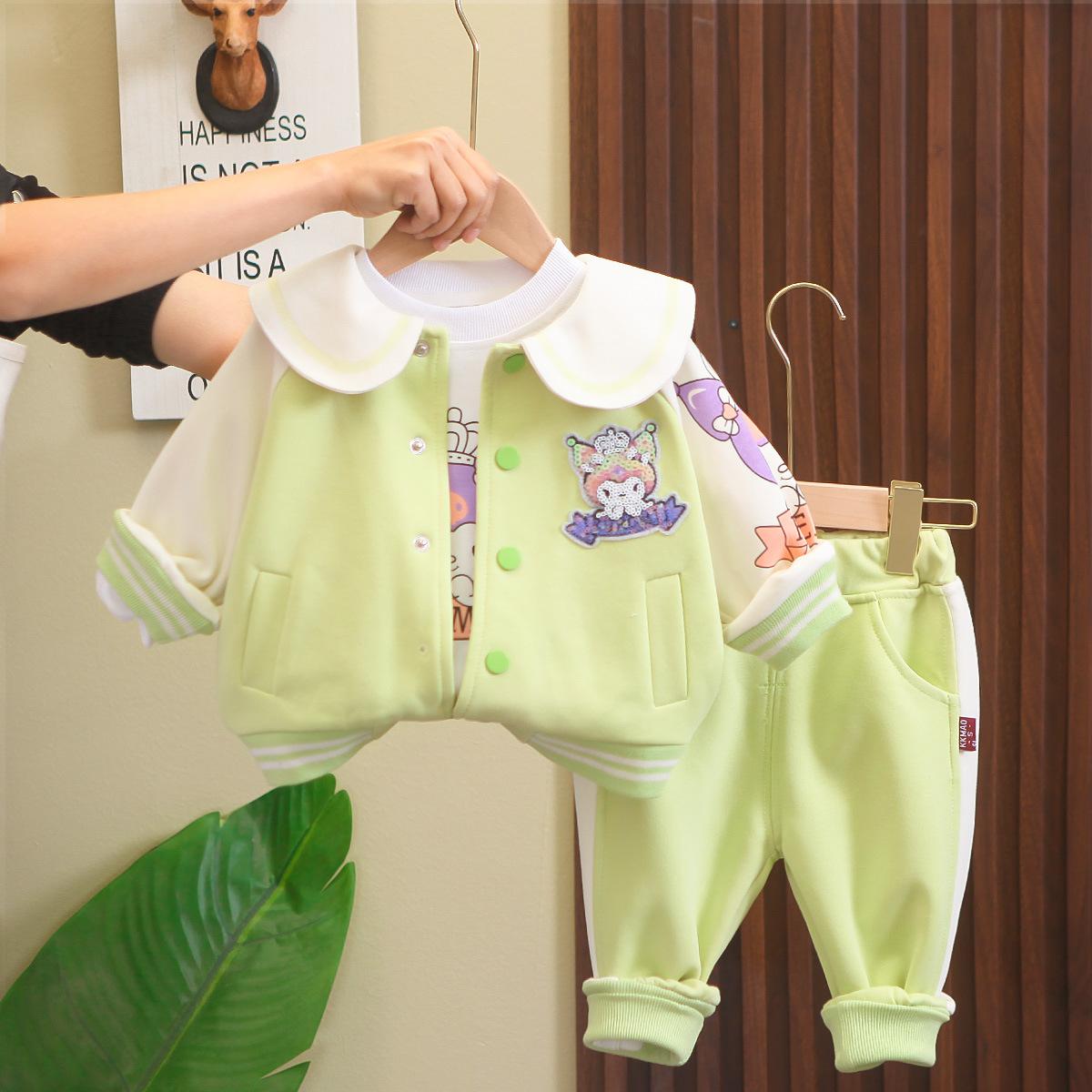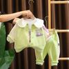 Conjunto de tres piezas de cárdigan informal de solapa grande estilo occidental para niña, entrega de una pieza, ropa nueva de primavera y otoño 2024 para niña