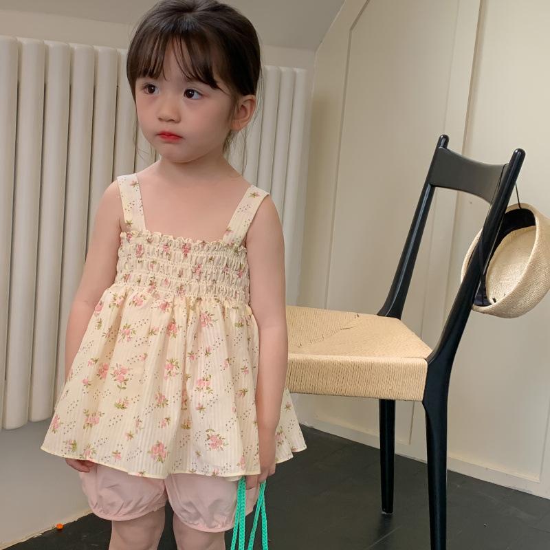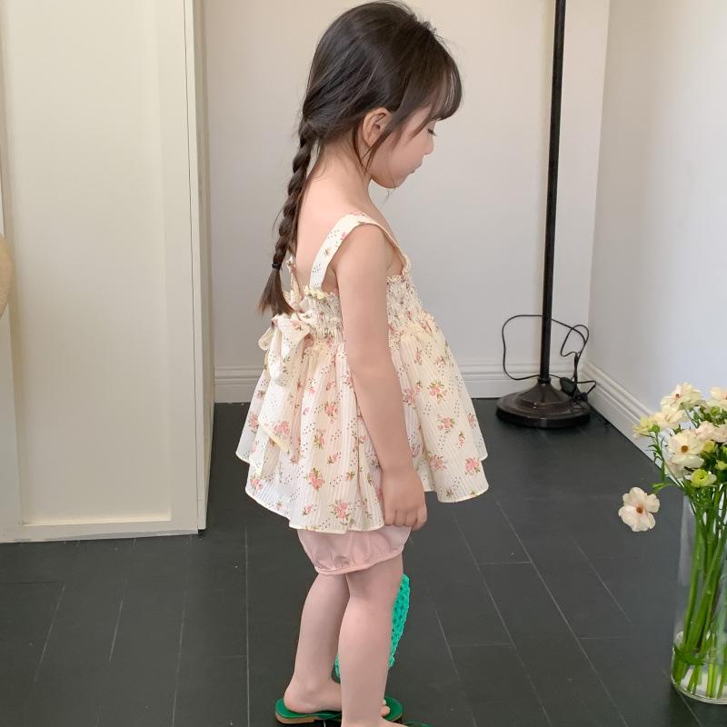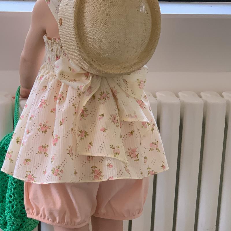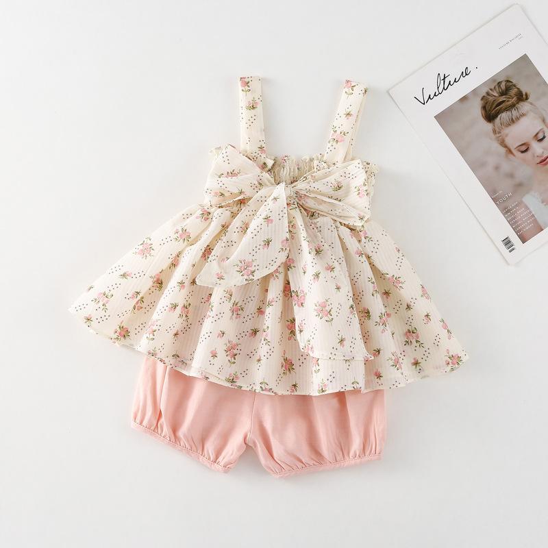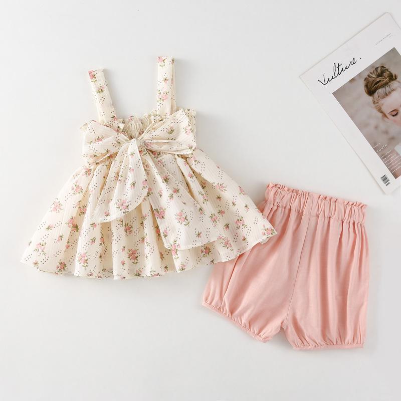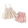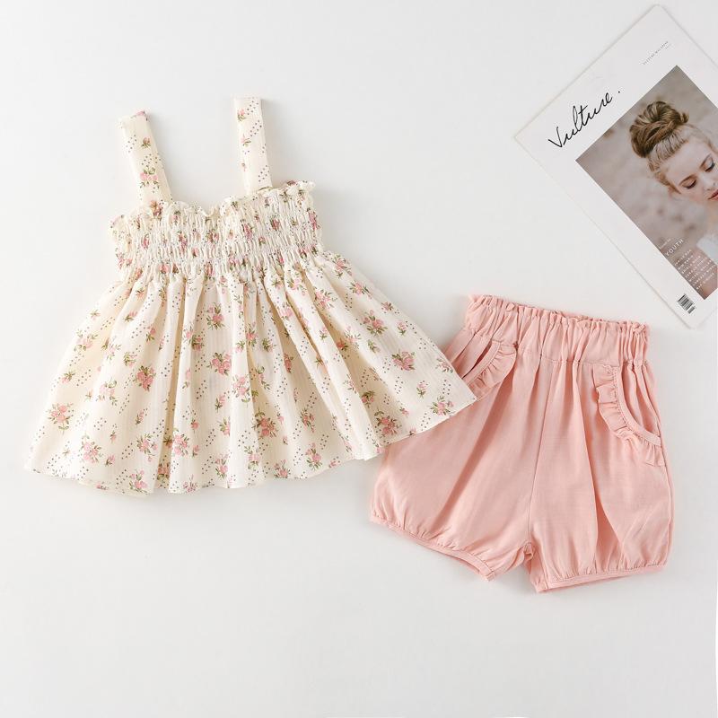 Conjunto de dos piezas de ropa infantil coreana para niña, traje de verano, nuevo estilo, con estampado floral y pantalones cortos casuales