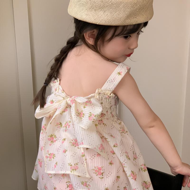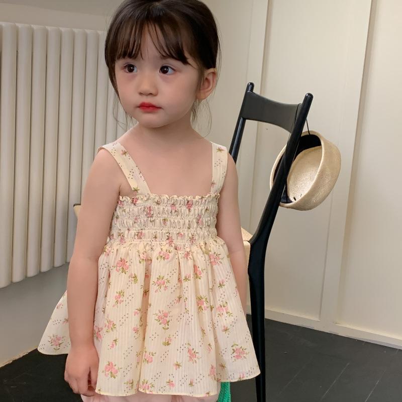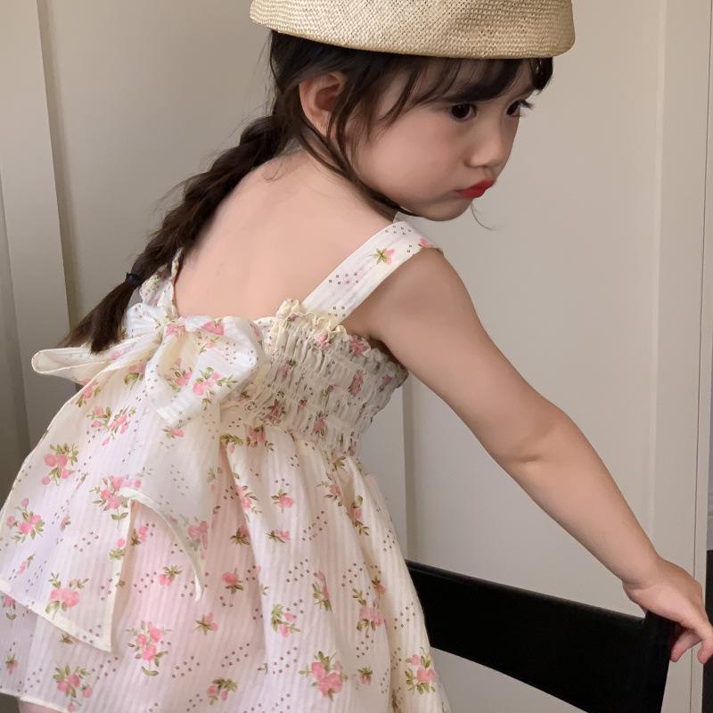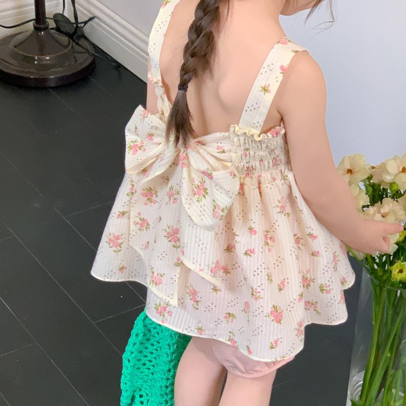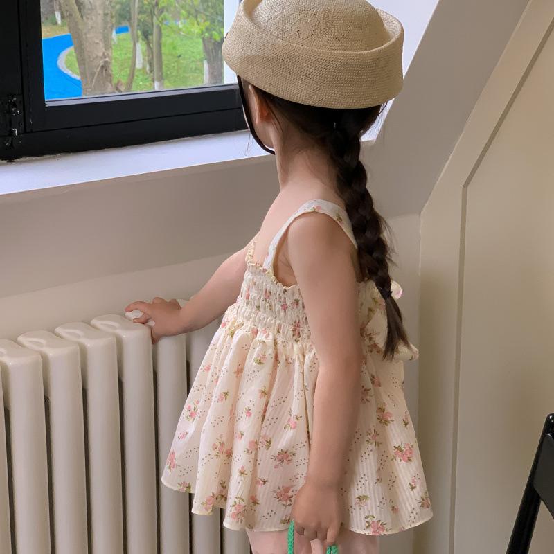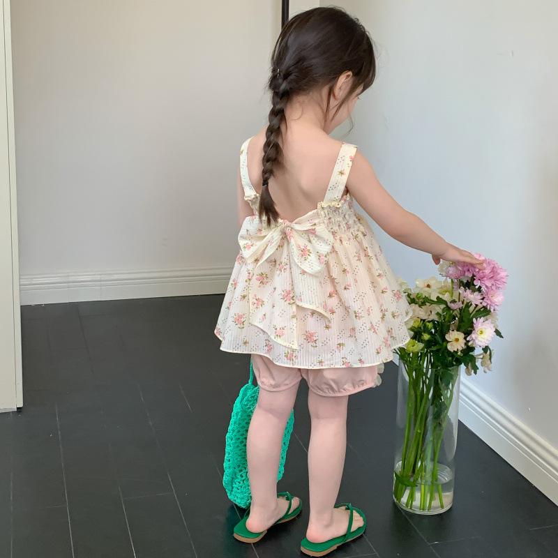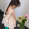 Conjunto de dos piezas de ropa infantil coreana para niña, traje de verano, nuevo estilo, con estampado floral y pantalones cortos casuales