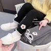 Leggings para niñas 2023, ropa exterior de primavera y otoño, modal fino, bordado cepillado, estilo occidental informal, pantalones para niños de estilo coreano