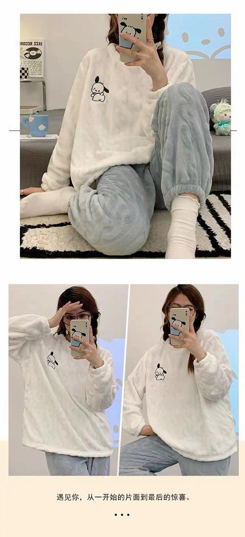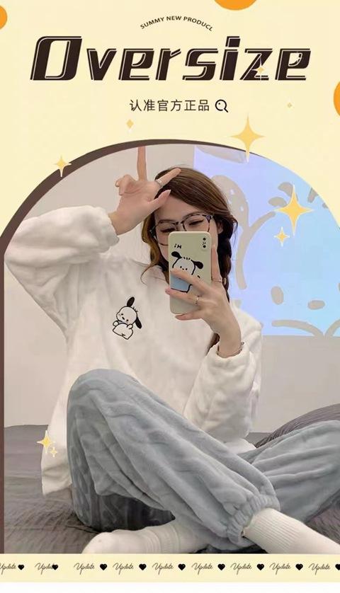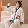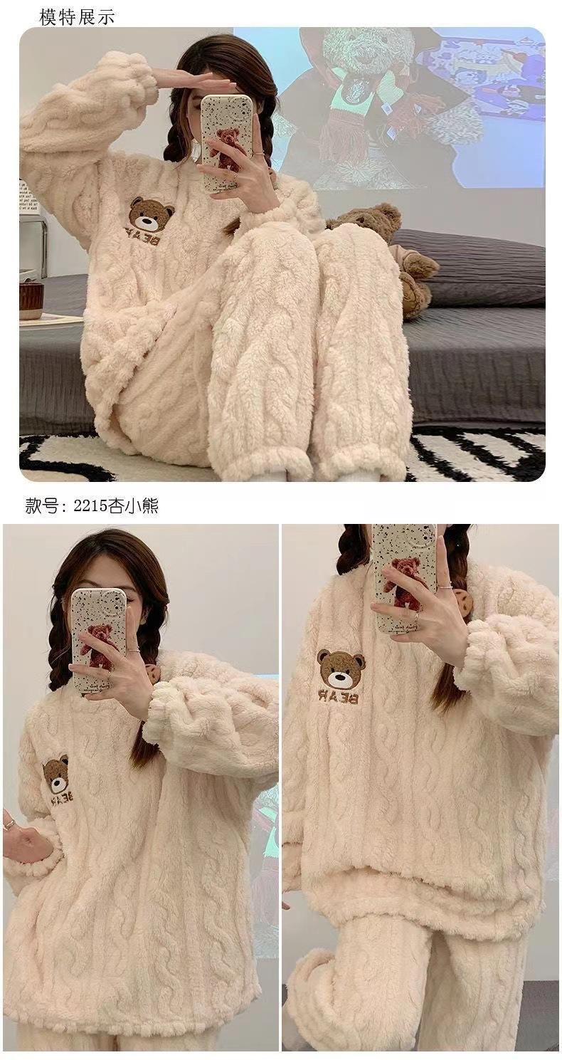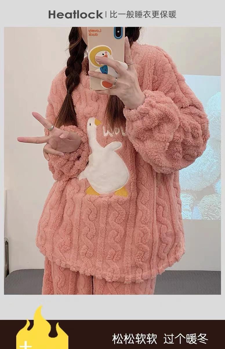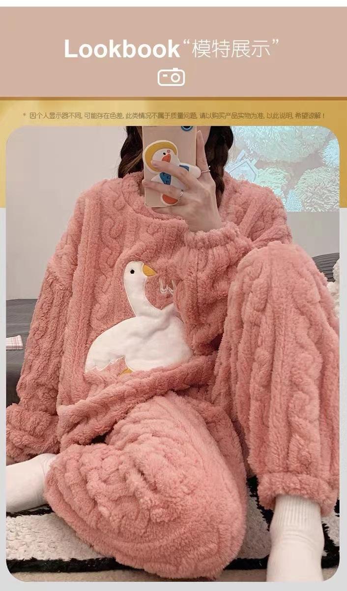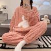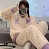 Nuevo pijama de invierno de lana coral para mujer estudiante Big Eye Monster, traje de franela gruesa con forro polar, ropa de hogar de primavera y otoño