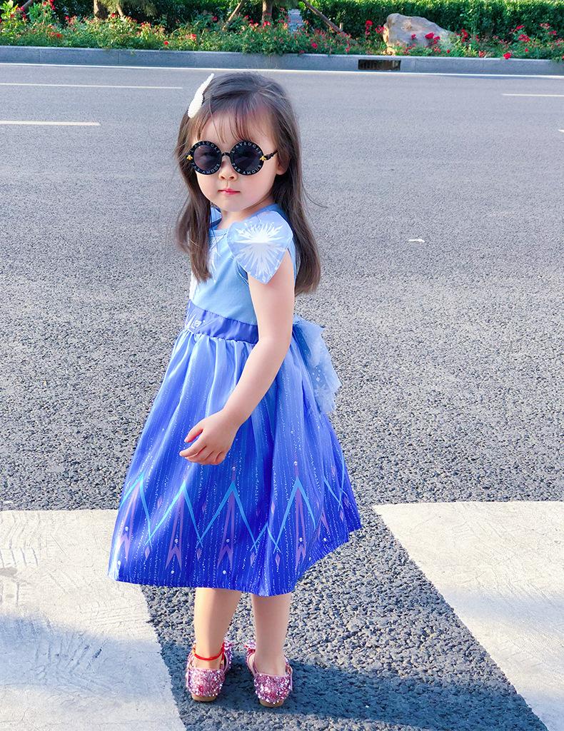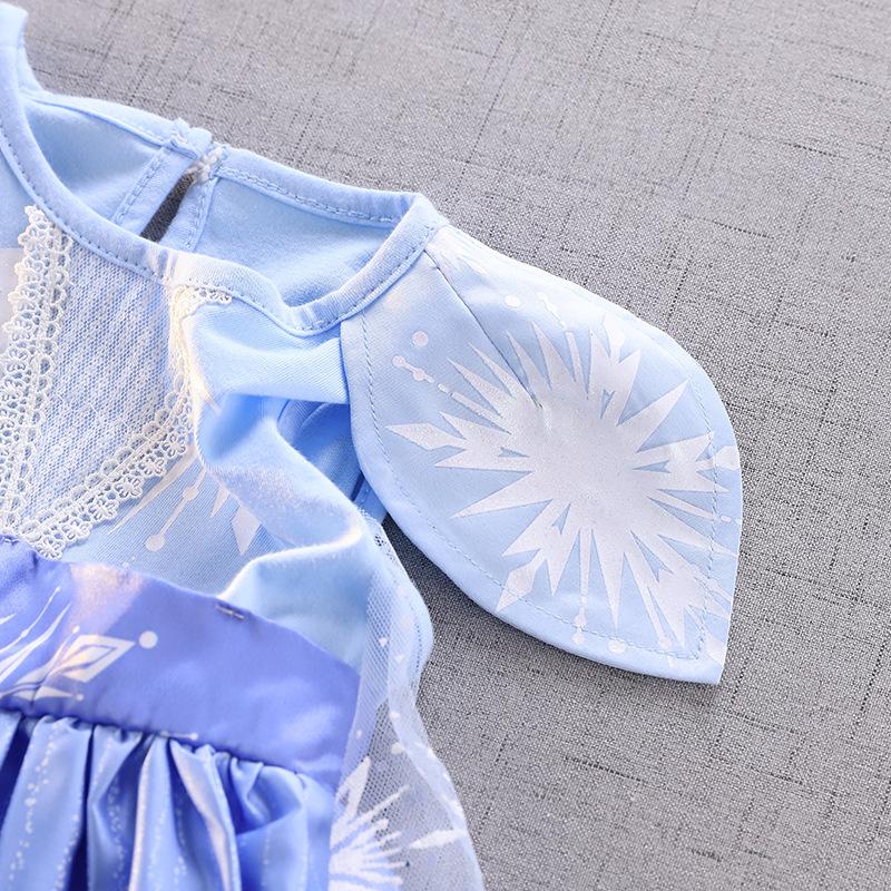 Vestido de princesa Elsa de Frozen de manga corta colorido, ropa infantil de comercio exterior, vestido de niña, disfraz de actuación para el Día del Niño