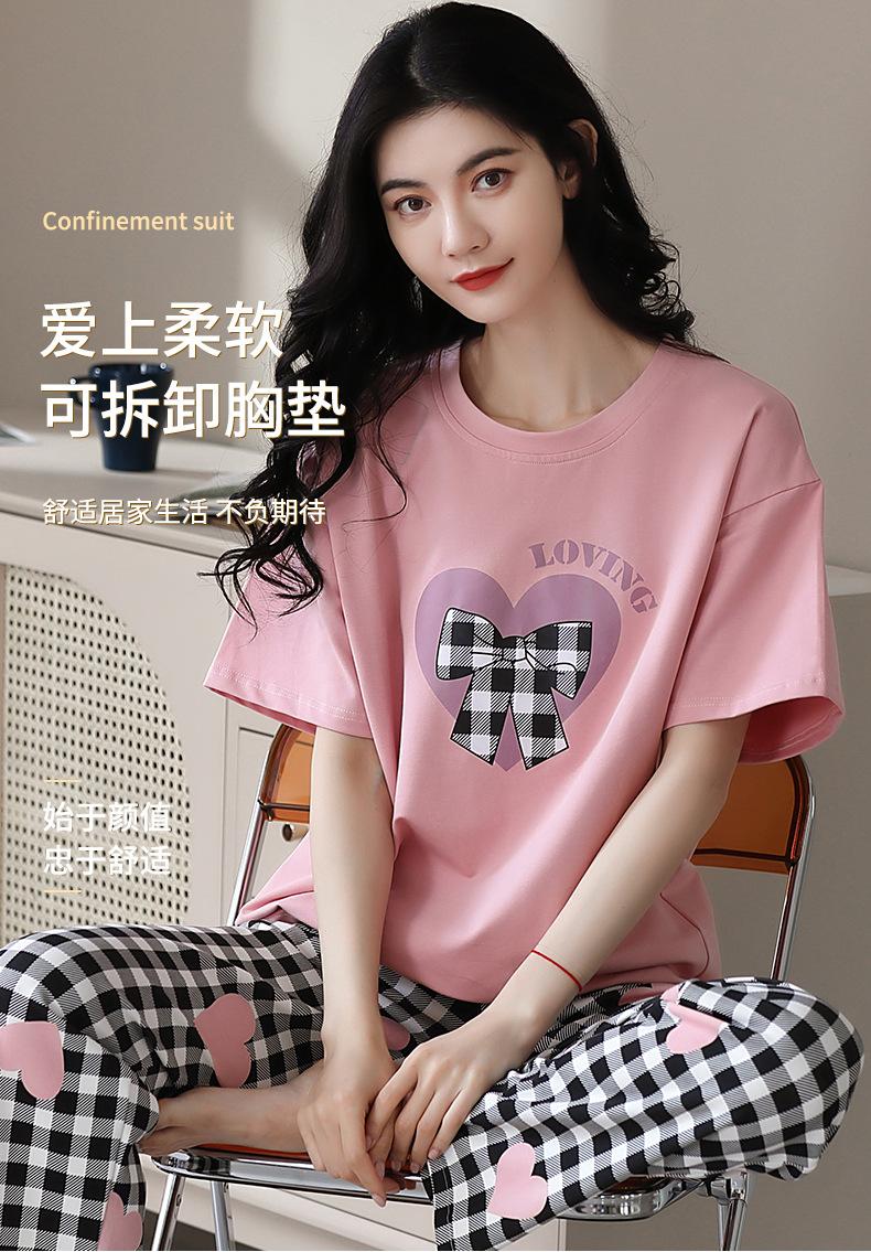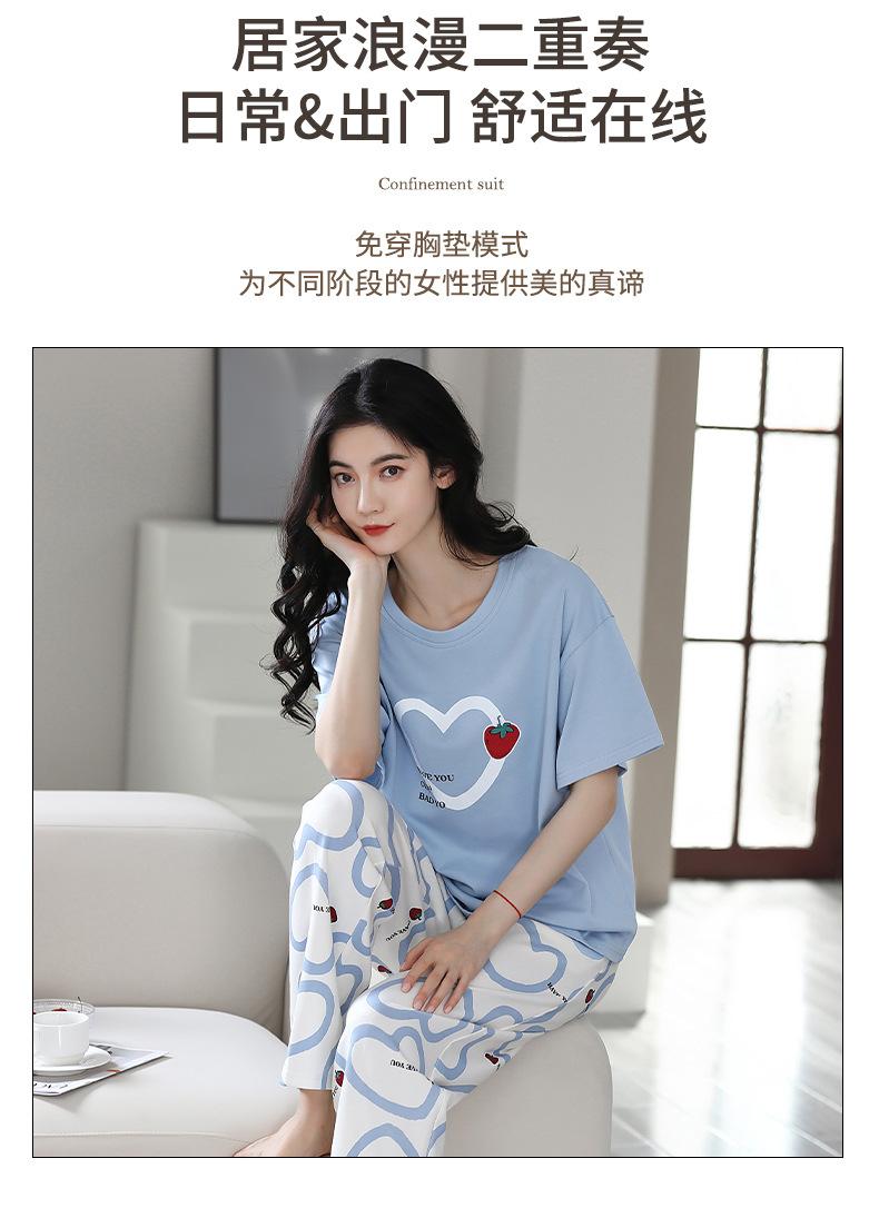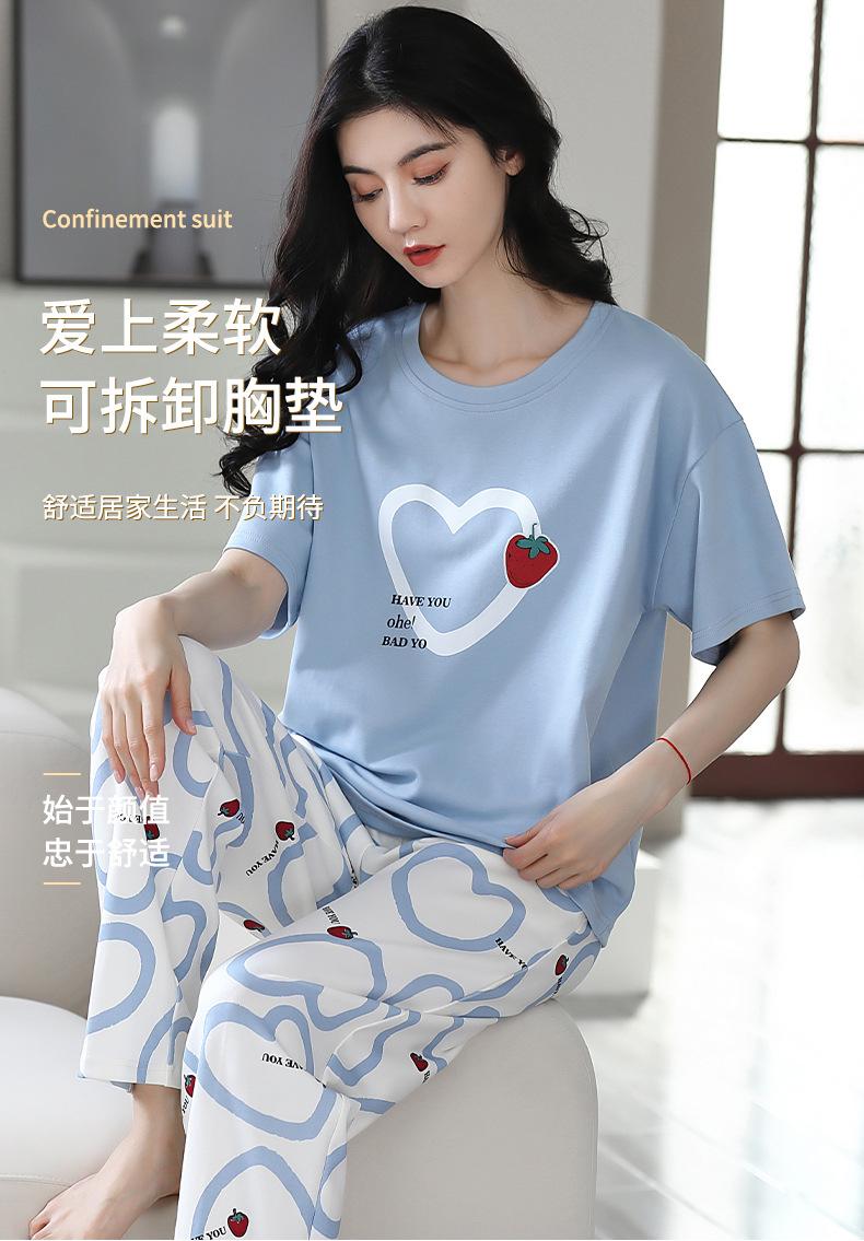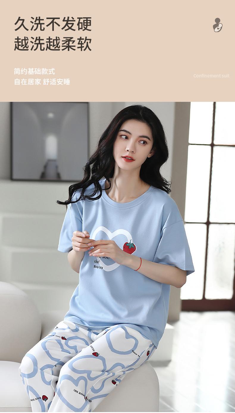 Pijamas nuevos de verano para mujer, de algodón puro, sencillos, de cuello redondo y manga corta, para el hogar, se pueden usar al aire libre.