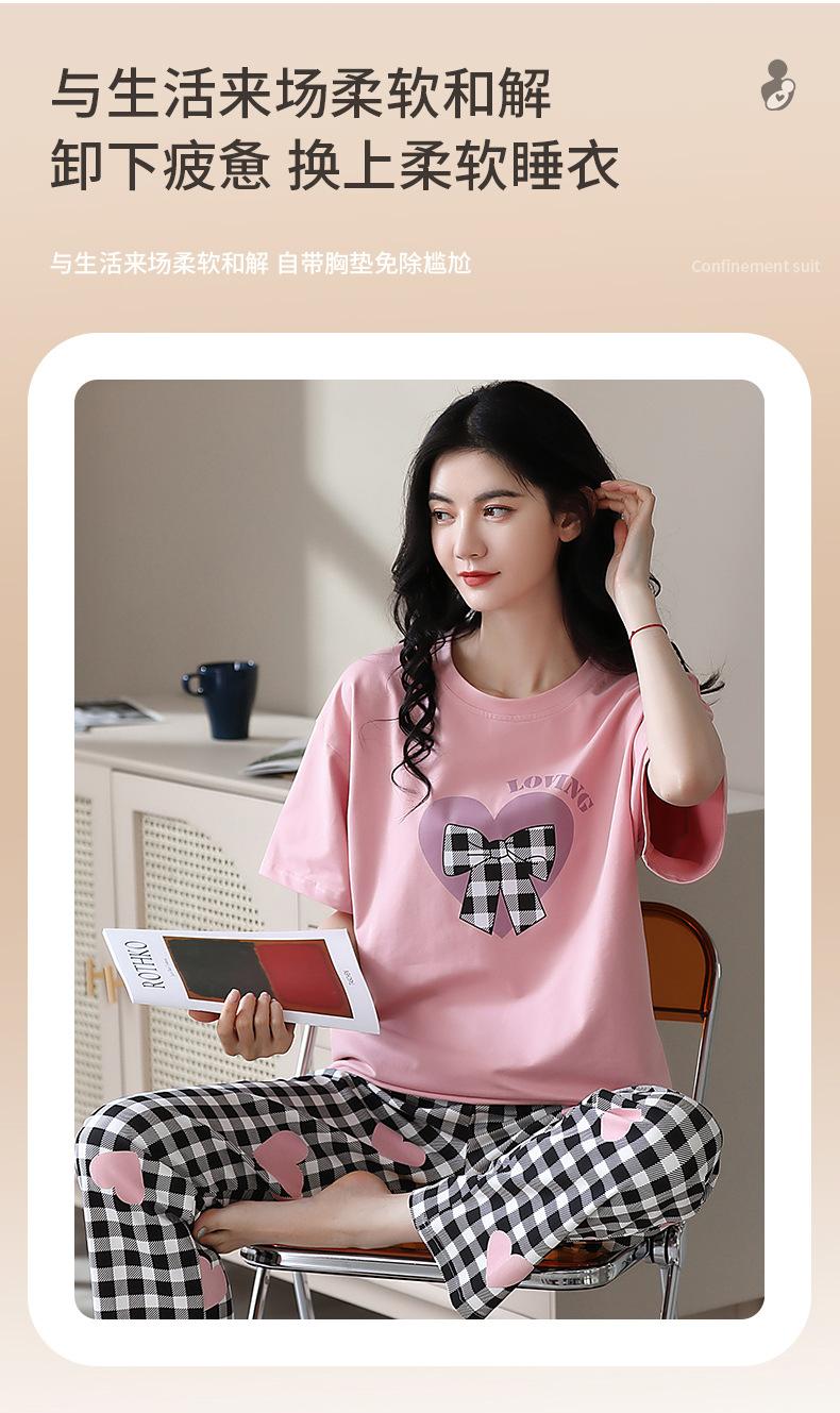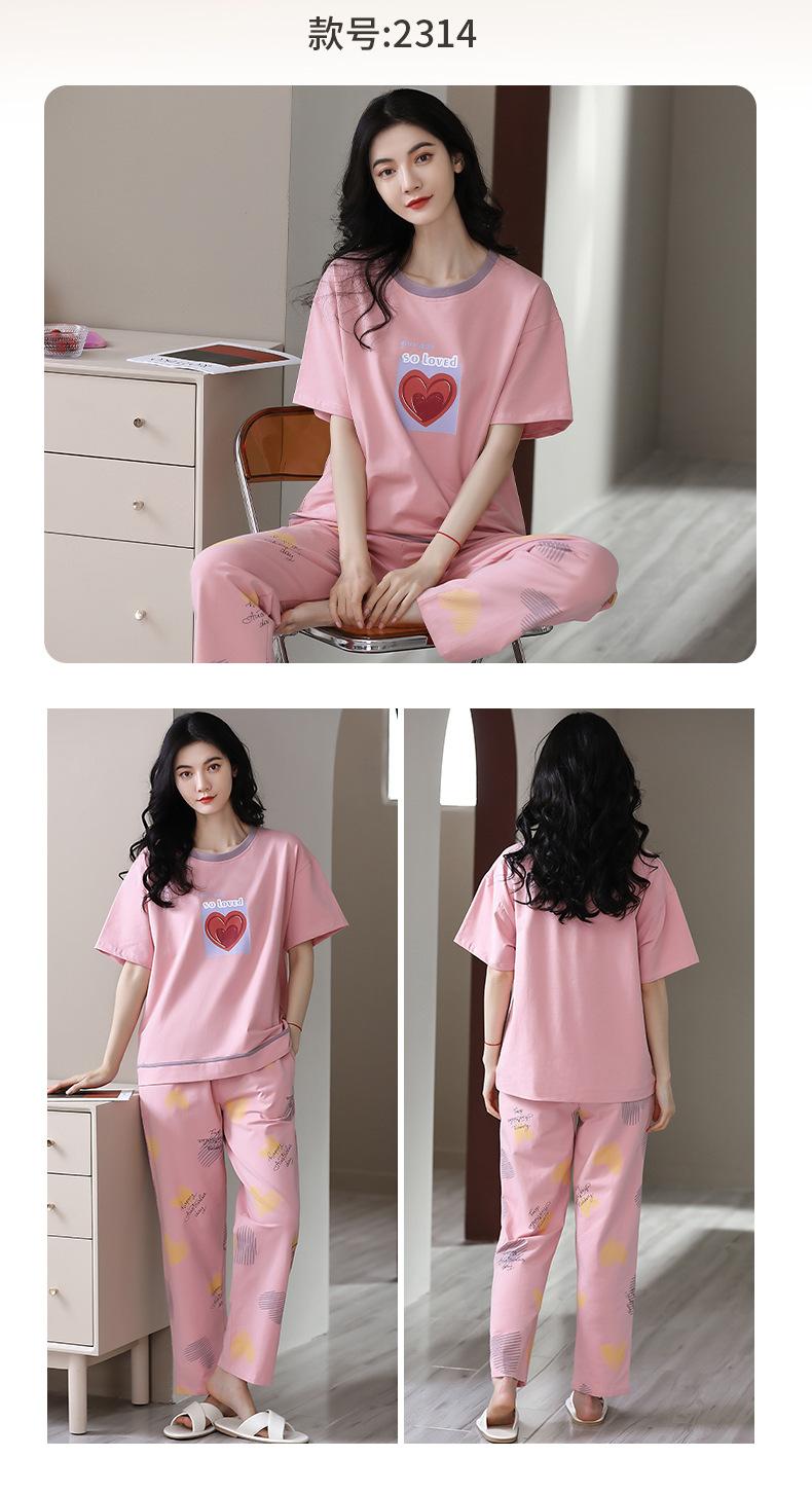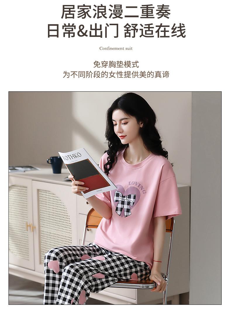 Pijamas nuevos de verano para mujer, de algodón puro, sencillos, de cuello redondo y manga corta, para el hogar, se pueden usar al aire libre.