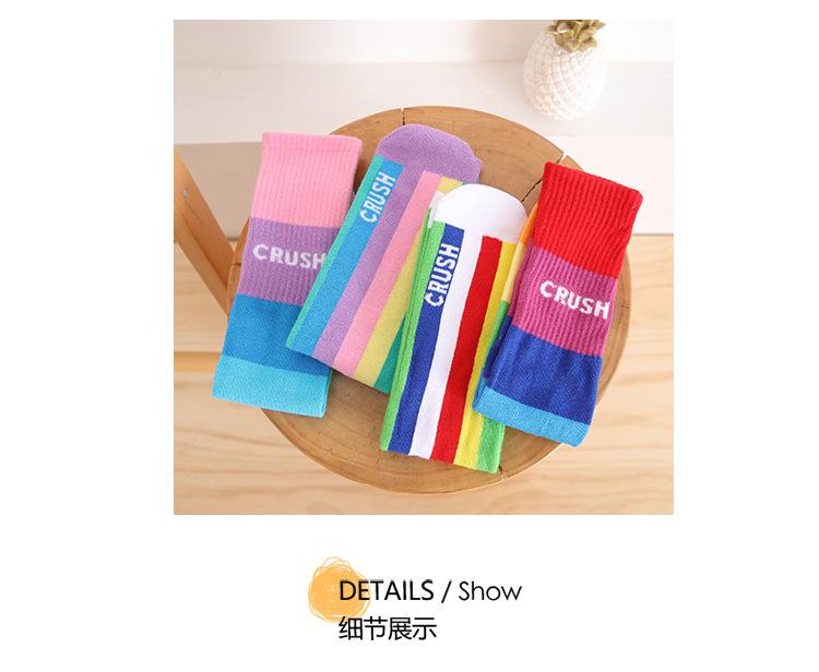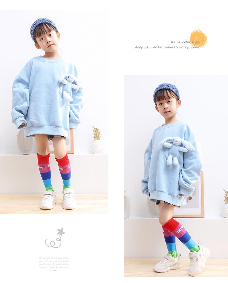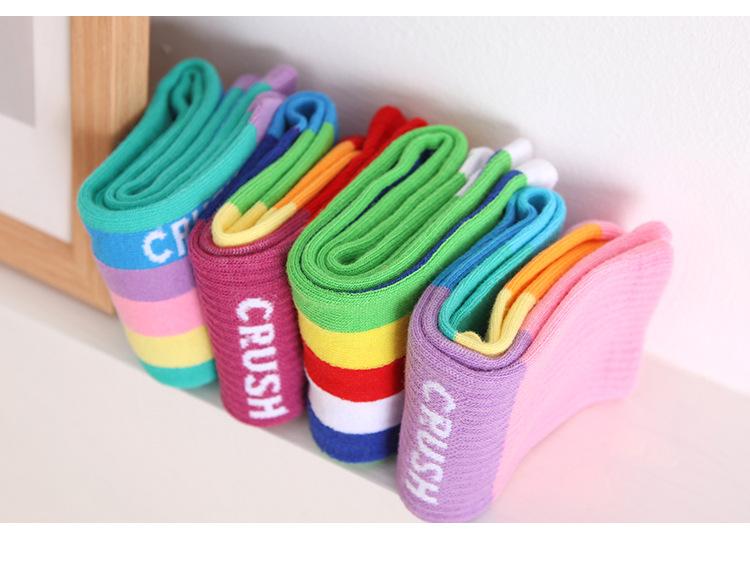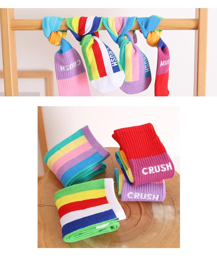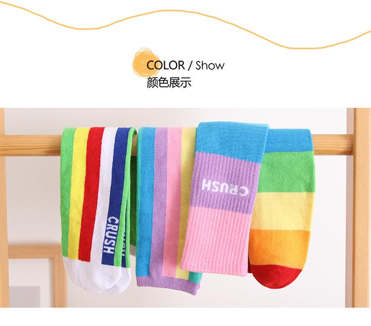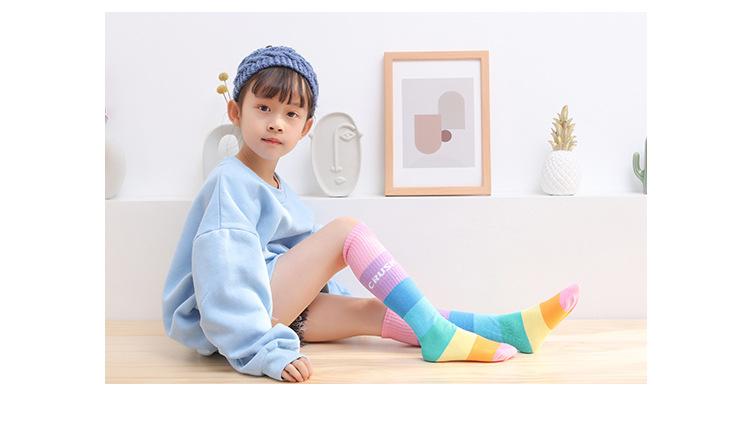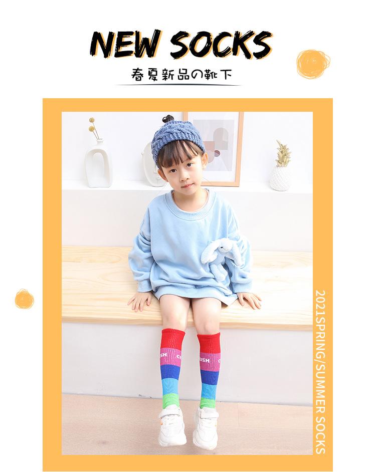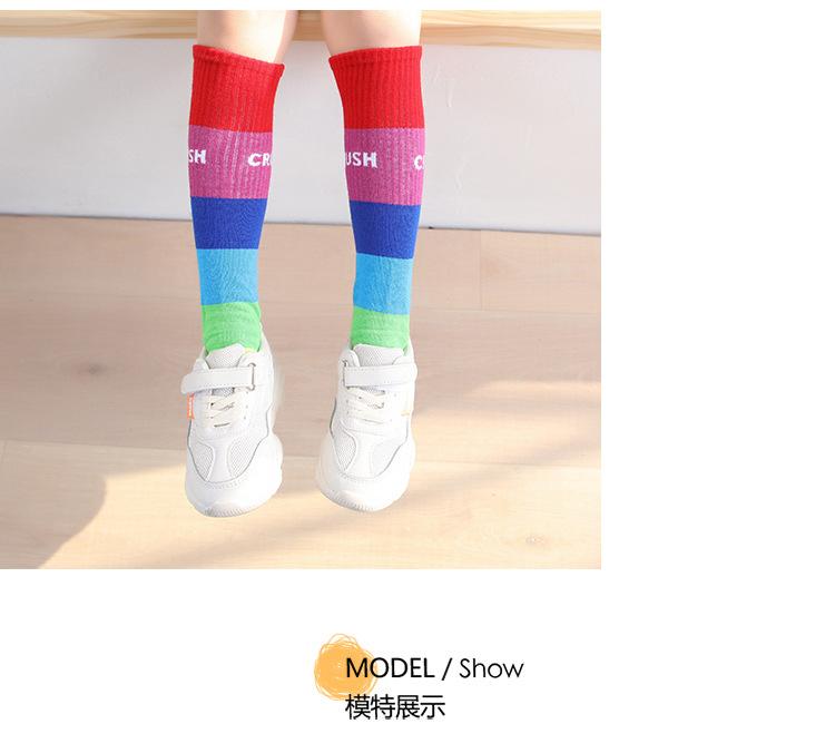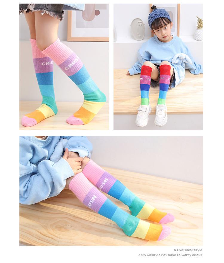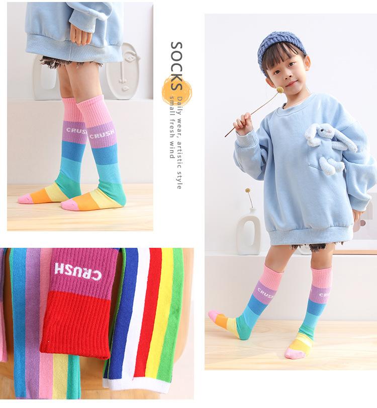 Calcetines de tubo nuevos para niños primavera y otoño algodón peinado rayas arcoíris calcetines hasta la rodilla para niñas calcetines de tubo largo de moda para bebé al por mayor
