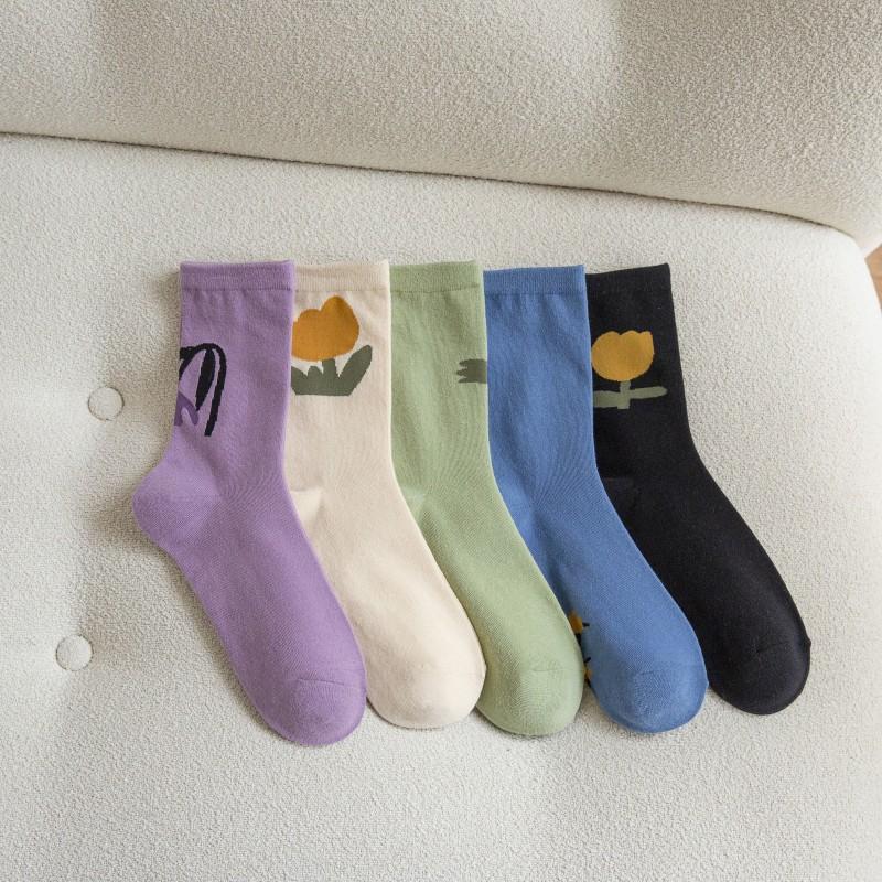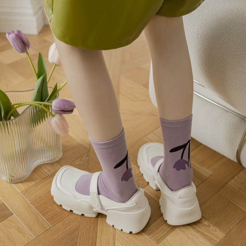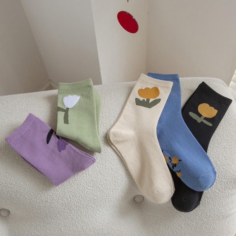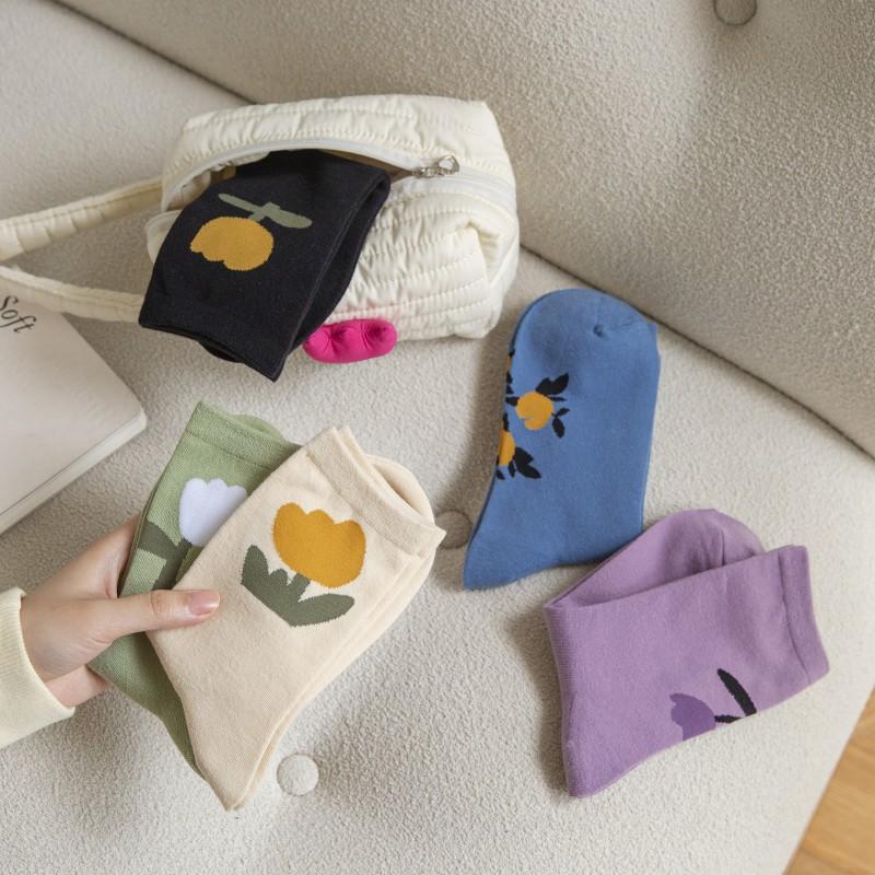 Compra Calcetines de tubo de primavera y otoño para mujer, calcetines retro con pequeñas flores, calcetines largos de tubo con tulipanes rojos de Fashion Net, venta al por mayor al por mayor en Joom.pro
