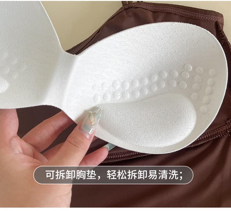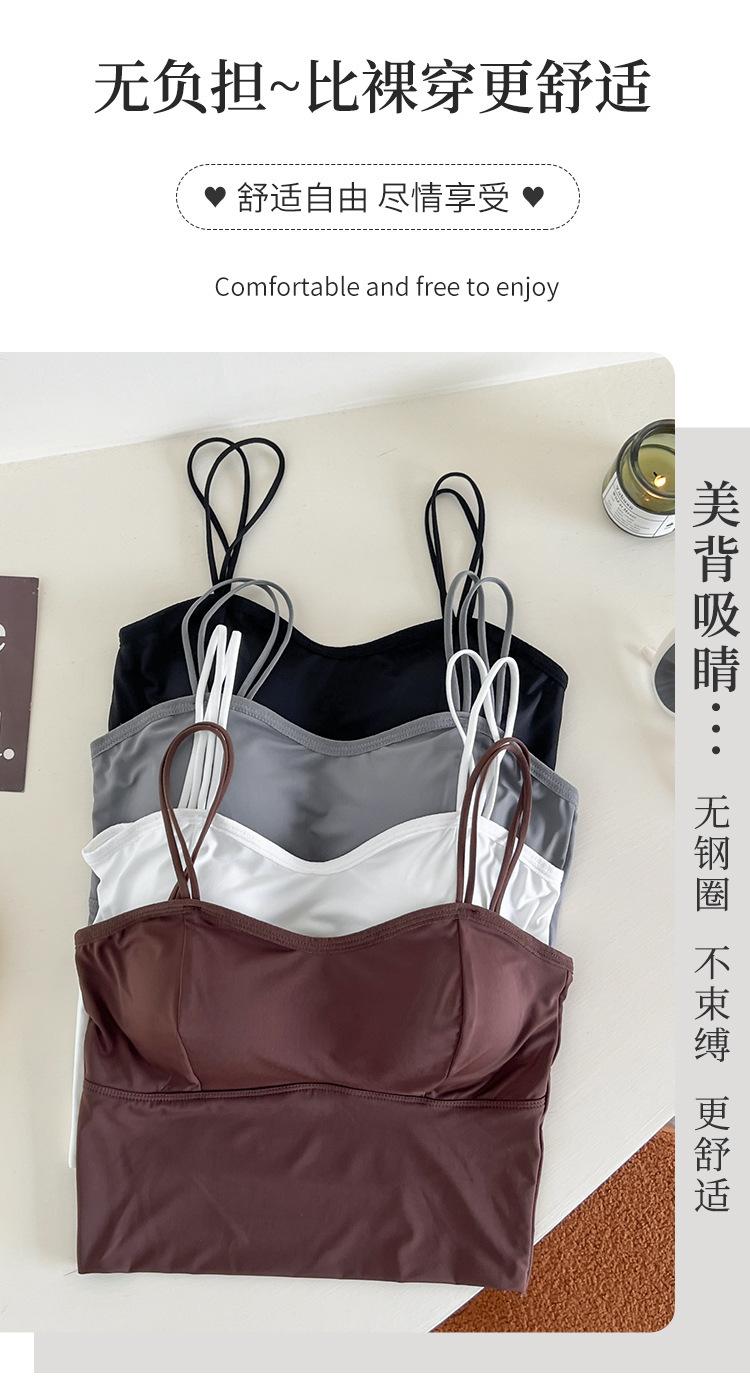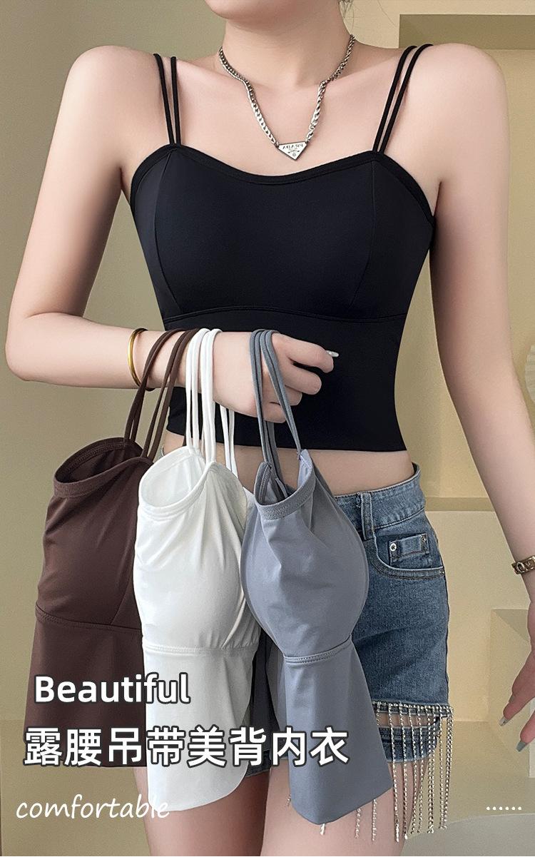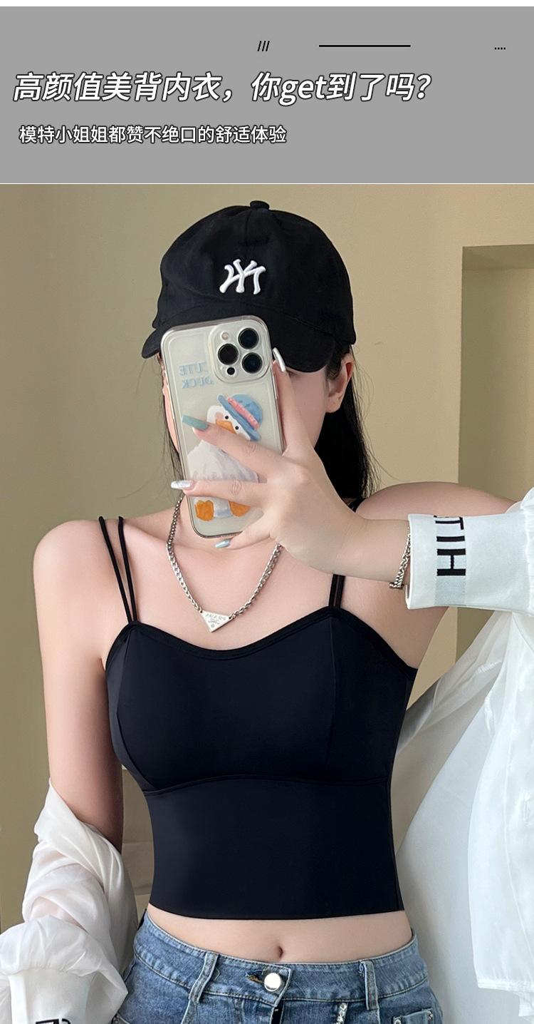 Top de tubo de seda de hielo de verano con forma de U grande y hermosa espalda cruzada con almohadilla para el pecho, ropa interior transpirable Spice Girl para mujer