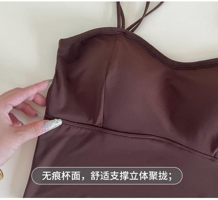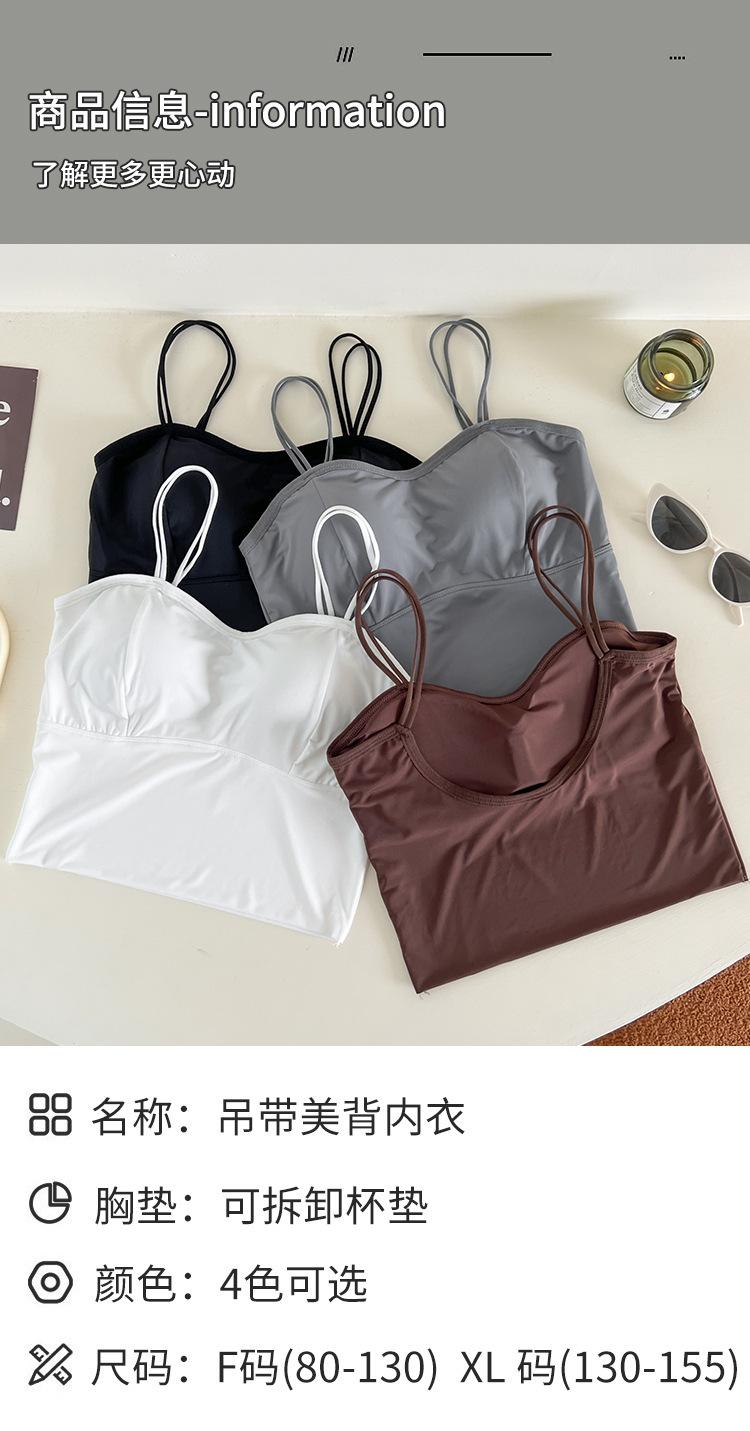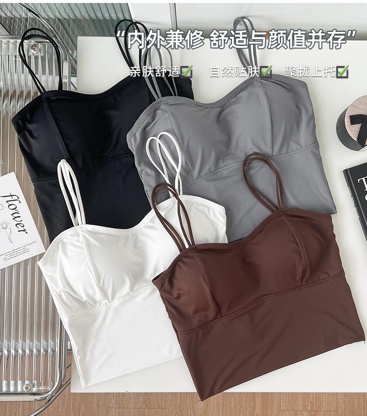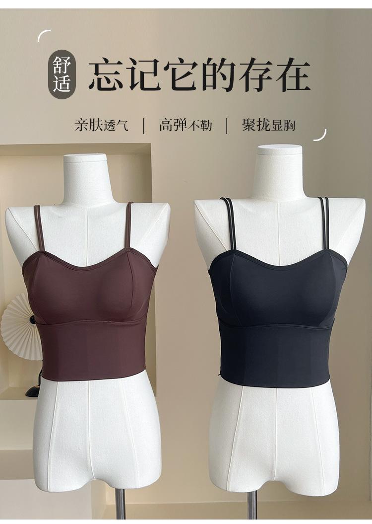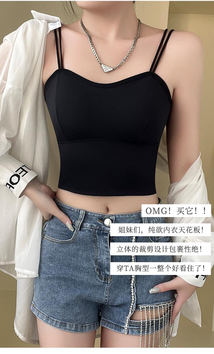 Top de tubo de seda de hielo de verano con forma de U grande y hermosa espalda cruzada con almohadilla para el pecho, ropa interior transpirable Spice Girl para mujer