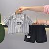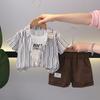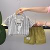 Traje de verano para niño 2024 nuevo estilo camisa estilo occidental bebé niños verano manga corta cárdigan dos piezas moda