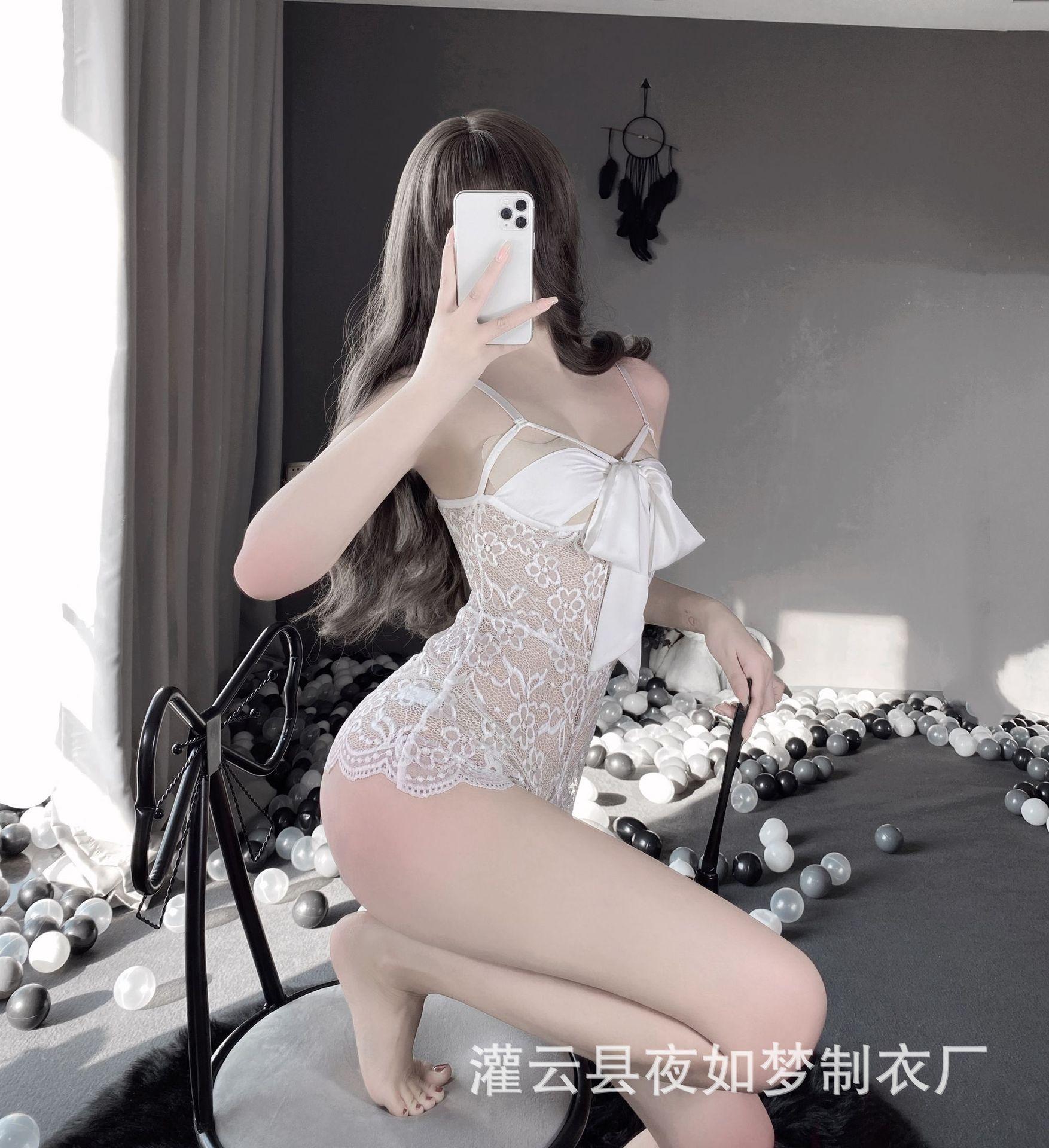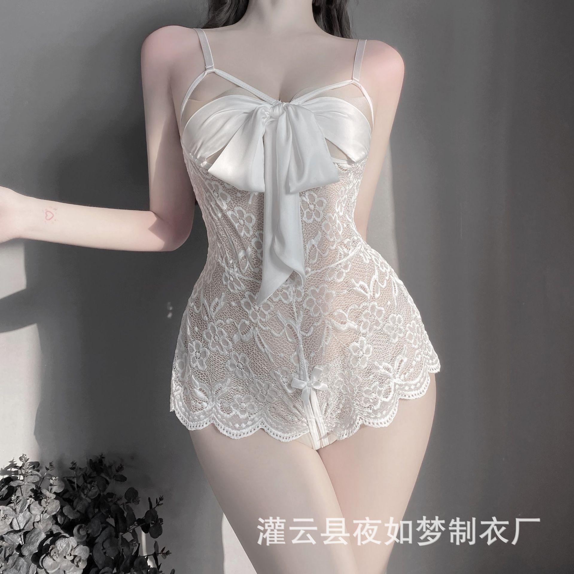 Ropa interior sexy de encaje transparente sexy puro deseo abrir pasión traje de una pieza para mujer pijamas de cama tentación