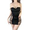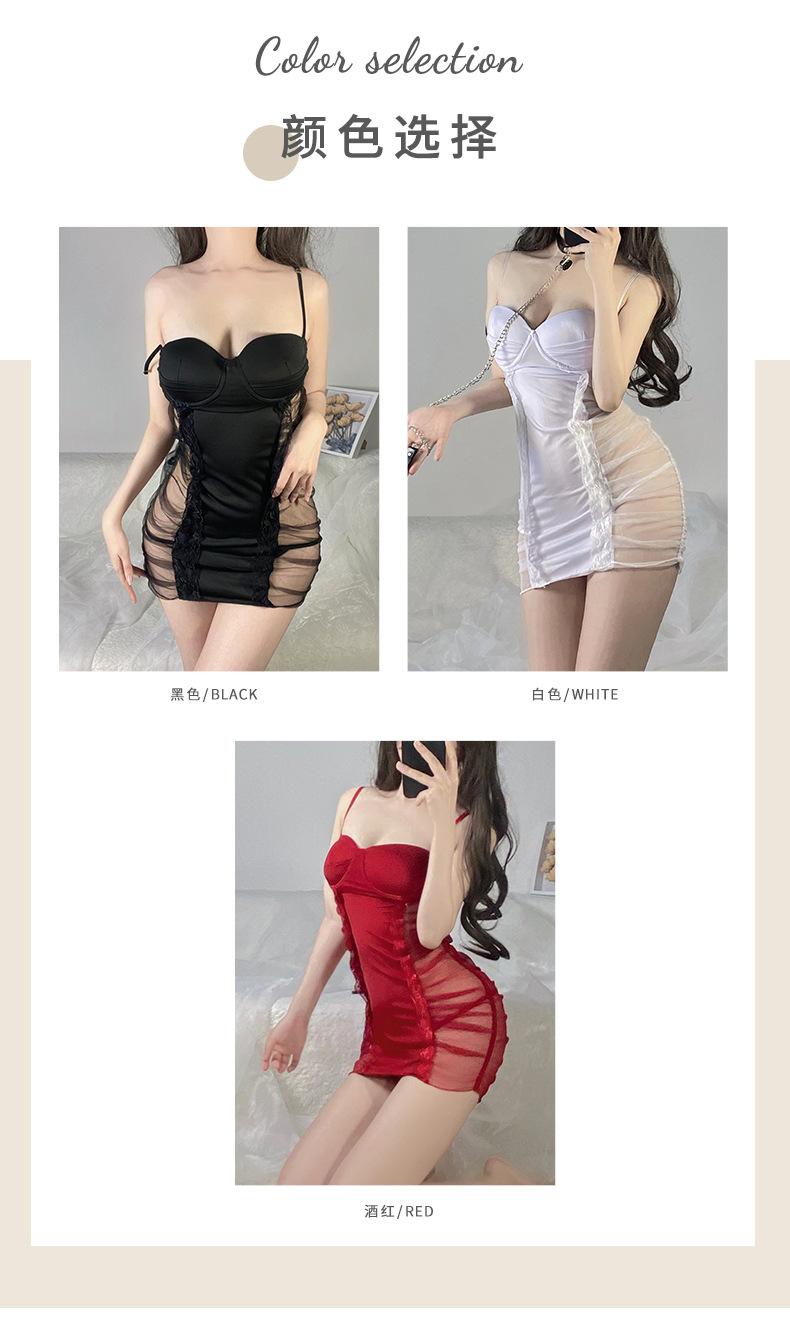 Lencería sexy transparente con tirantes de acero, falda de tul, tentación, lencería sexy de malla plisada con almohadilla para el pecho, camisón
