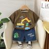 Ropa para niños Yijia Ropa para niños Traje de verano para niños 2024 Nuevo Deportivo Verano Estilo coreano Conjunto delgado de dos piezas para niños