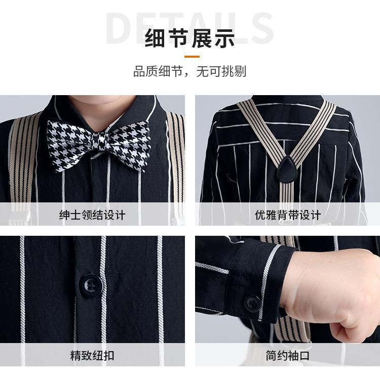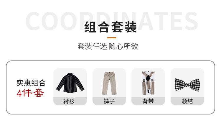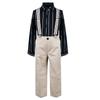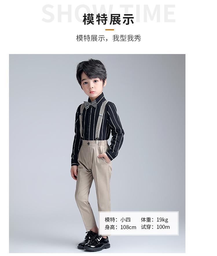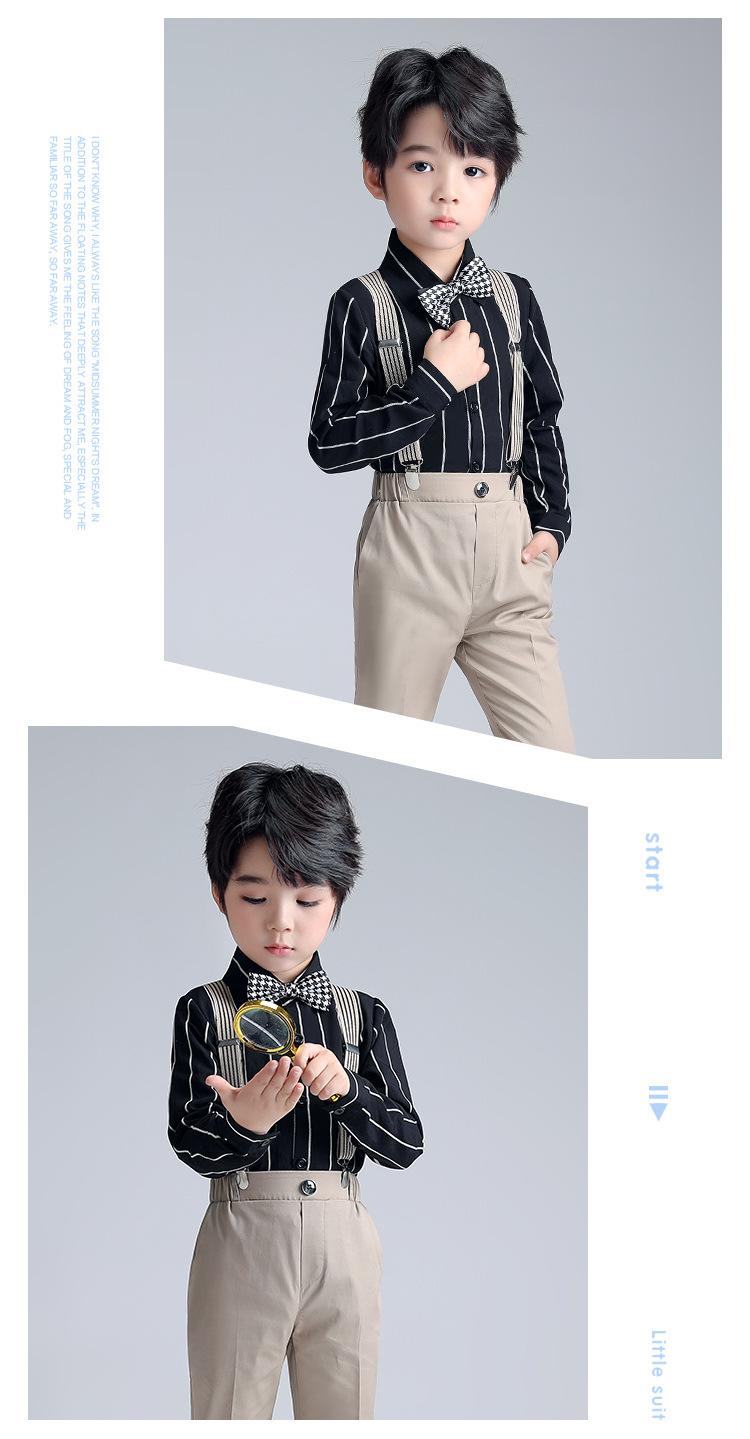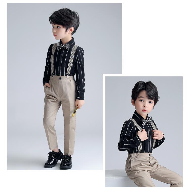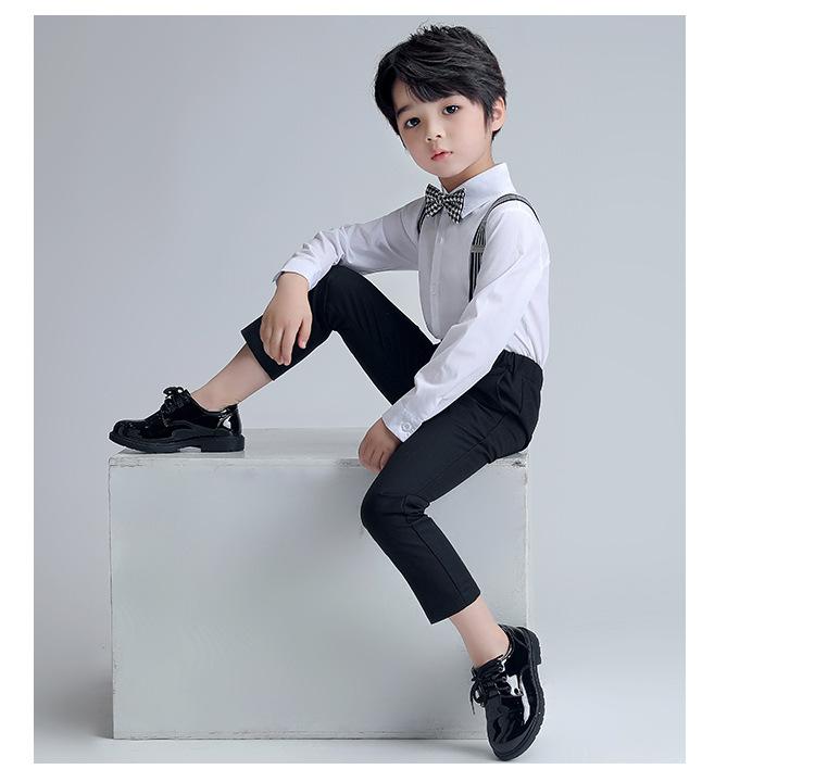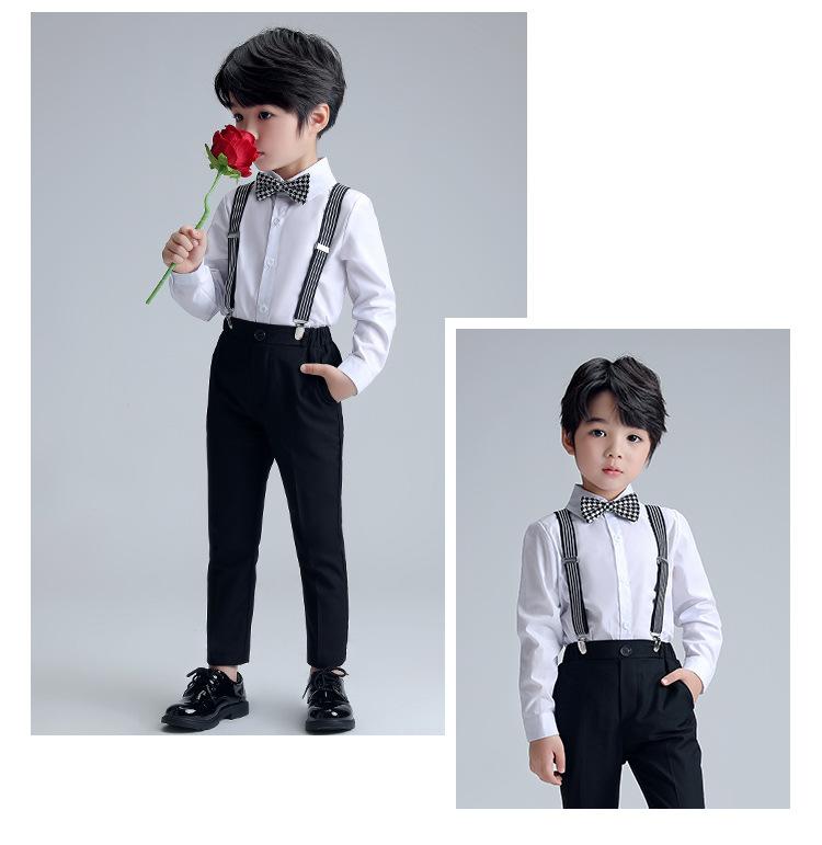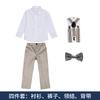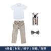 White long sleeve 4-piece set (white long sleeve + khaki trousers + strap + bow tie)