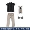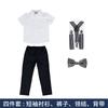 White short-sleeved four-piece set (white short-sleeved + black trousers + straps + bow tie)