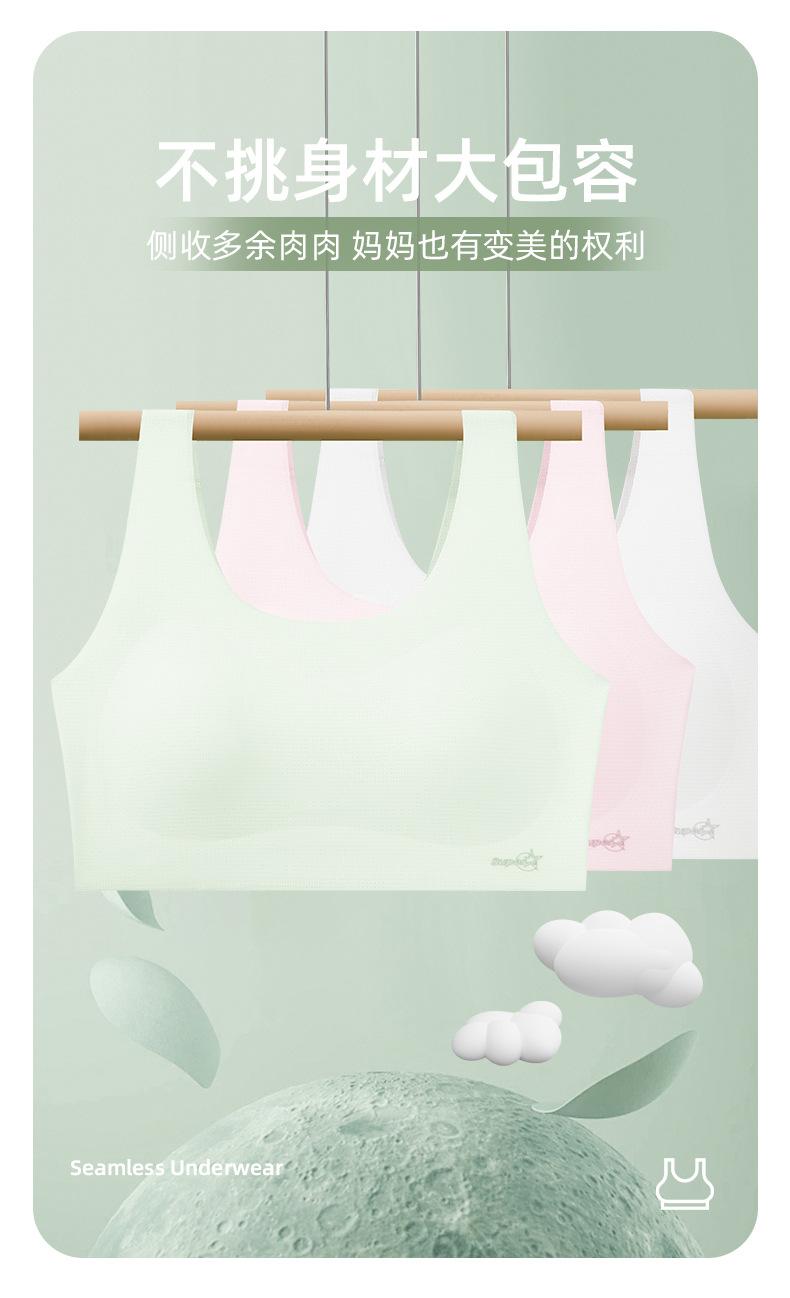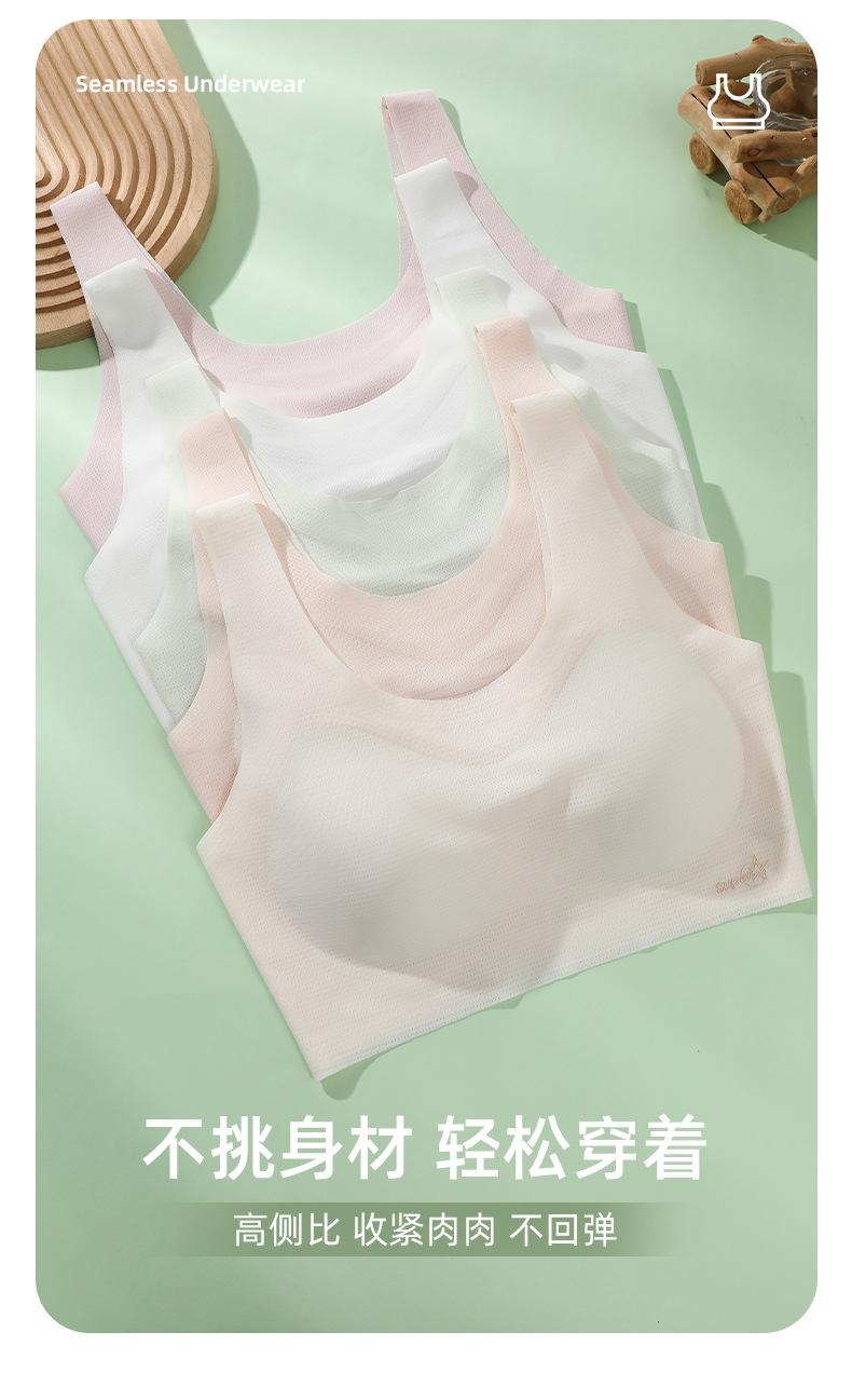 Primavera Nuevo Estilo Mediana Edad y Anciana Talla Grande Sujetador Ampliado Sin Costuras Copa Delgada Sin Aro de Acero Copa Fija Chaleco de Alta Elasticidad Ropa Íntima para Mujer