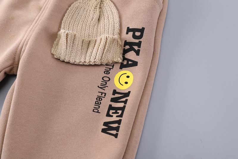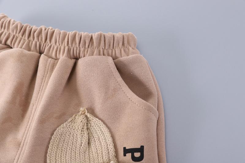 Brown 24001 hat bear long sleeve two-piece set, Creamy-white 24001 hat bear long sleeve two-piece set