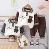 Traje de ropa de primavera para bebé niño 2024 nuevo suéter de dibujos animados de manga larga para niño conjunto de dos piezas ropa exterior estilo occidental ropa de moda infantil