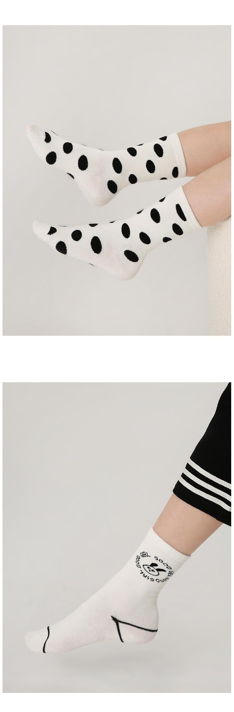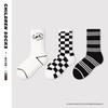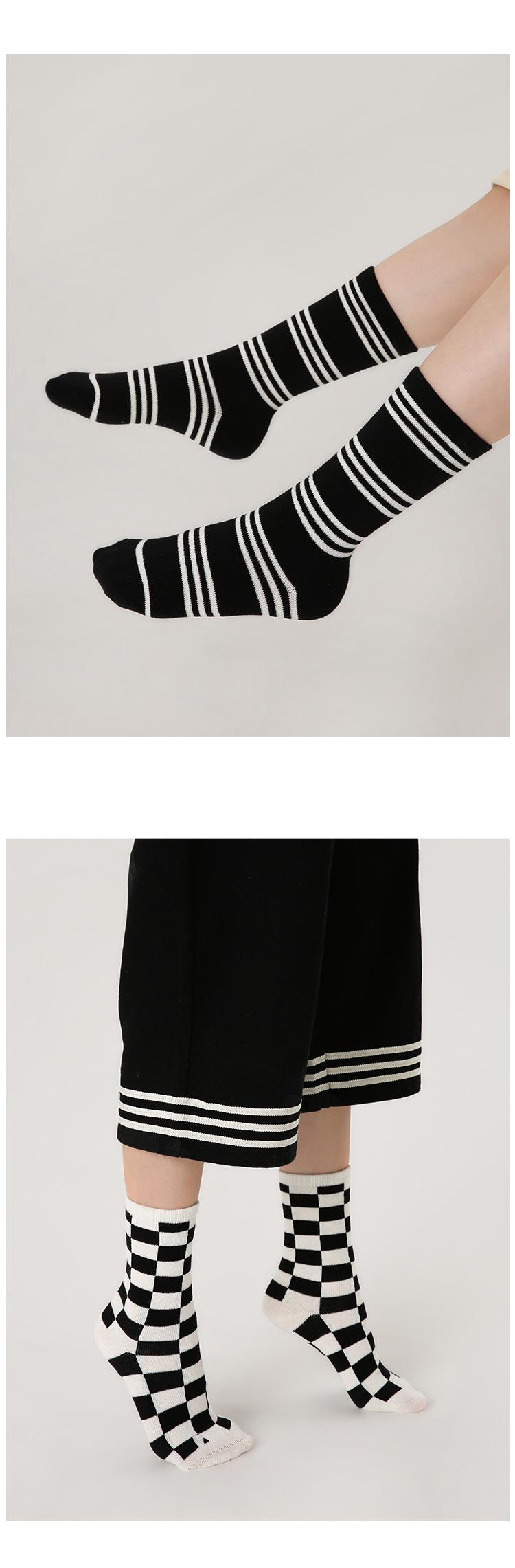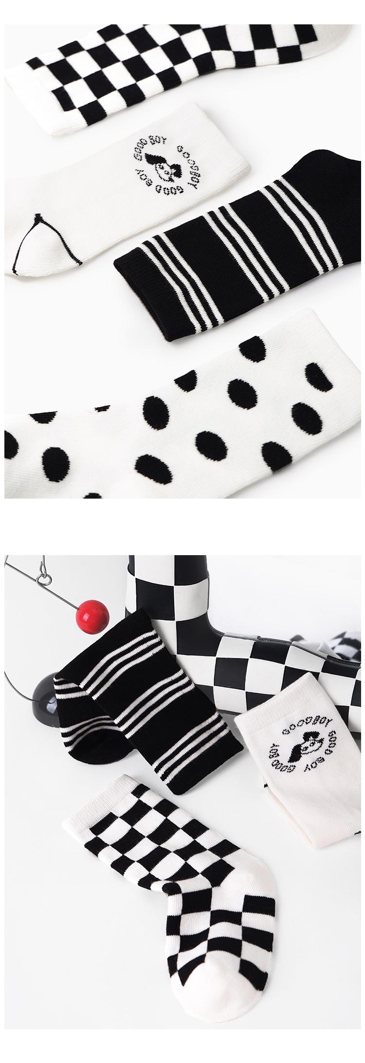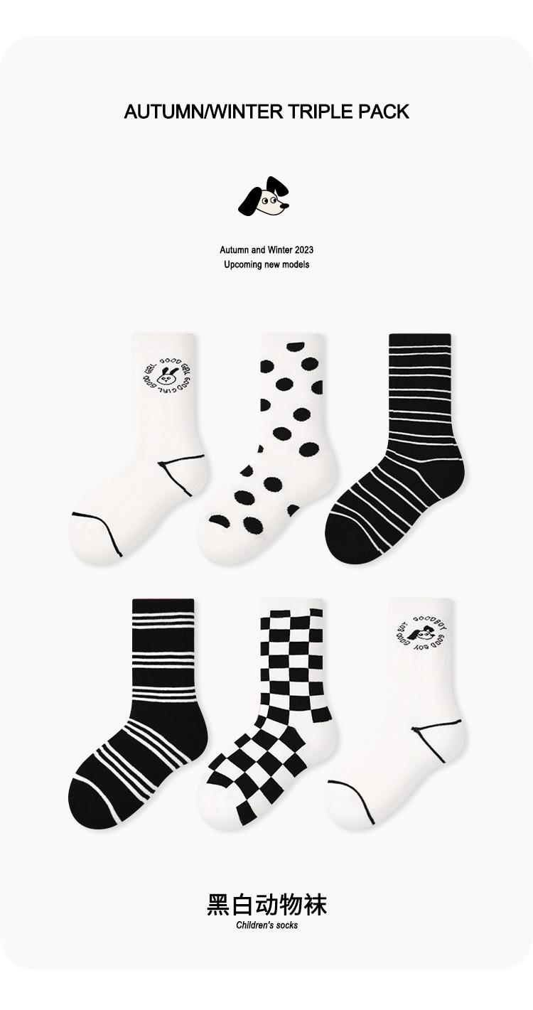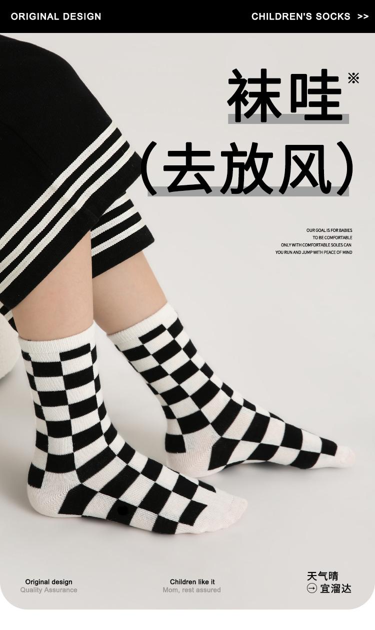 Calcetines para niños, una generación de calcetines con marea de pelo, otoño e invierno, calcetines de tubo a cuadros con puntos de ondas en blanco y negro, calcetines de algodón sin huesos con dibujos animados para niños y niñas
