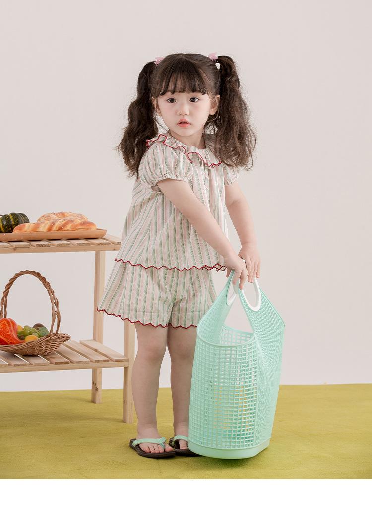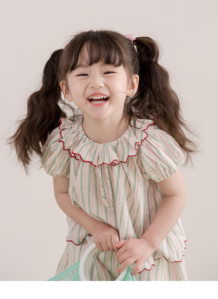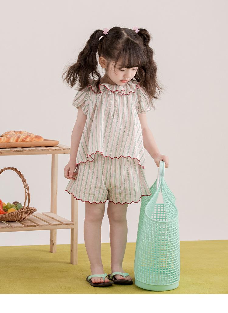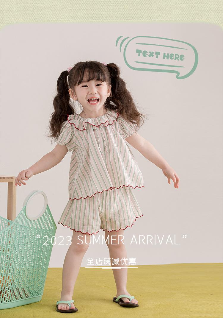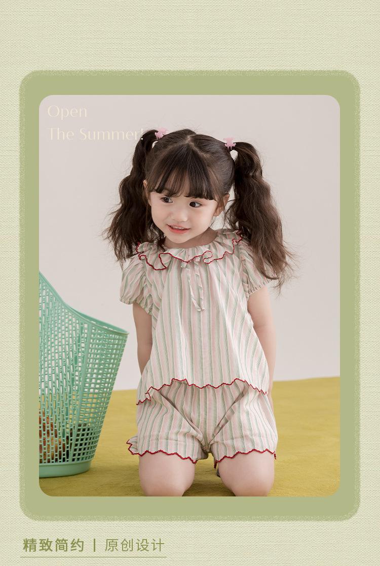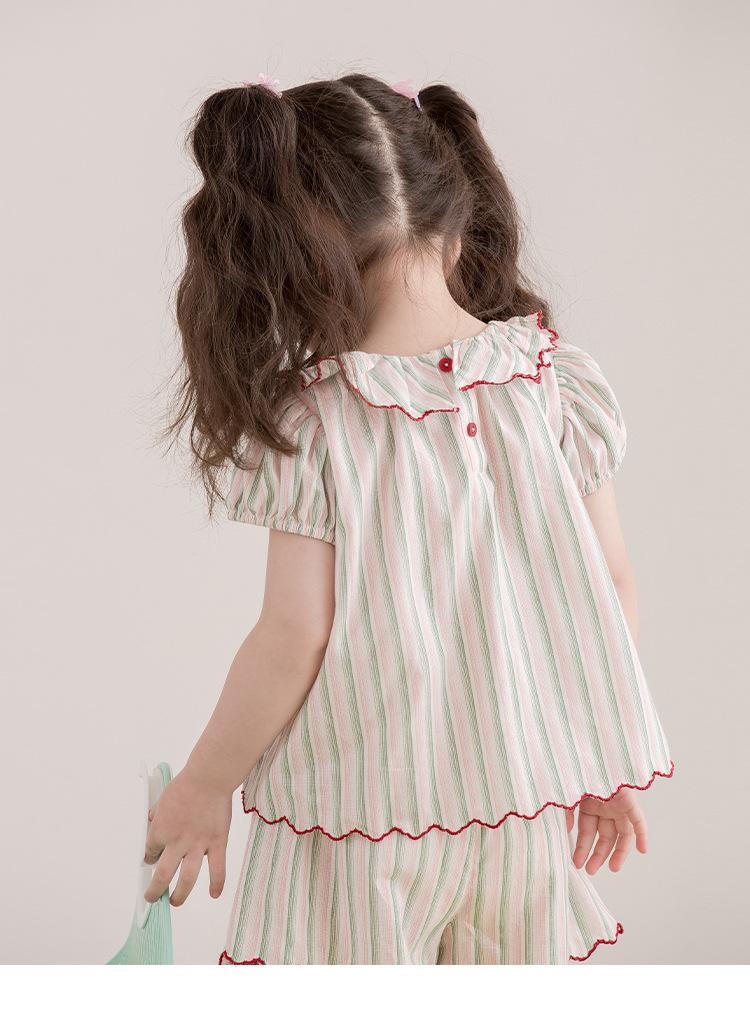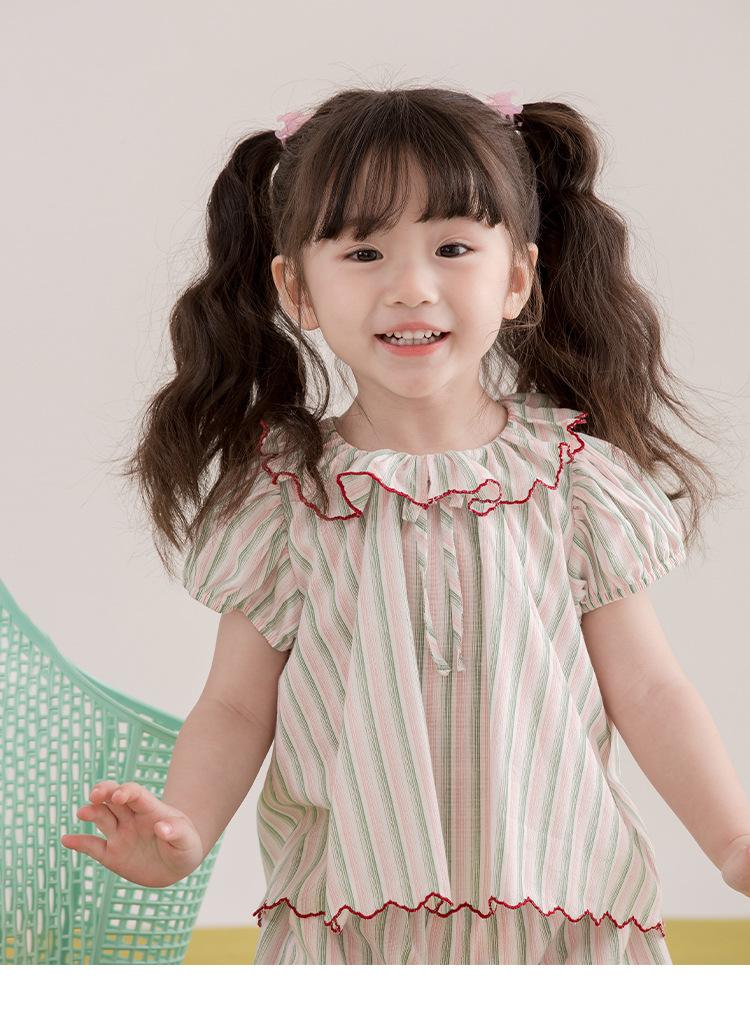 Traje para Niñas 2025 Verano Nuevo Ropa para Niños Dulce Rayado con Volantes Ropa de Casa para Niños Set de Dos Piezas para Bebé Niña