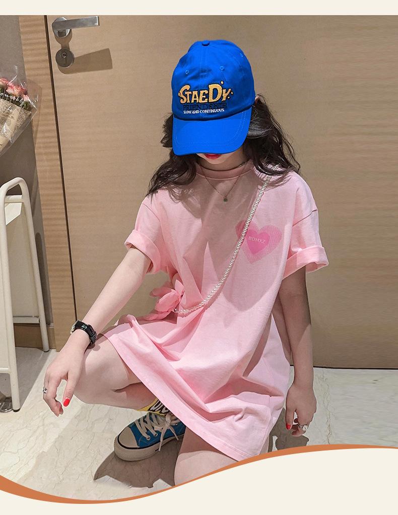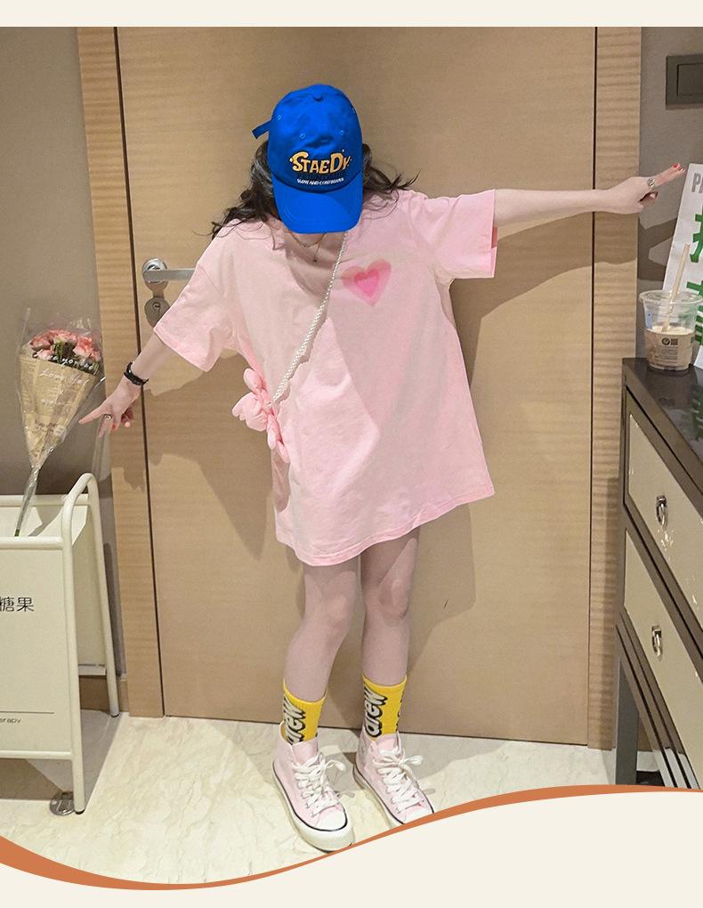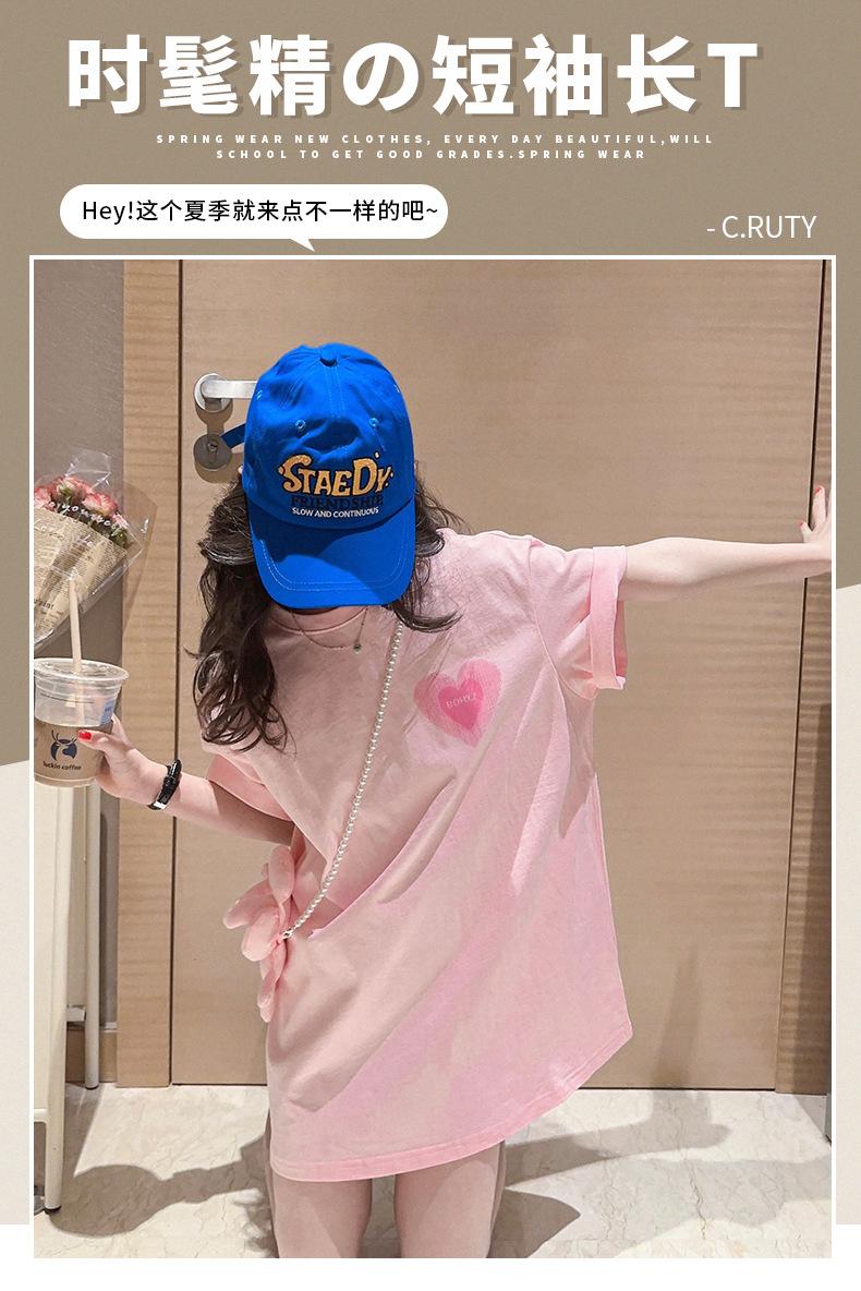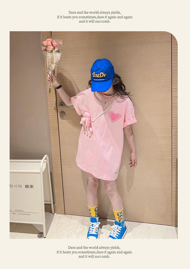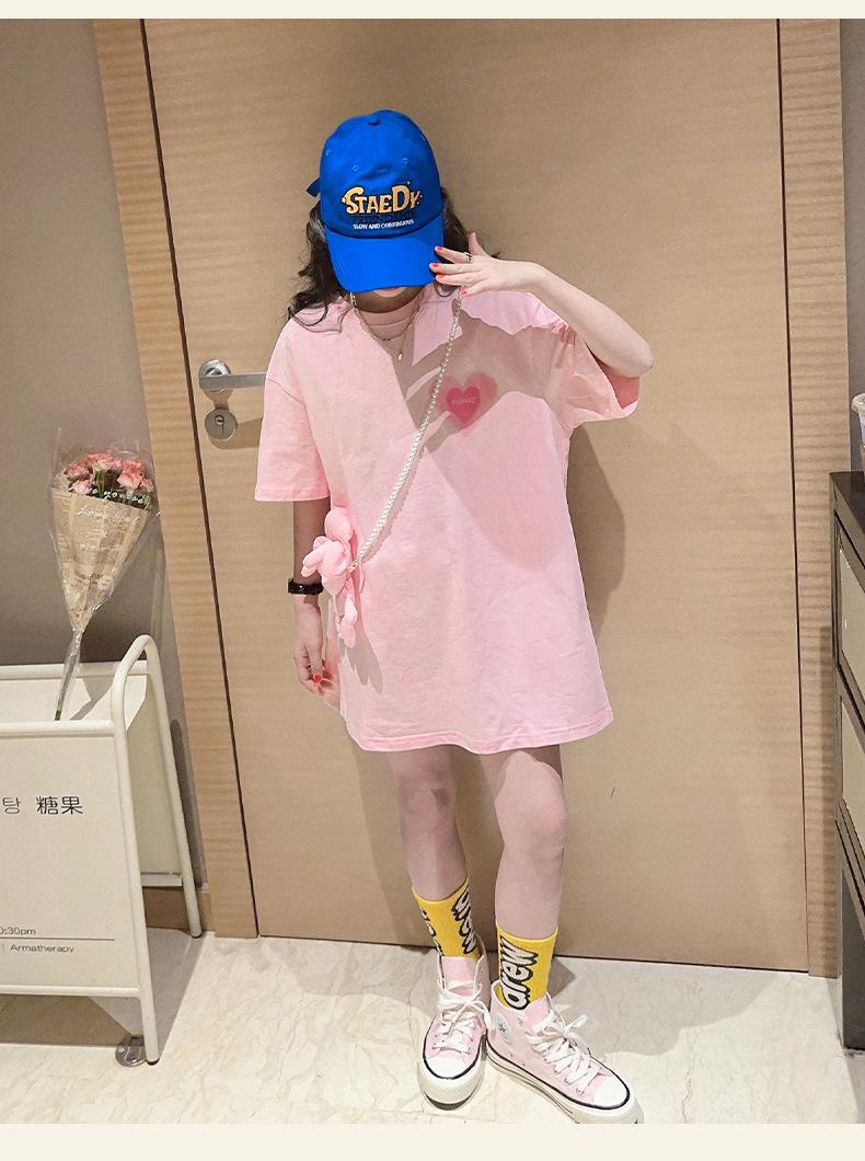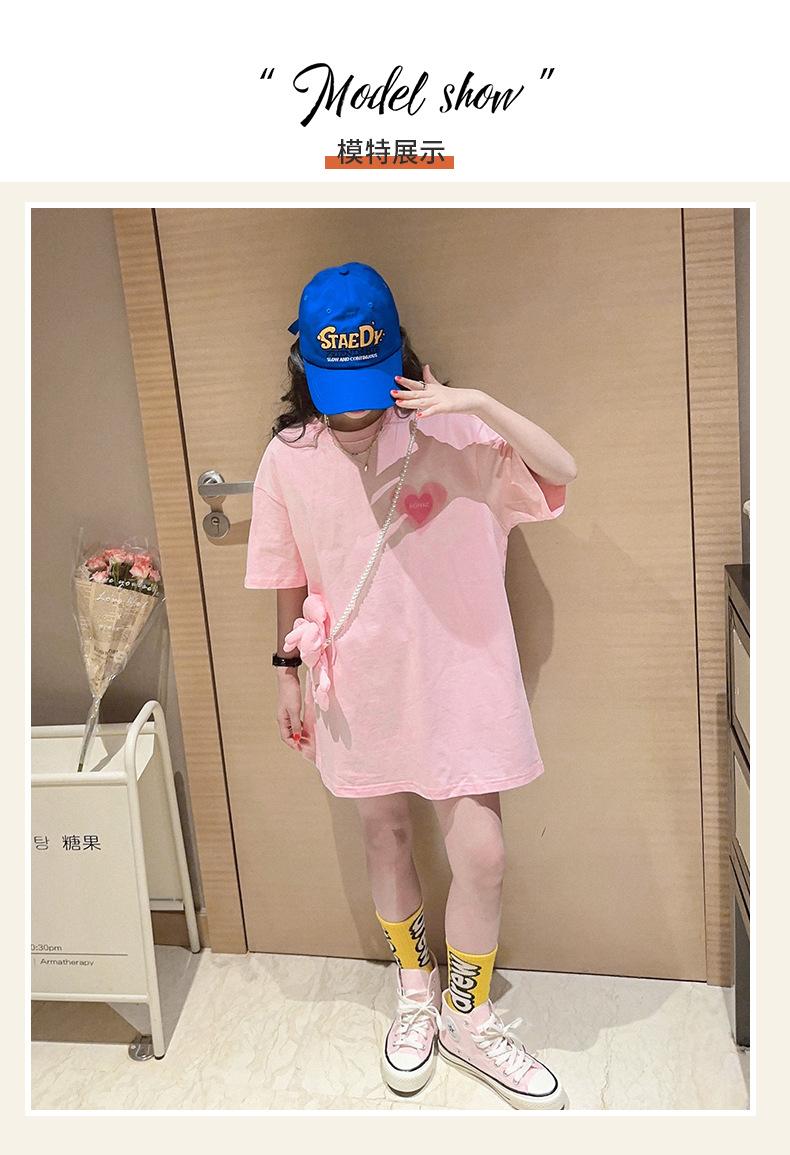 Compra Camiseta Infantil de Verano de Manga Corta con Patrón de Corazón Rosa de Moda para Niña Camisa Casual Top de Largo Medio Falda Delgada Ligera al por mayor en Joom.pro