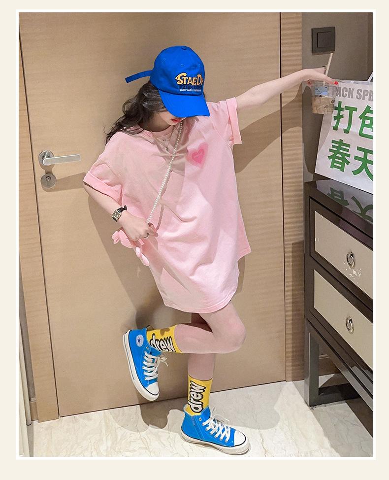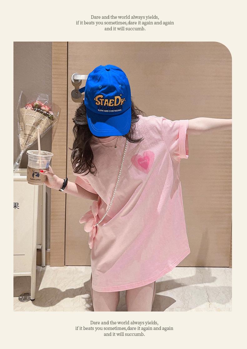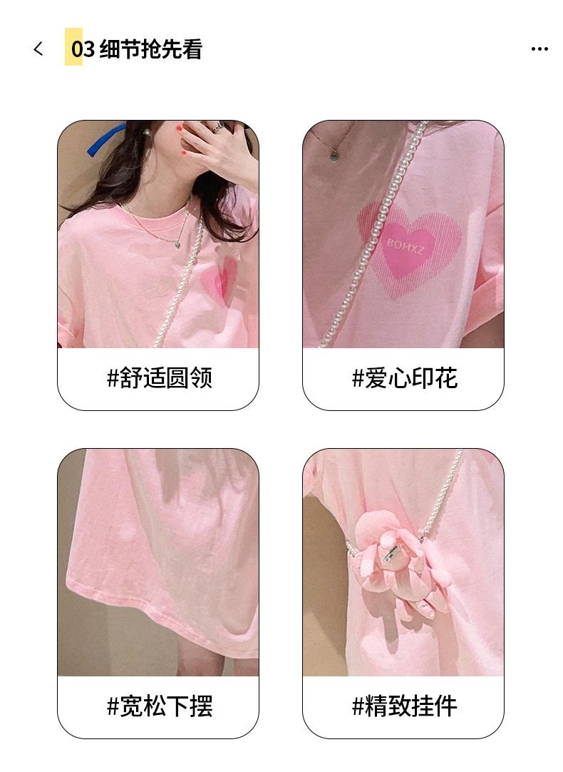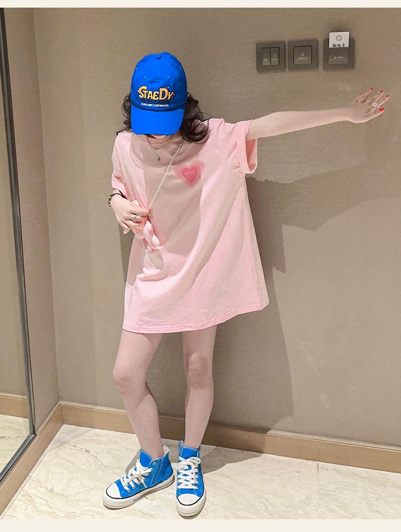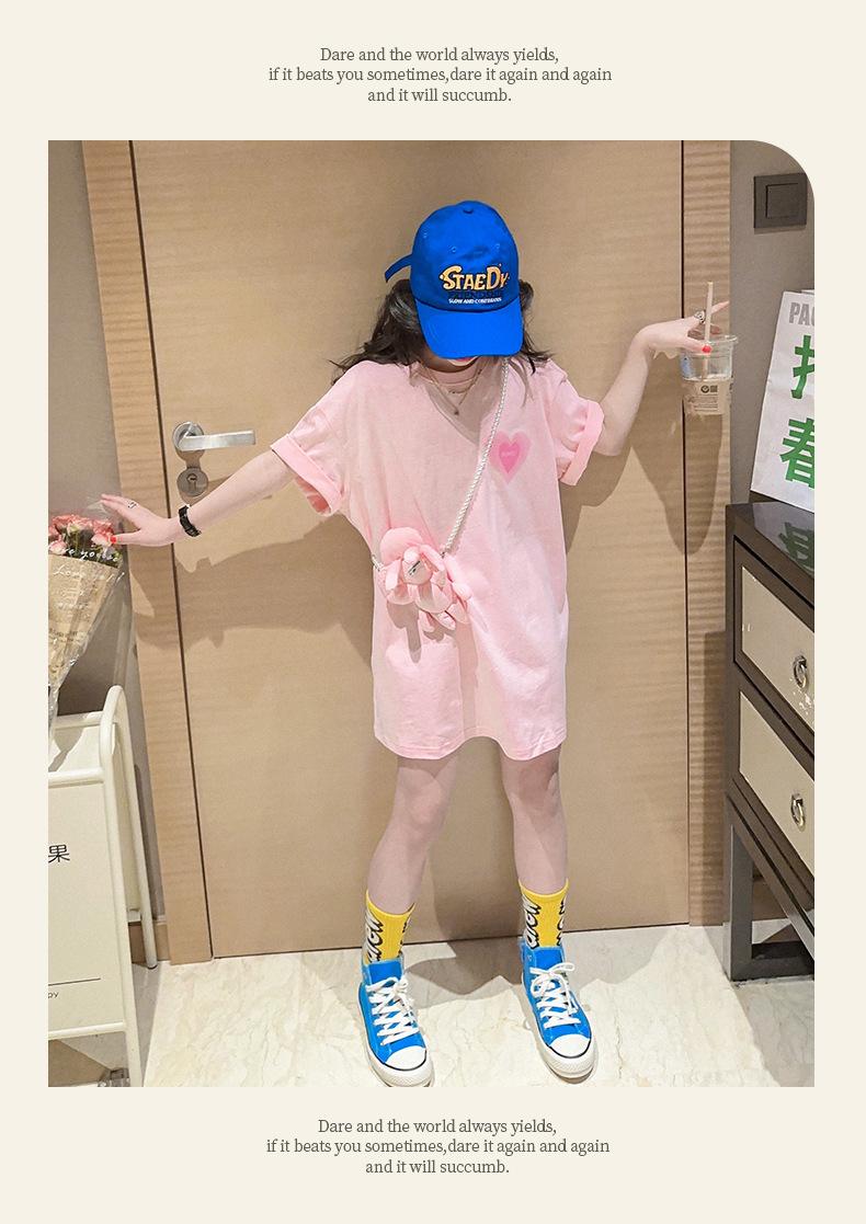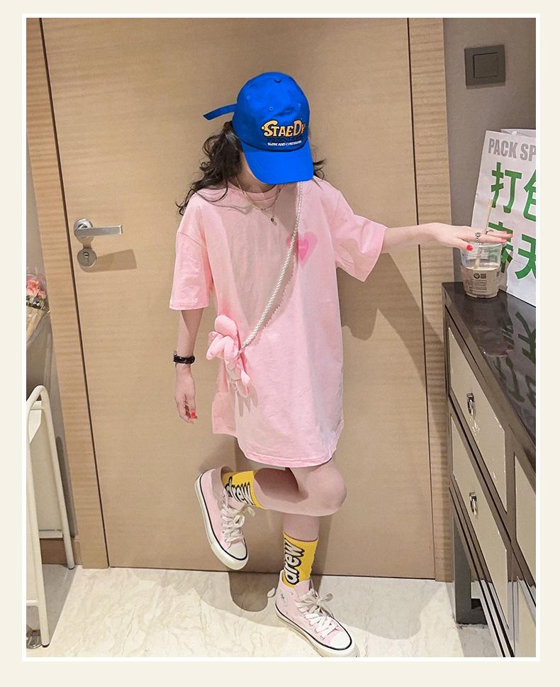 Compra Camiseta Infantil de Verano de Manga Corta con Patrón de Corazón Rosa de Moda para Niña Camisa Casual Top de Largo Medio Falda Delgada Ligera al por mayor en Joom.pro