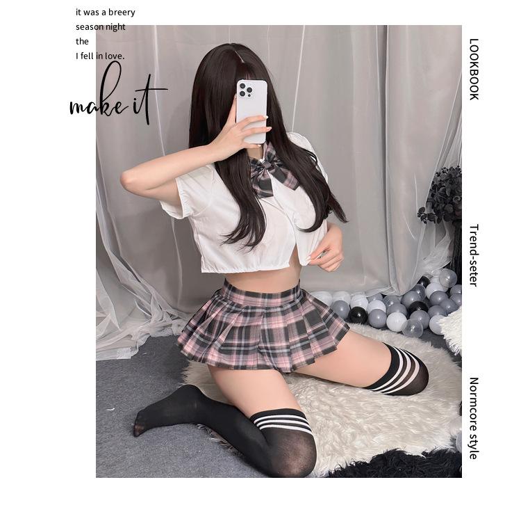 Ropa interior sexy para dormir, vestido de estudiante, uniforme jk sexy, tentación, falda plisada, traje de juego de rol para el cabello
