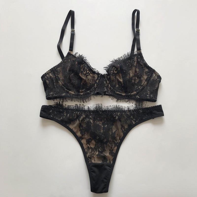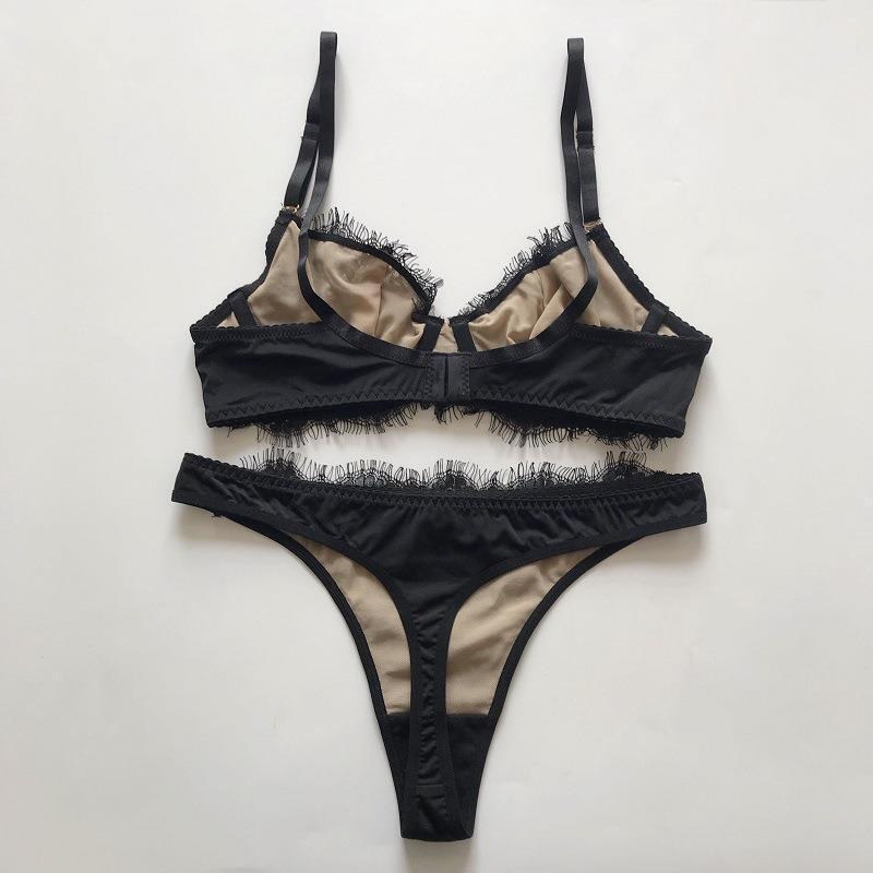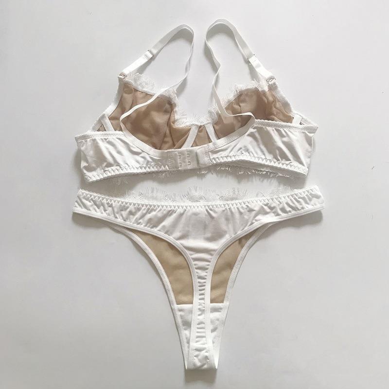 Ropa interior de estilo francés para mujer, conjunto de ropa interior sexy de encaje ultrafino con pestañas, pecho grande, sujetador llamativo, talla grande, antiflacidez.