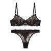 Lencería sexy transfronteriza de verano súper delgada de malla transparente con bordado lencería para busto grande hace que se vea más pequeño sujetador anticacique y set de bragas