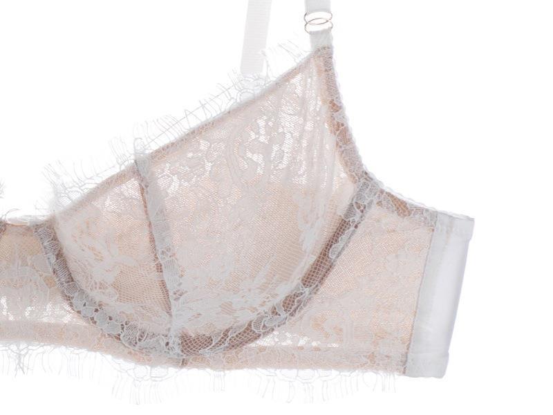 Lencería Sexy Europea y Americana Francesa Ultrafina Transparente de Malla Jacquard Encaje Lencería Pecho Grande Luce Más Pequeño Brasier Anticaída