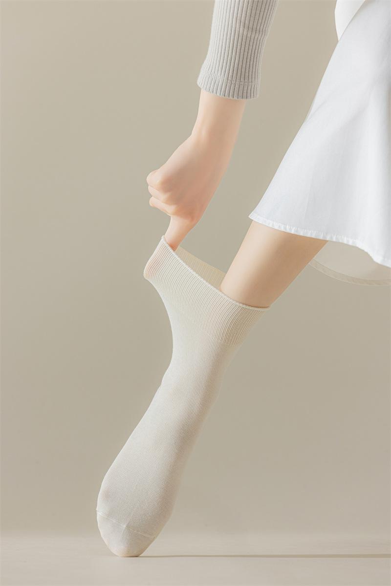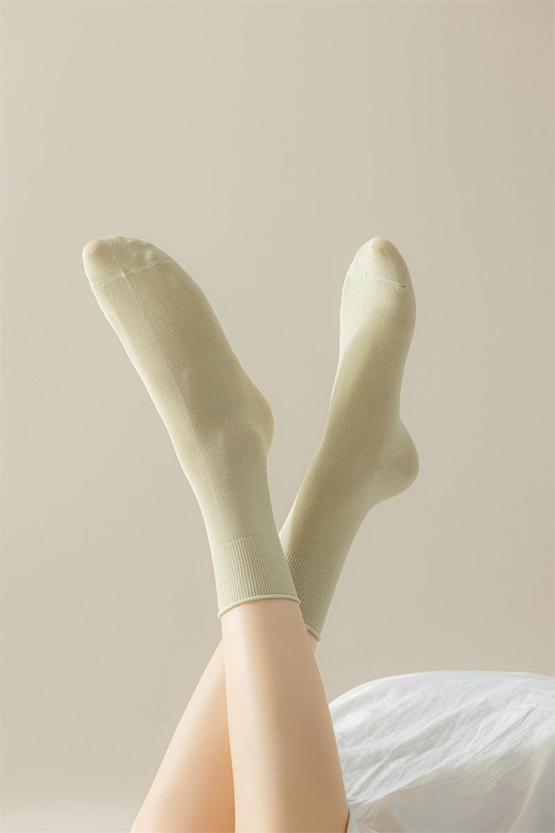 Calcetines de Verano para Mujer Calcetines Finos de Luna Calcetines de Algodón de Color Sólido Calcetines de Media Caña Transpirables Medias para Niñas Calcetines Apilados de Verano Sin Costuras