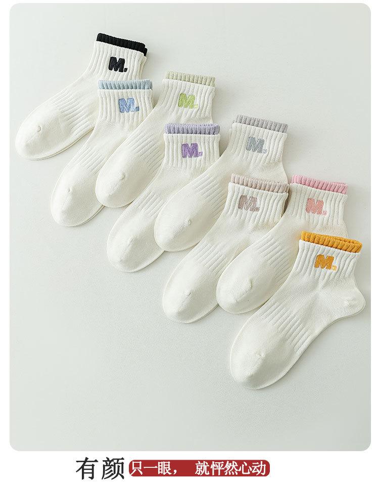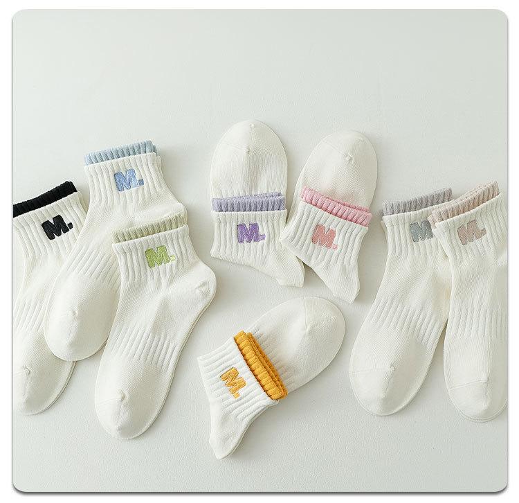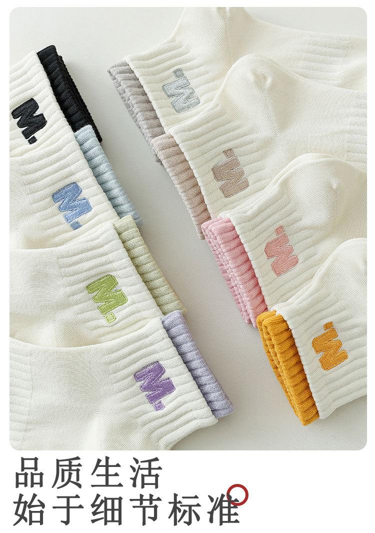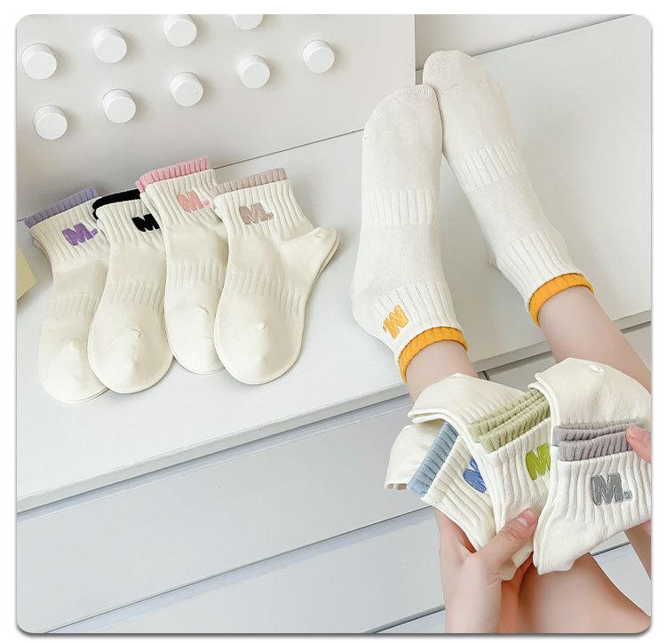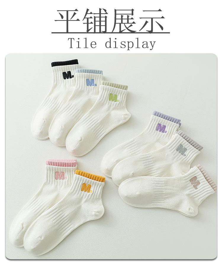 Calcetines Blancos Calcetines Cortos de Primavera y Verano para Mujer Letras Deportivos Calcetines de Algodón Verano Delgados Sin Costuras Calcetines Medios Transpirables Calcetines Cortos