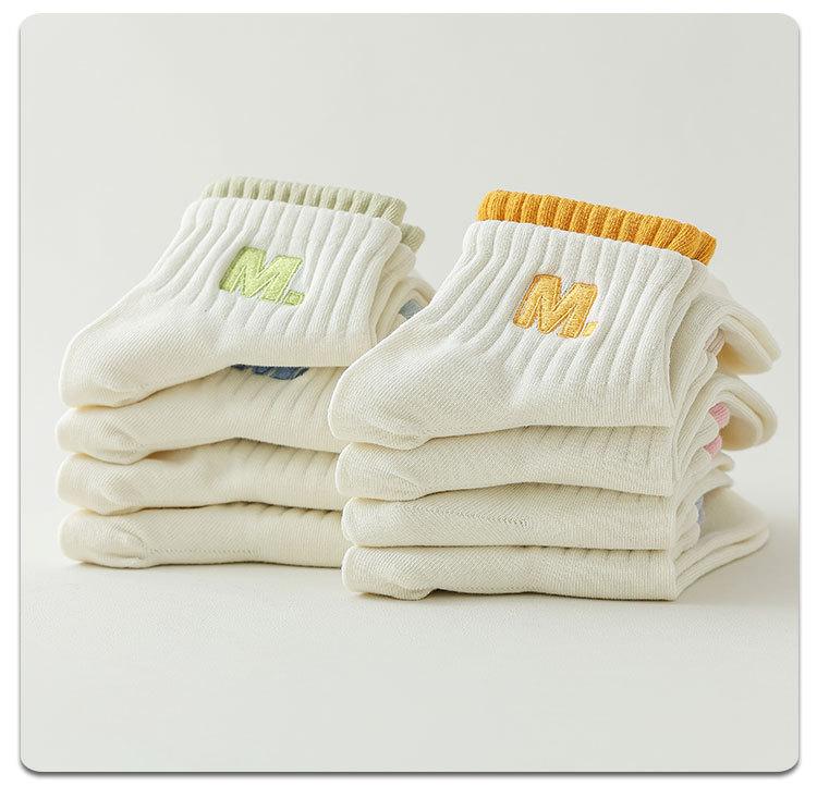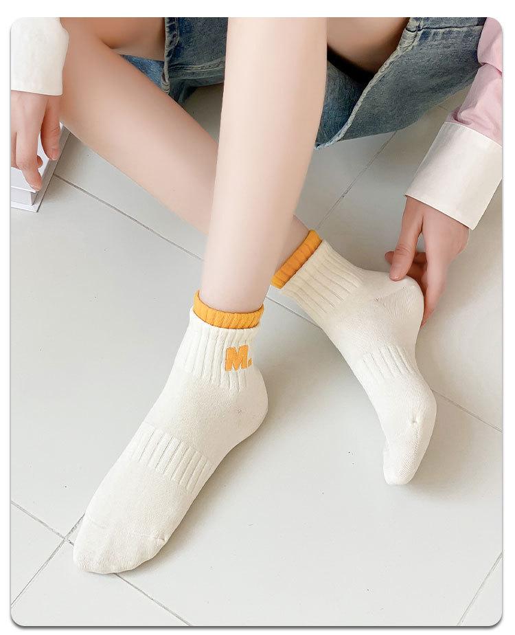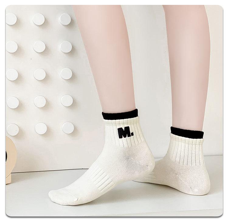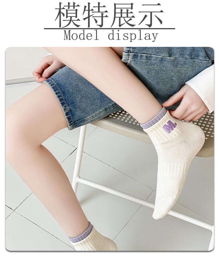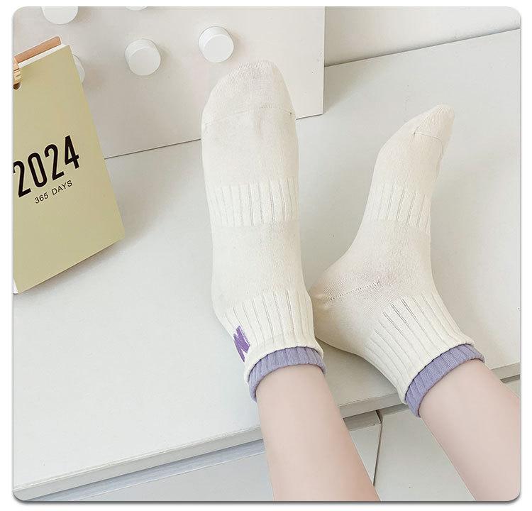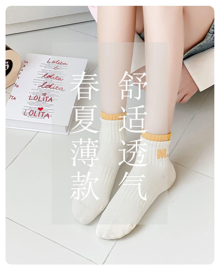 Calcetines Blancos Calcetines Cortos de Primavera y Verano para Mujer Letras Deportivos Calcetines de Algodón Verano Delgados Sin Costuras Calcetines Medios Transpirables Calcetines Cortos