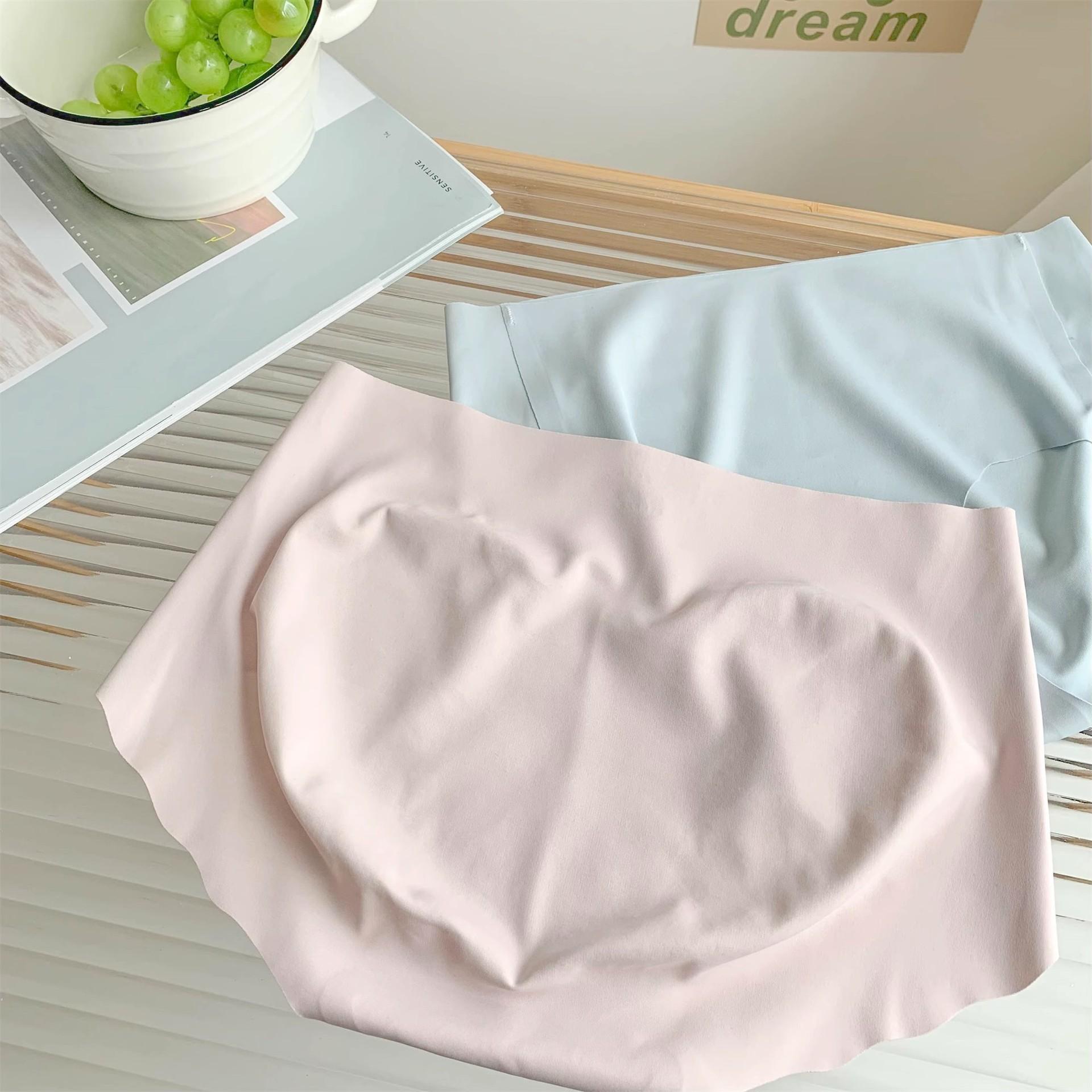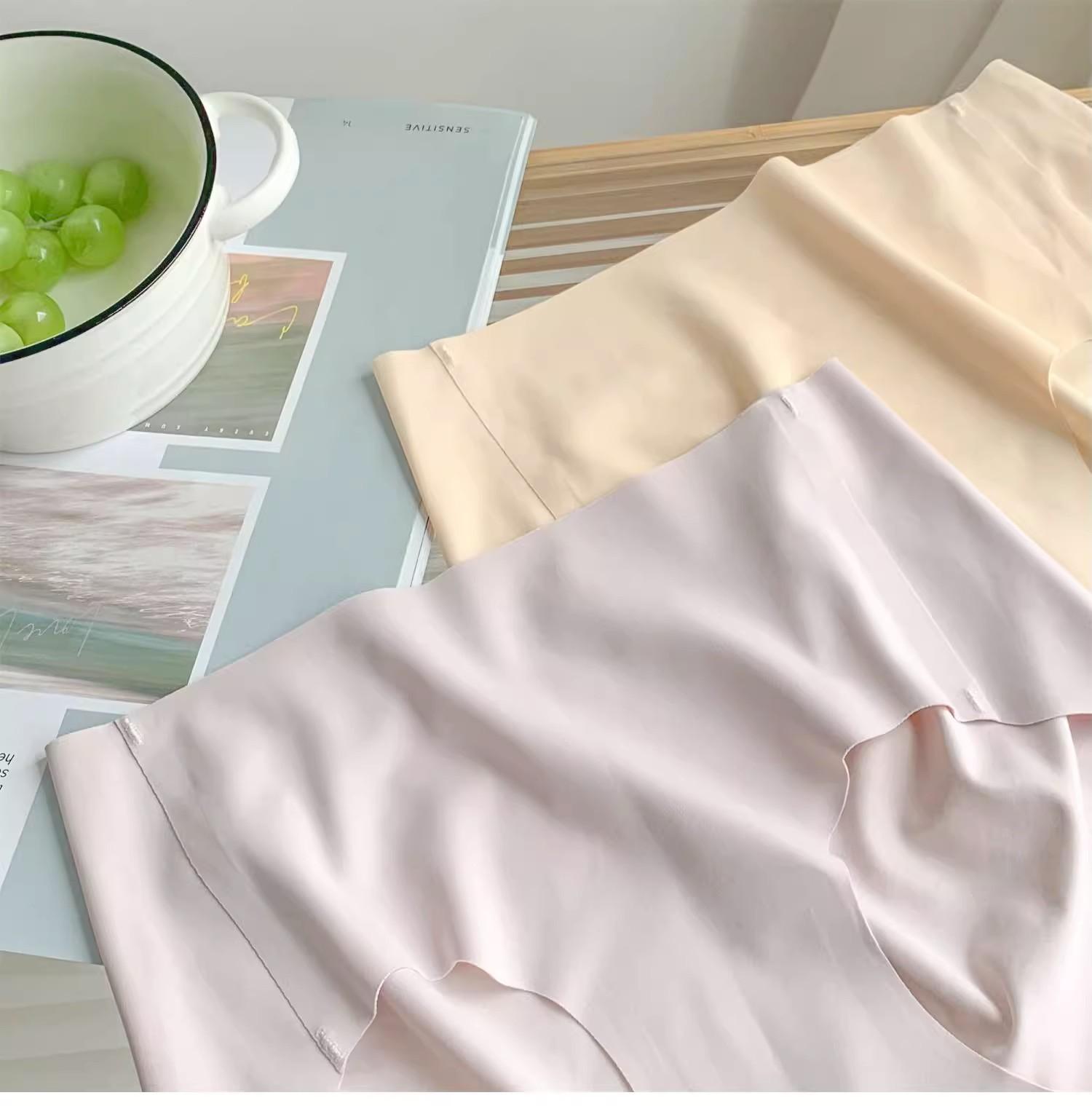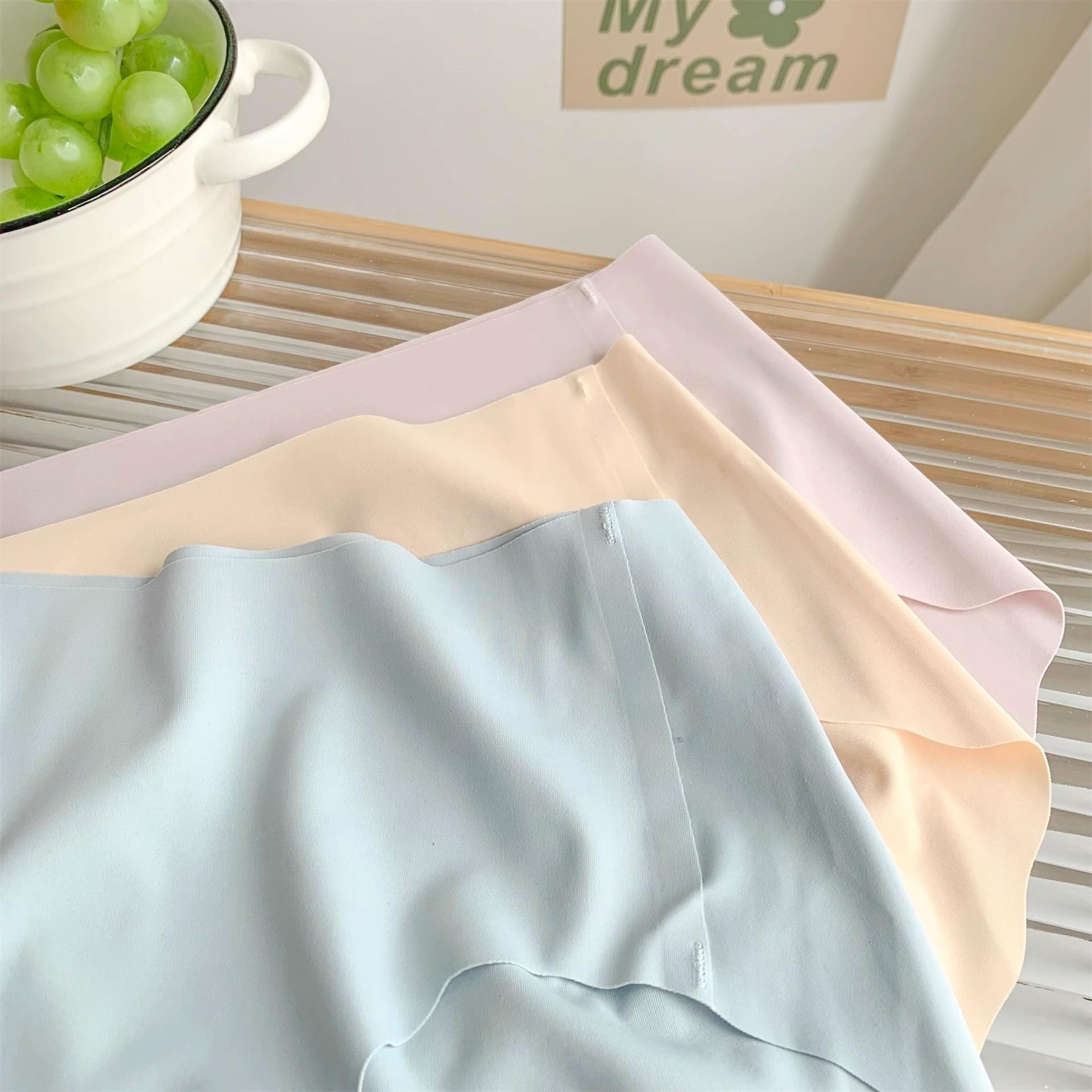 Ropa interior de seda de hielo suave y agradable para la piel, ligera, de una pieza, sin costuras, para mujer, de talle medio, elástica, que no se enrolla, calzoncillos transpirables