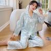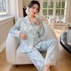 Pijama de Seda de Hielo para Primavera y Otoño 2023 para Mujer de Manga Larga Fino Encaje Traje Estampado para Usar Fuera Seda de Hielo Ropa de Casa