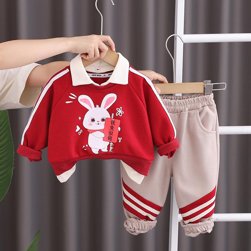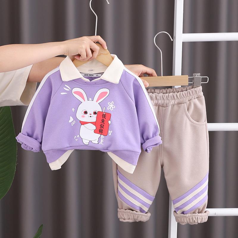 Conjunto de Ropa de Otoño para Niñas 2024 Nuevo Primavera y Otoño para Niña Versión Coreana Conejo de Dibujos Animados Casual Conjunto de Dos Piezas Moderno