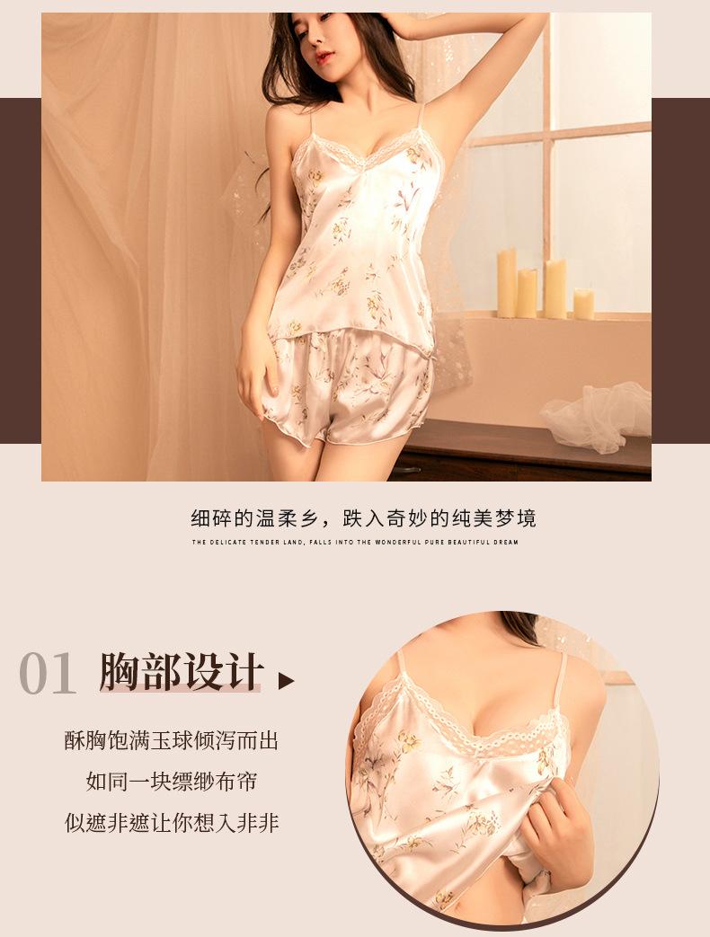 Lencería sexy para mujer, pijama con tirantes de encaje en V profundo, pantalones cortos de puro deseo, traje de dos piezas para el hogar
