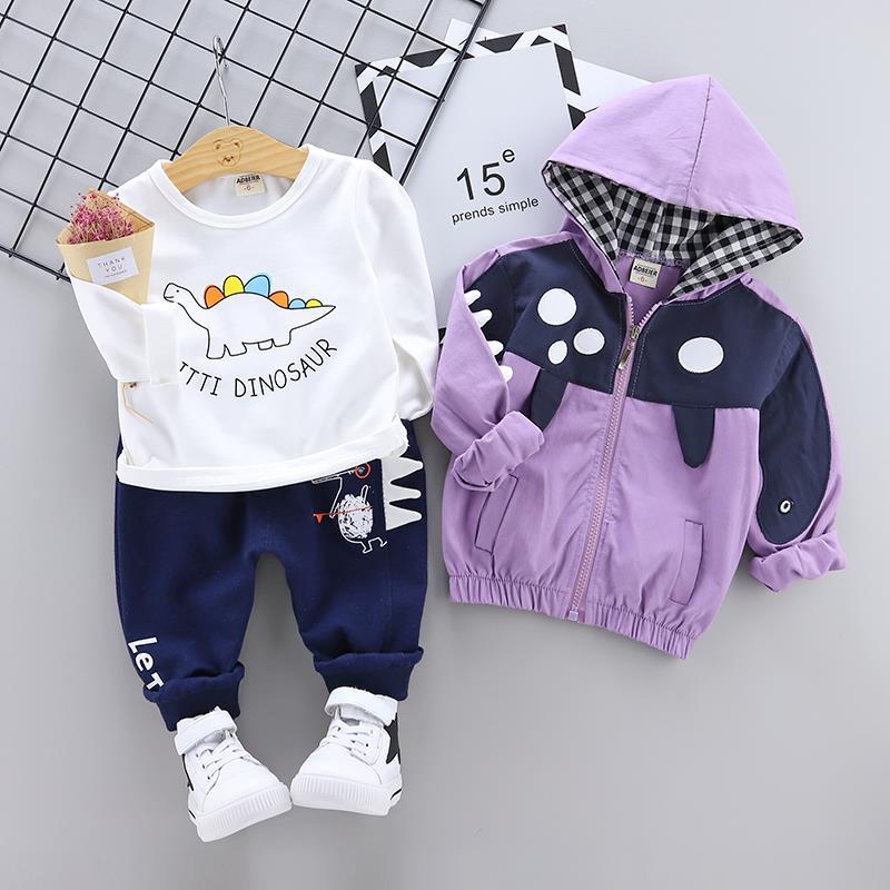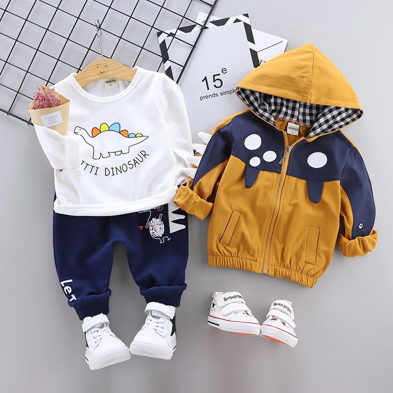 Orange dinosaur three-piece A, Green dinosaur three-piece A, Red naughty bear three-piece set, Black naughty b...