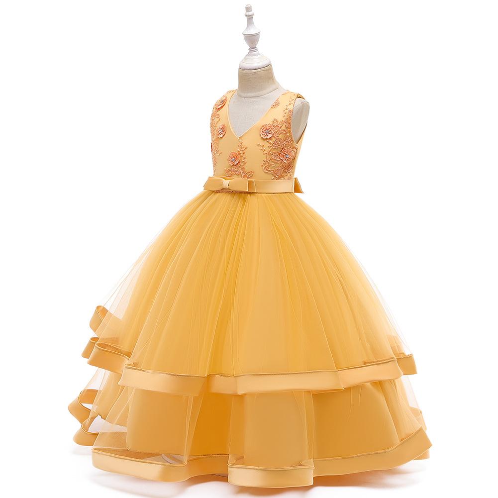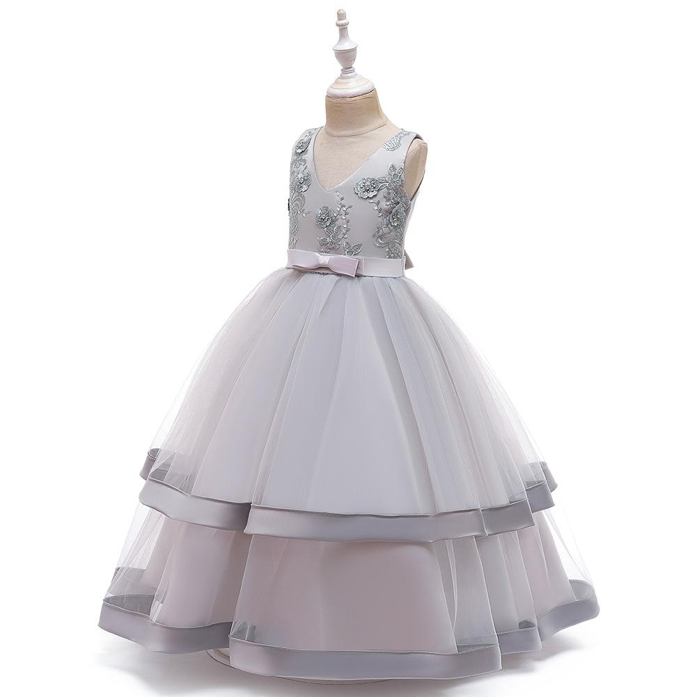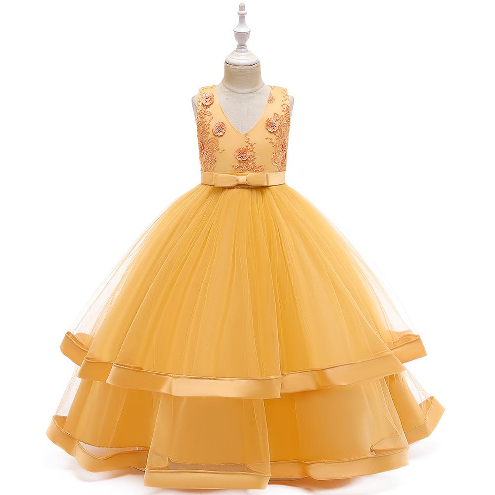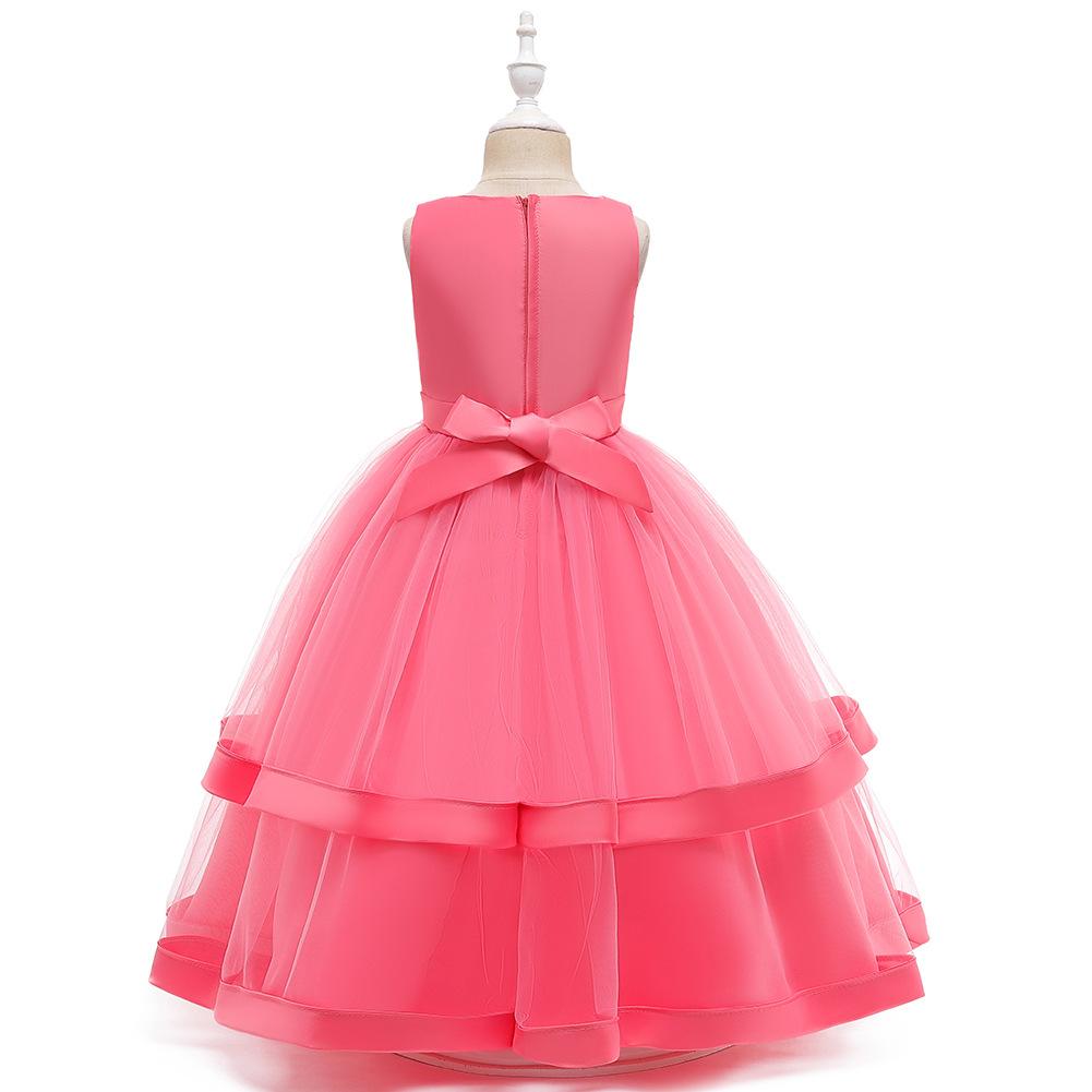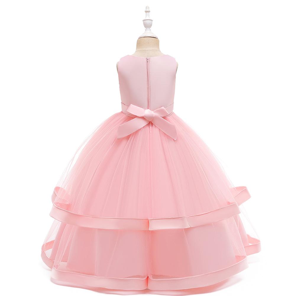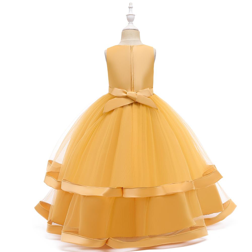 Vestido de novia largo para niñas, falda de princesa de malla esponjosa, ropa infantil europea y americana de talla mediana y grande, ropa de rendimiento estampada para niñasOrdene ahora