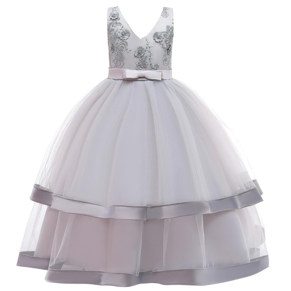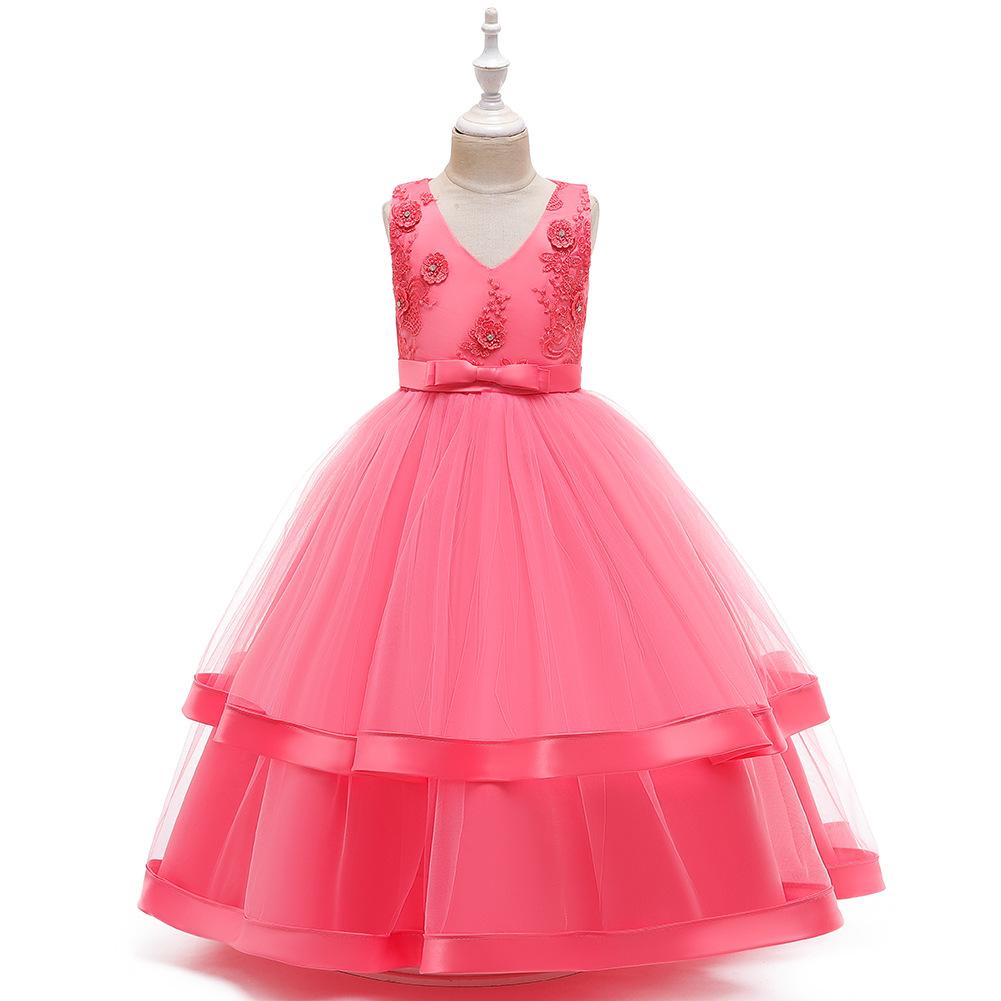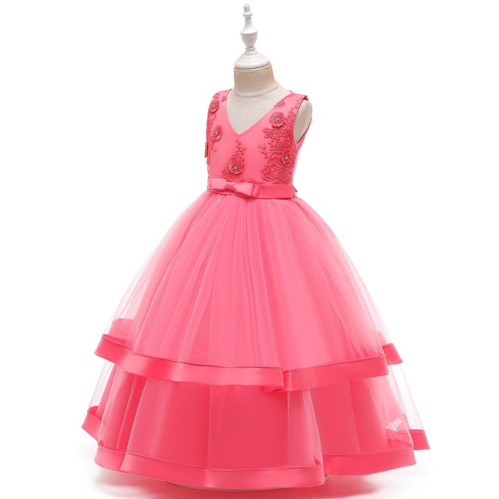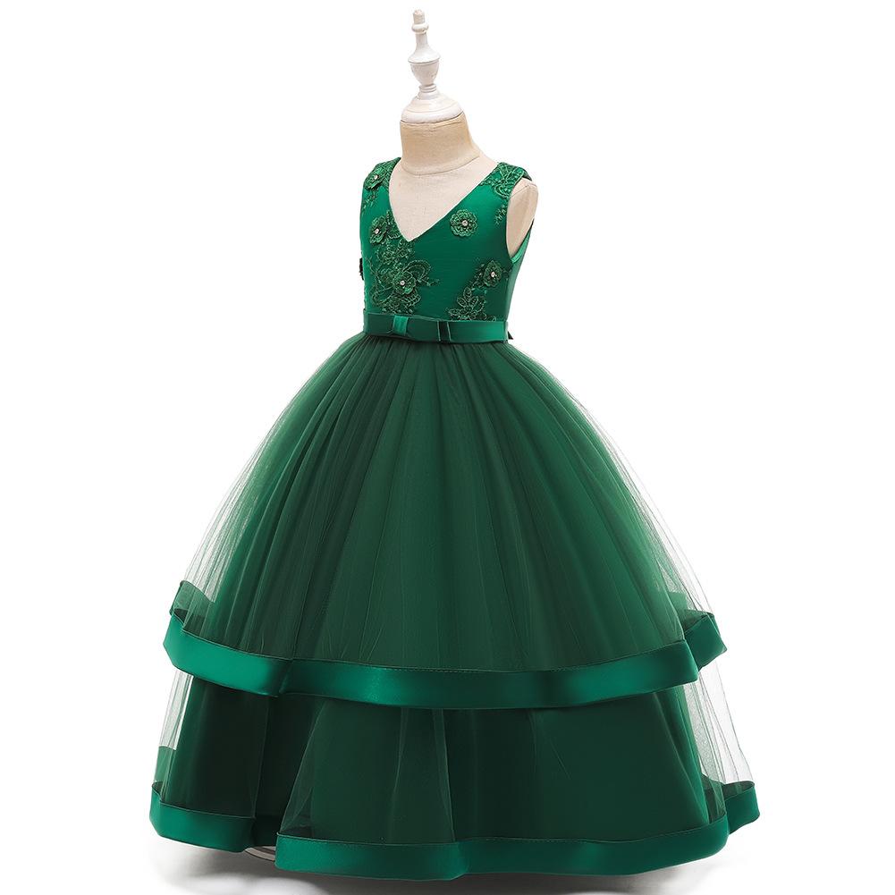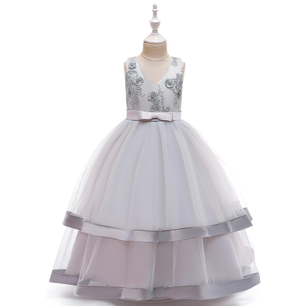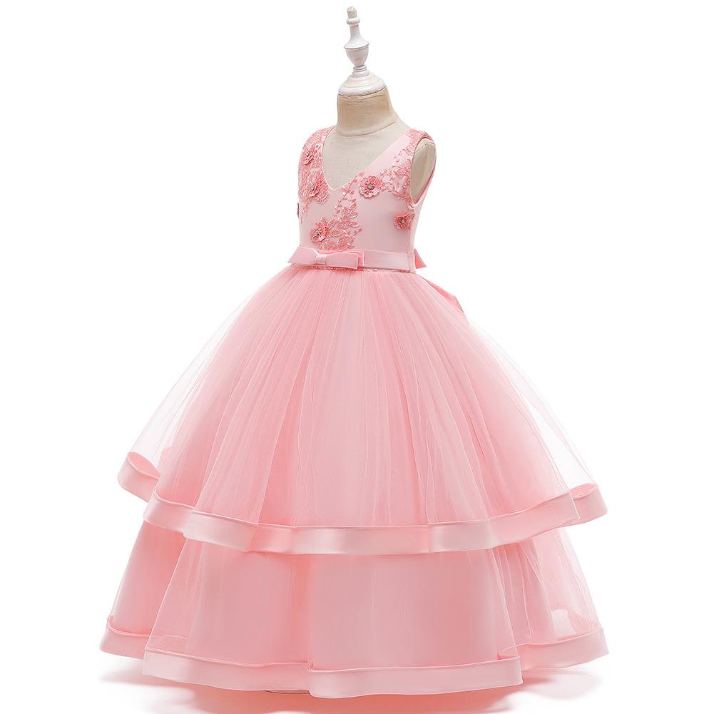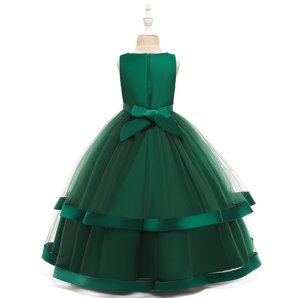 Vestido de novia largo para niñas, falda de princesa de malla esponjosa, ropa infantil europea y americana de talla mediana y grande, ropa de rendimiento estampada para niñasOrdene ahora