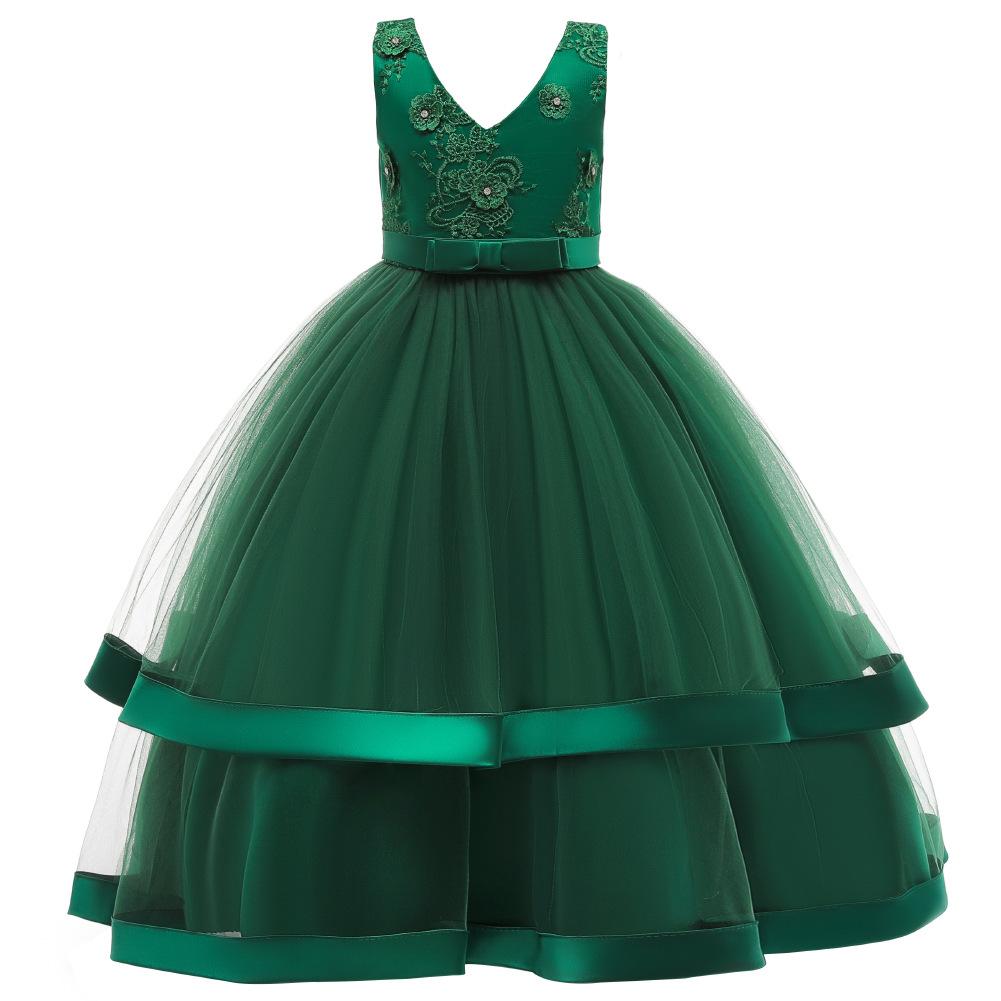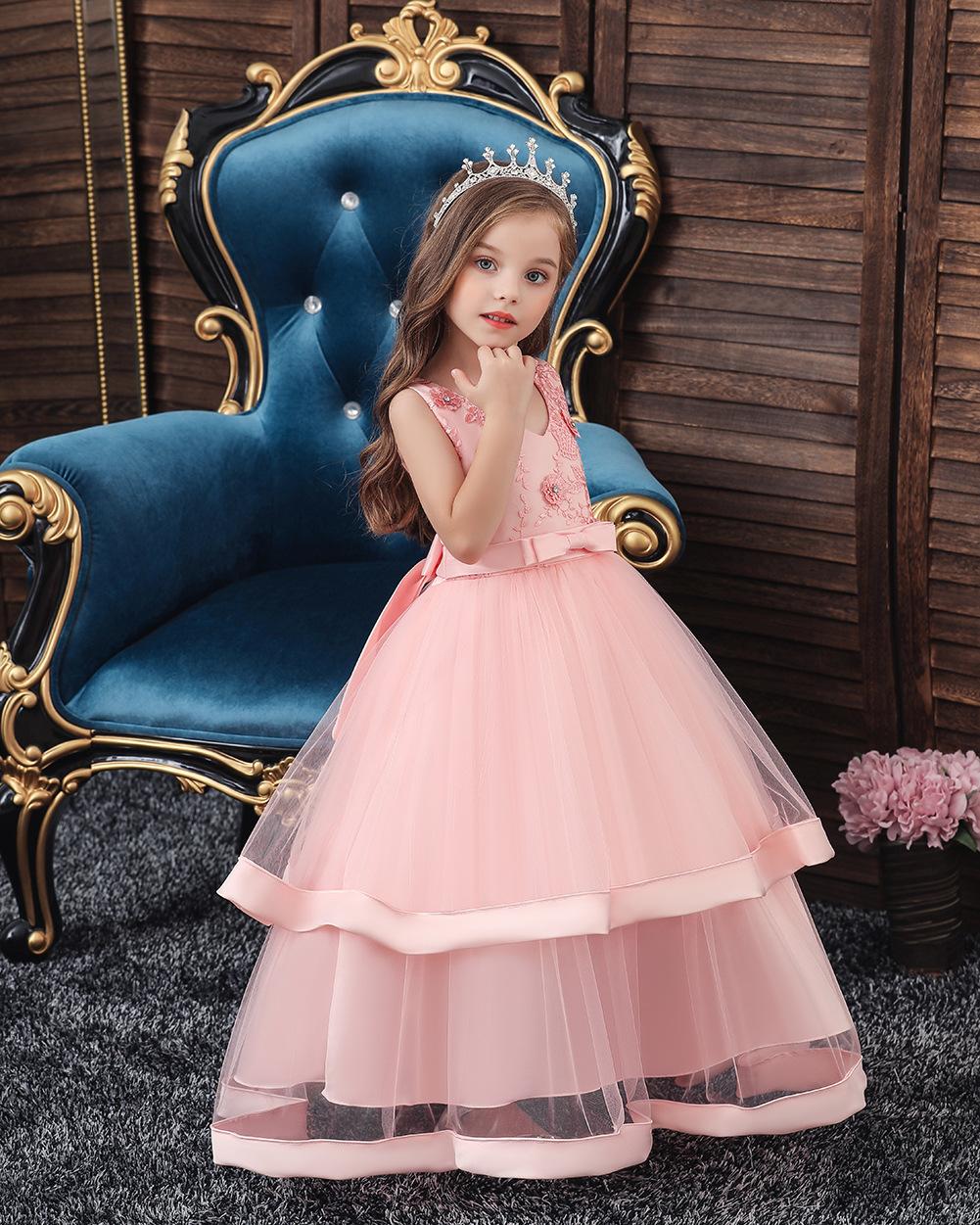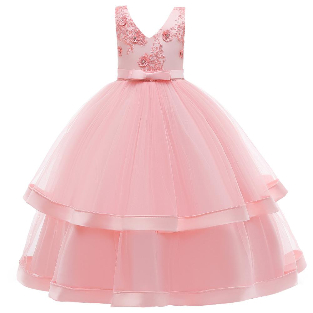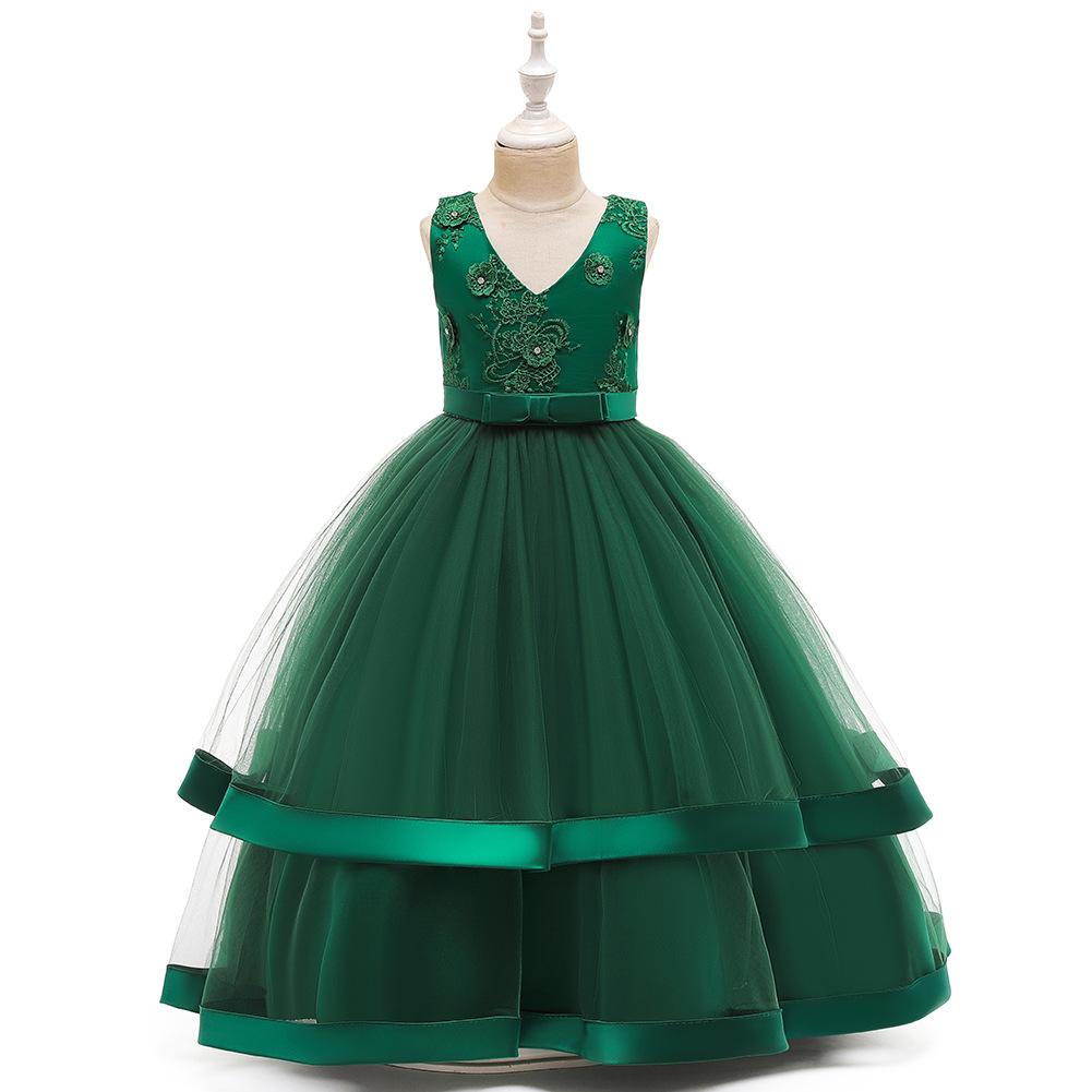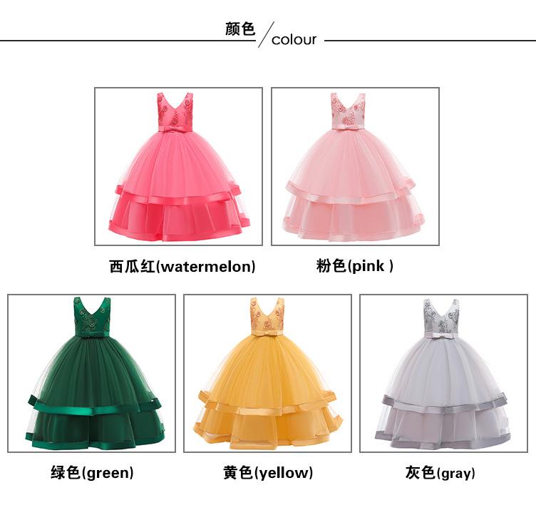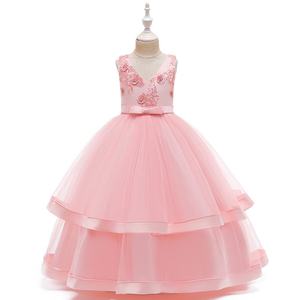 Vestido de novia largo para niñas, falda de princesa de malla esponjosa, ropa infantil europea y americana de talla mediana y grande, ropa de rendimiento estampada para niñasOrdene ahora