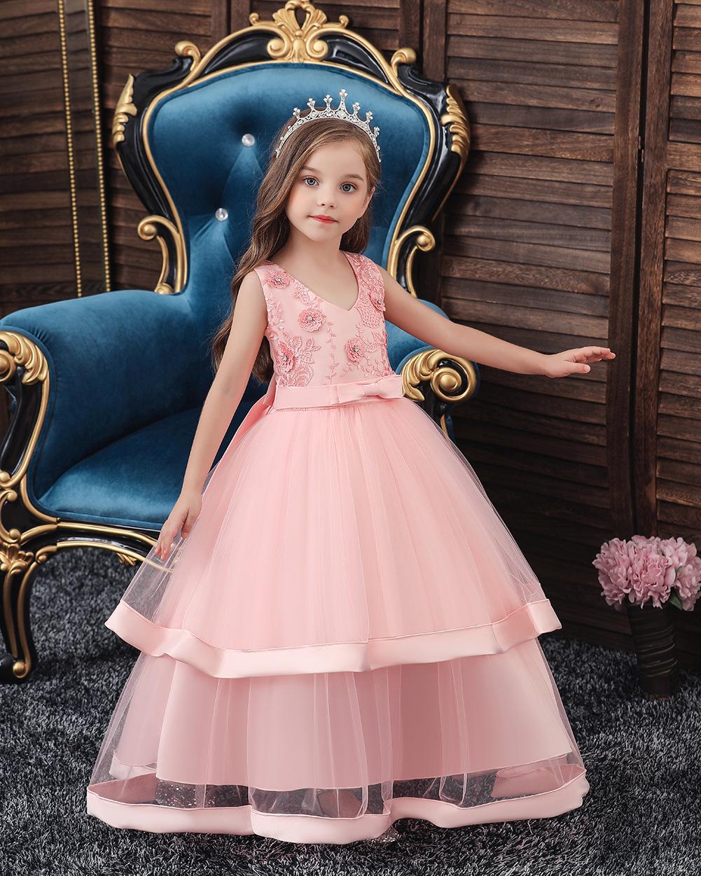 Vestido de princesa para niñas de Amazon, vestido de novia para niñas de flores, vestido de cola pequeña con lazo para niñasOrdene ahora