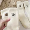 Calcetines de lana coral de otoño e invierno para mujer, calcetines gruesos hasta media pantorrilla para el hogar, calcetines de mujer con dibujos animados, bonitos y cálidos para dormir en el suelo.