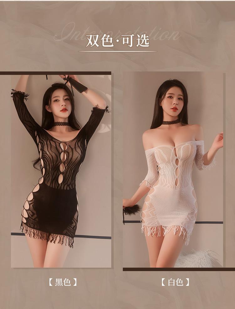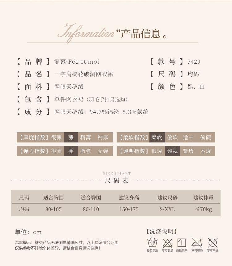 Blanco [vestido de red de una sola pieza] + aplausos con plumas negras (precio limitado 39.8)
