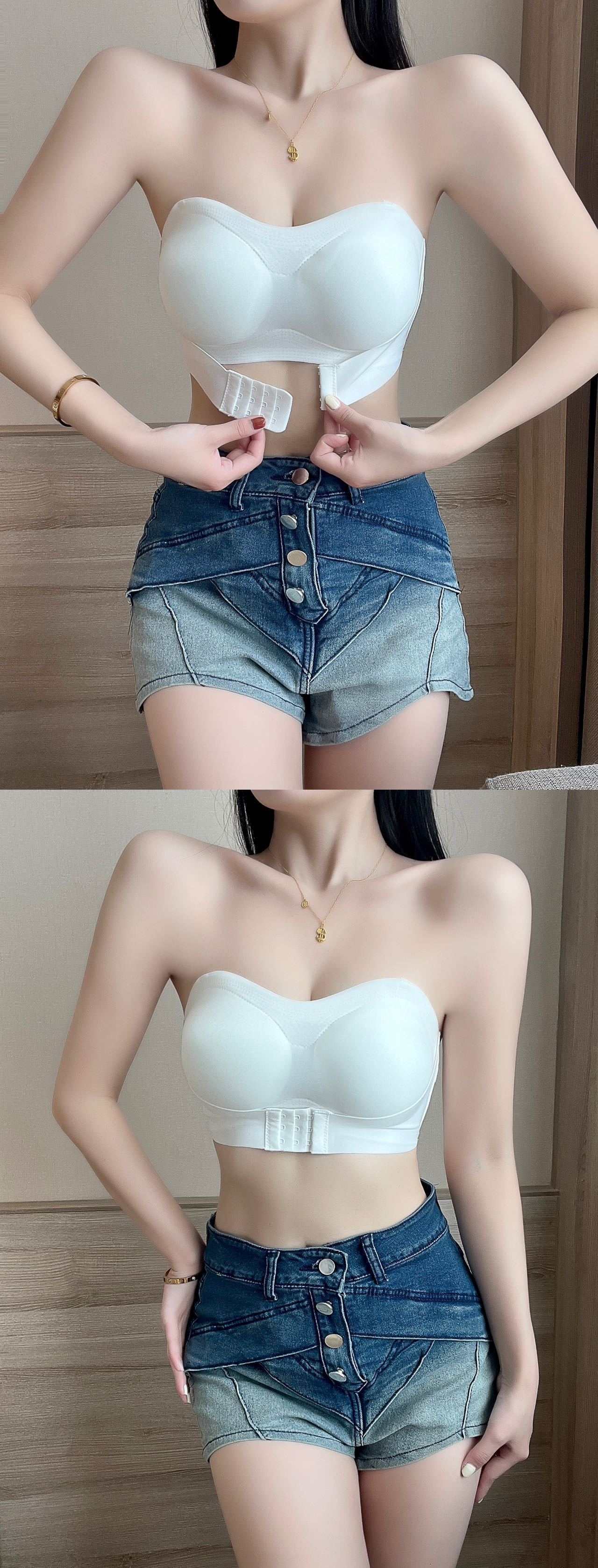 Sujetador push-up invisible sin tirantes con hebilla frontal para mujer, de verano, con parte superior de tubo antideslizante y envuelta en el pecho, sin marcas.