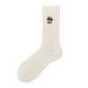 Calcetines de otoño e invierno para mujer, calcetines de lana gruesos de media pantorrilla con cordón de ajuste de color sólido al por mayor, calcetines de felpa bordados con dibujos animados de color sólido para mujer