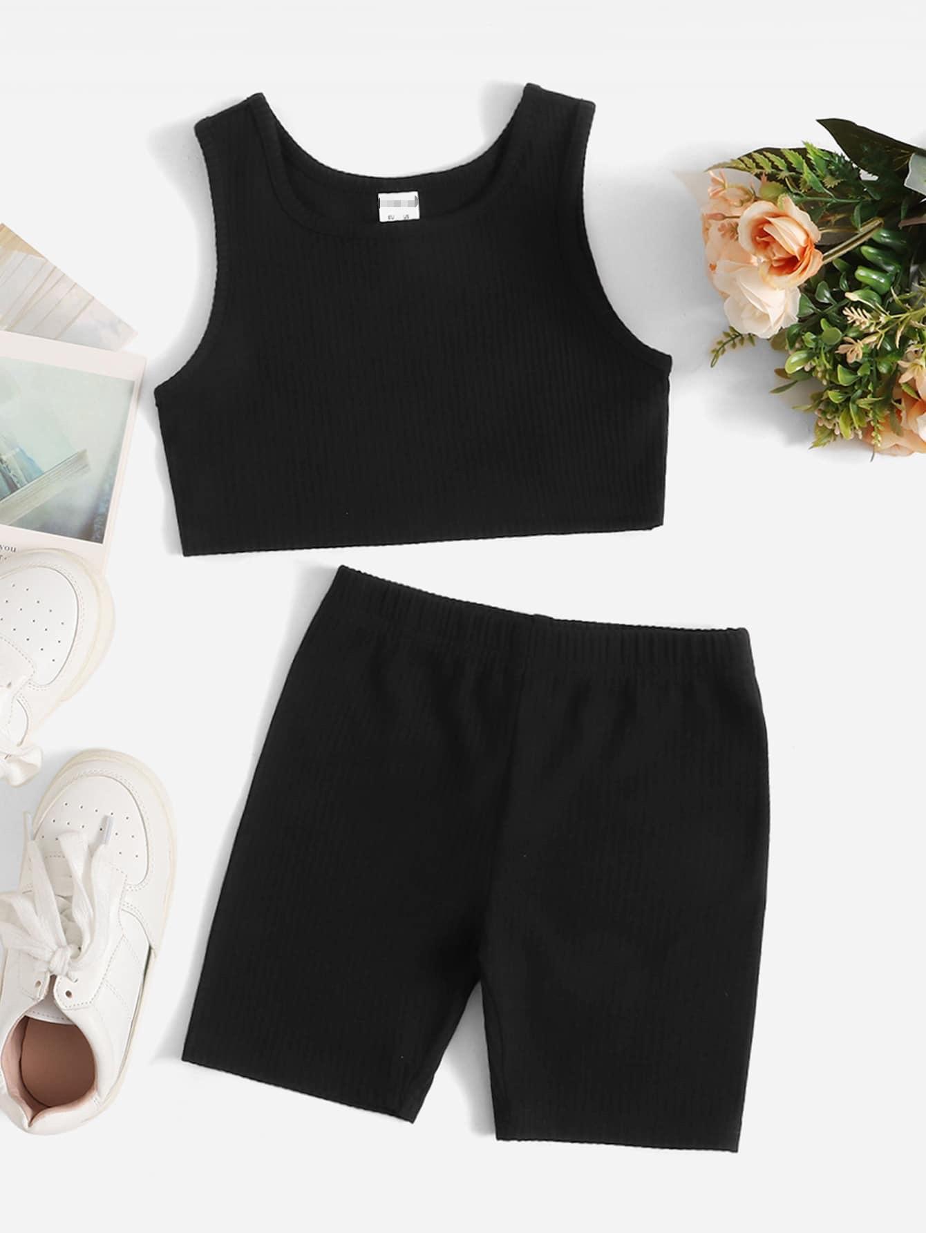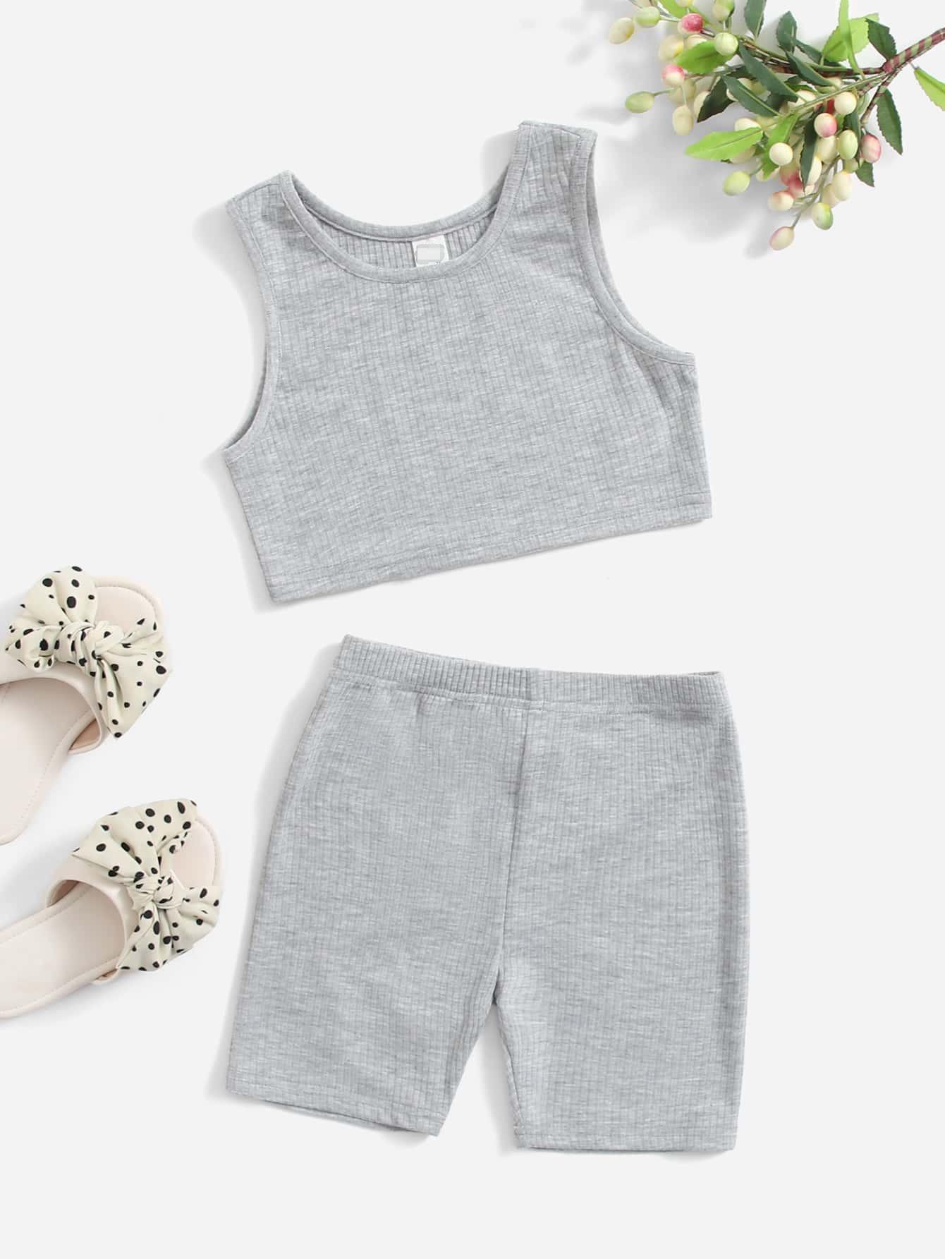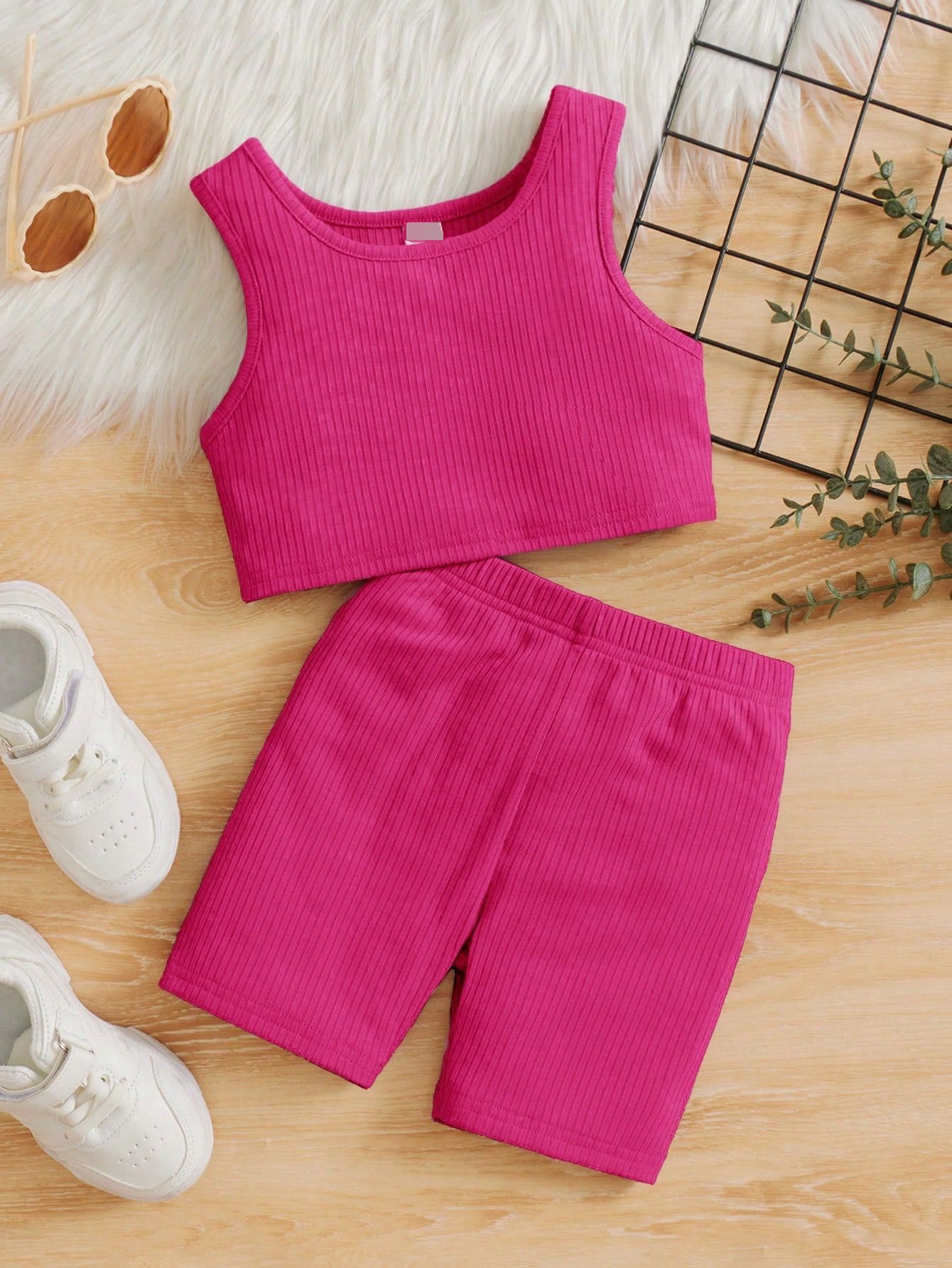 Traje de verano sin mangas para niñas, camiseta de algodón con chaleco y pantalones cortos, dos piezas, para niños de Europa y América
